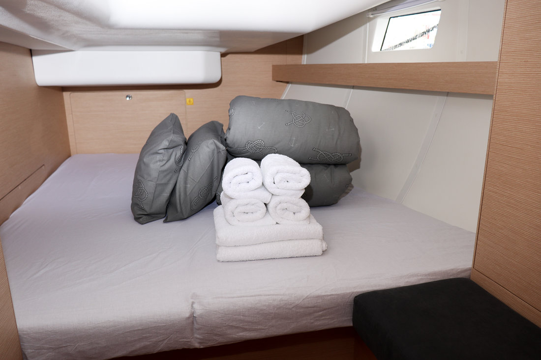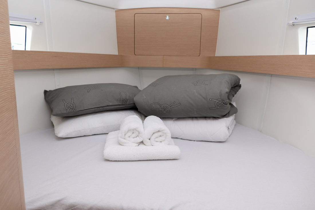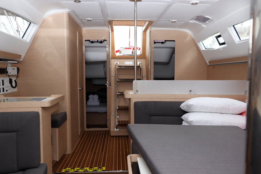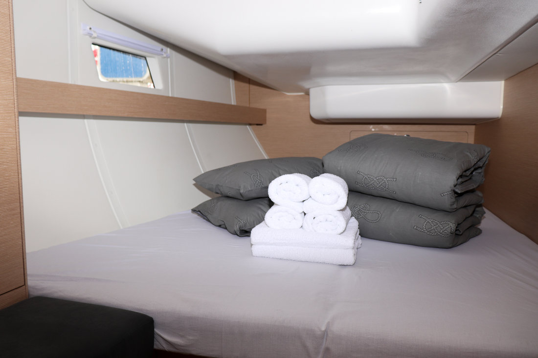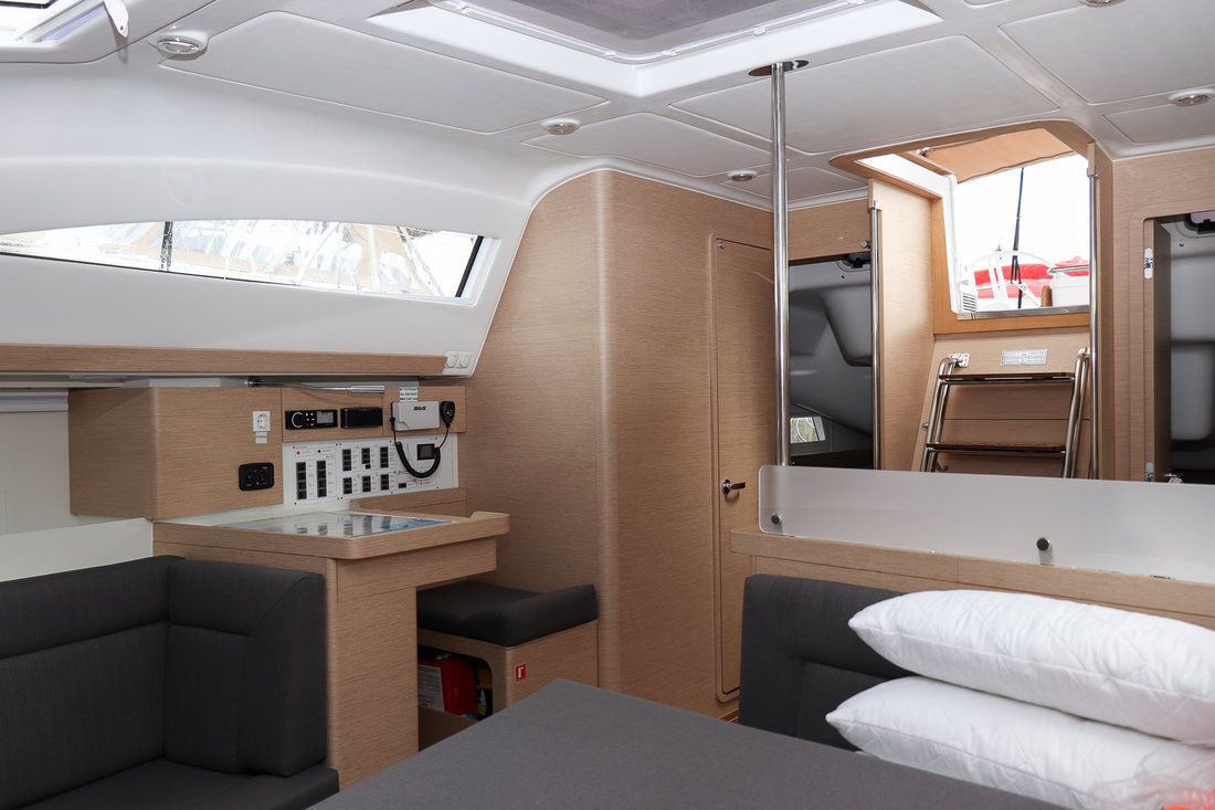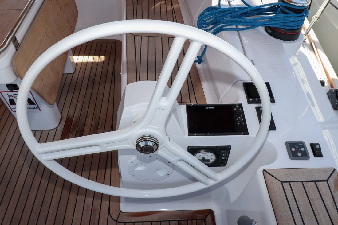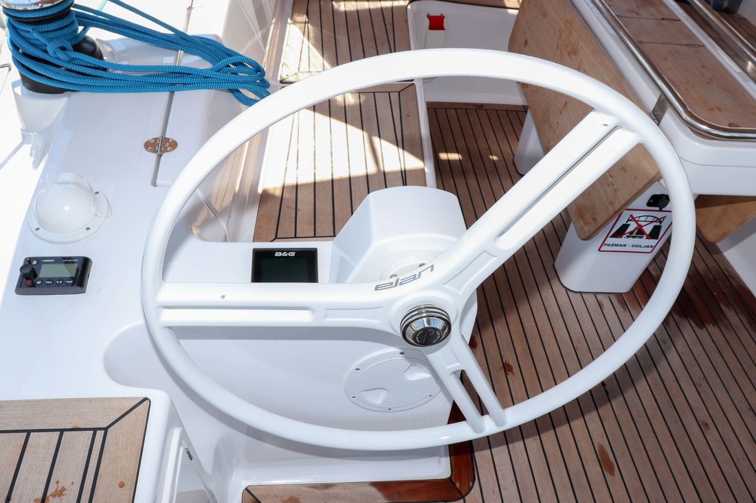 | Safety | Autopilot, Bootsmannstuhl, Bordapotheke, Bugstrahlruder, Feststoffschwimmwesten, Feuerlöscher, Flaggen, Lifebelts, Nebelhorn, Notpinne, Radarreflektor, Rettungsinsel, Taschenlampe, UKW-Funk m. DSC, Zweitanker |