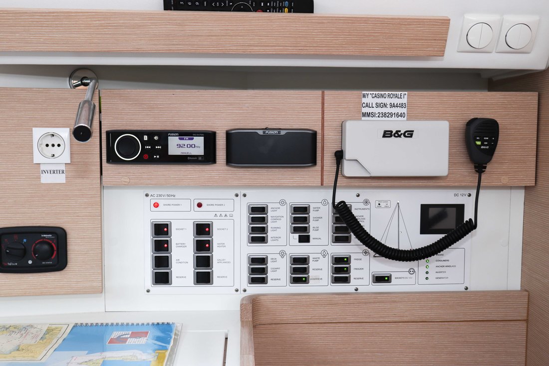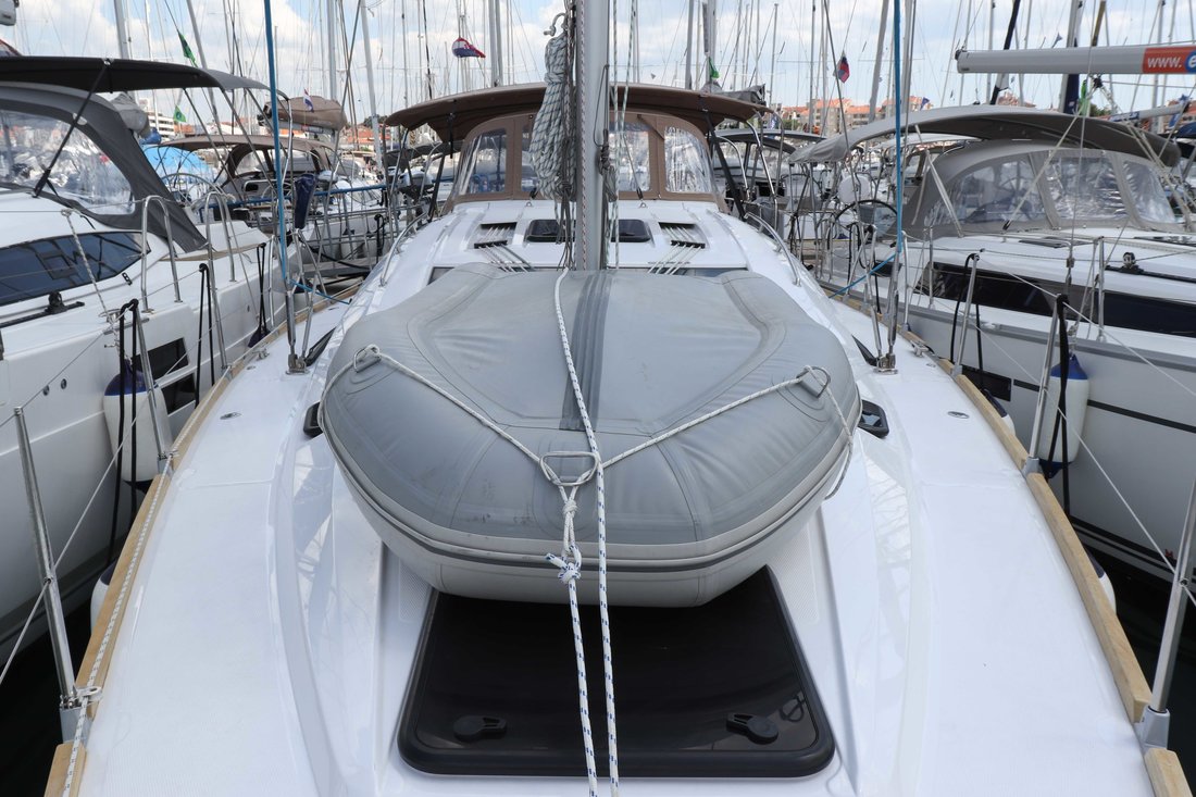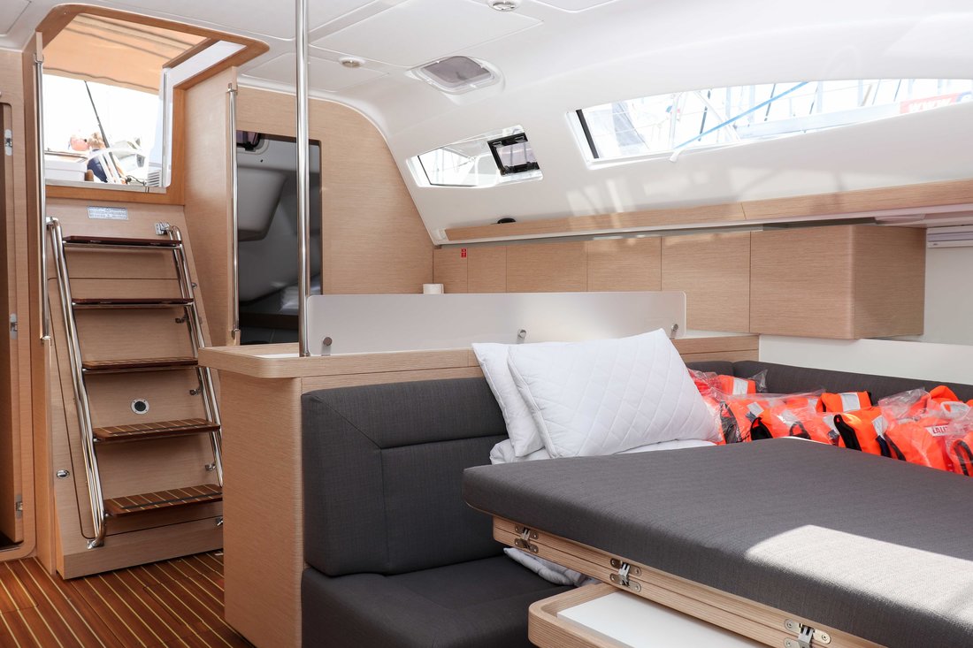| Safety | Autopilot, Bootsmannstuhl, Bordapotheke, Bugstrahlruder, Feststoffschwimmwesten, Feuerlöscher, Flaggen, Lifebelts, Nebelhorn, Notpinne, Radarreflektor, Rettungsinsel, Taschenlampe, UKW-Funk m. DSC, Zweitanker |
