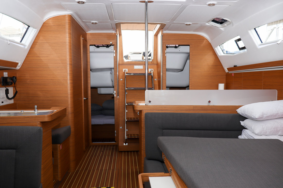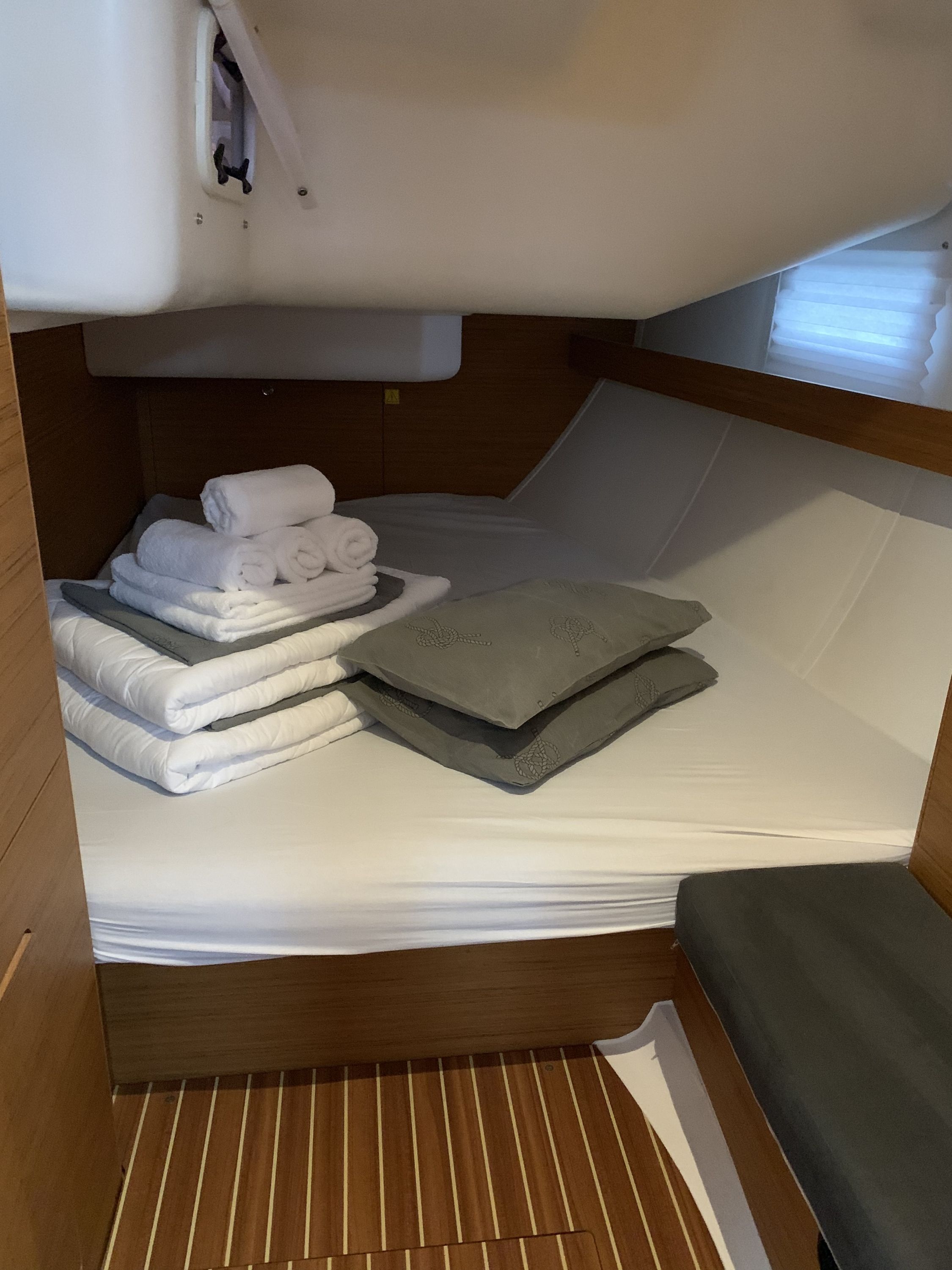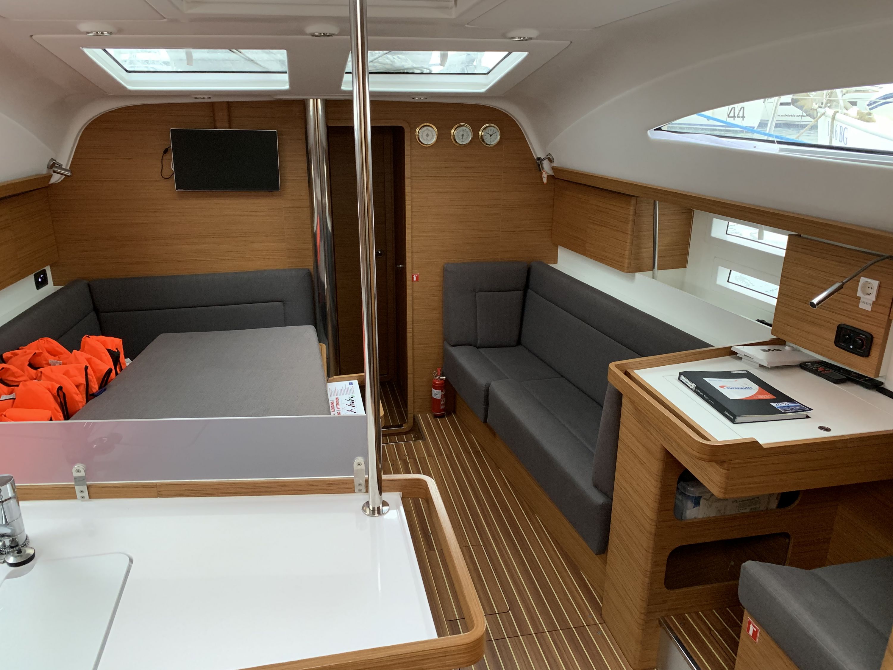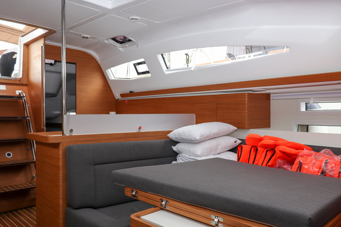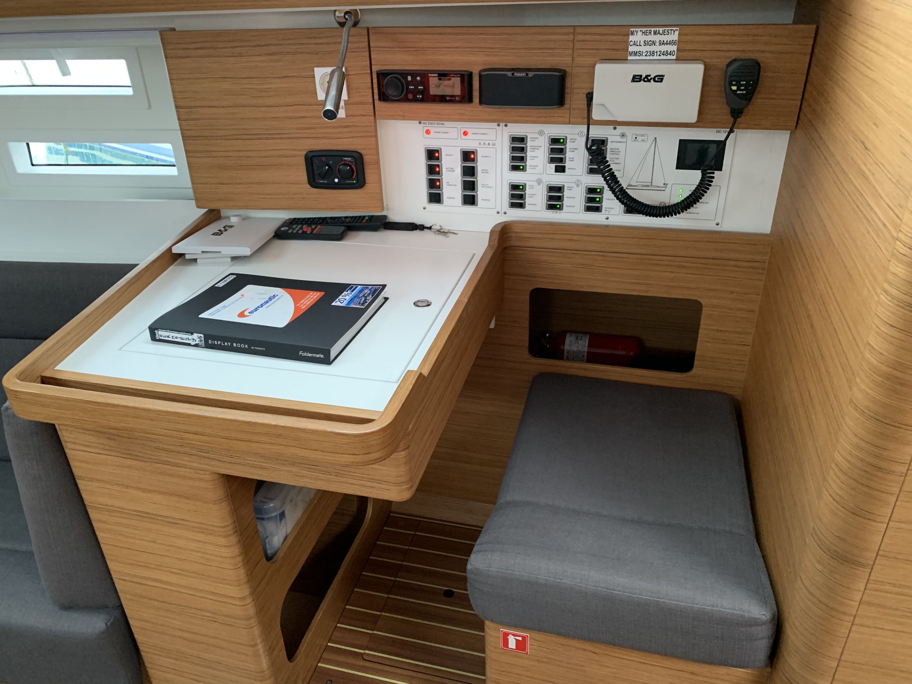 | Safety | Autopilot, Bootsmannstuhl, Bordapotheke, Bugstrahlruder, Feststoffschwimmwesten, Feuerlöscher, Flaggen, Lifebelts, Nebelhorn, Notpinne, Radarreflektor, Rettungsinsel, Taschenlampe, UKW-Funk m. DSC, Zweitanker |