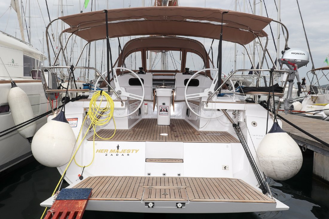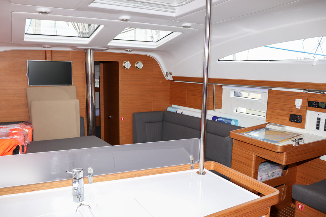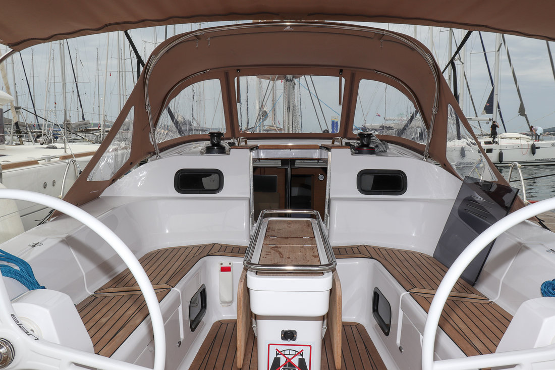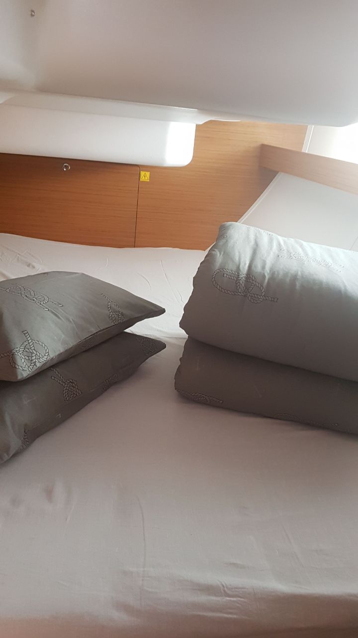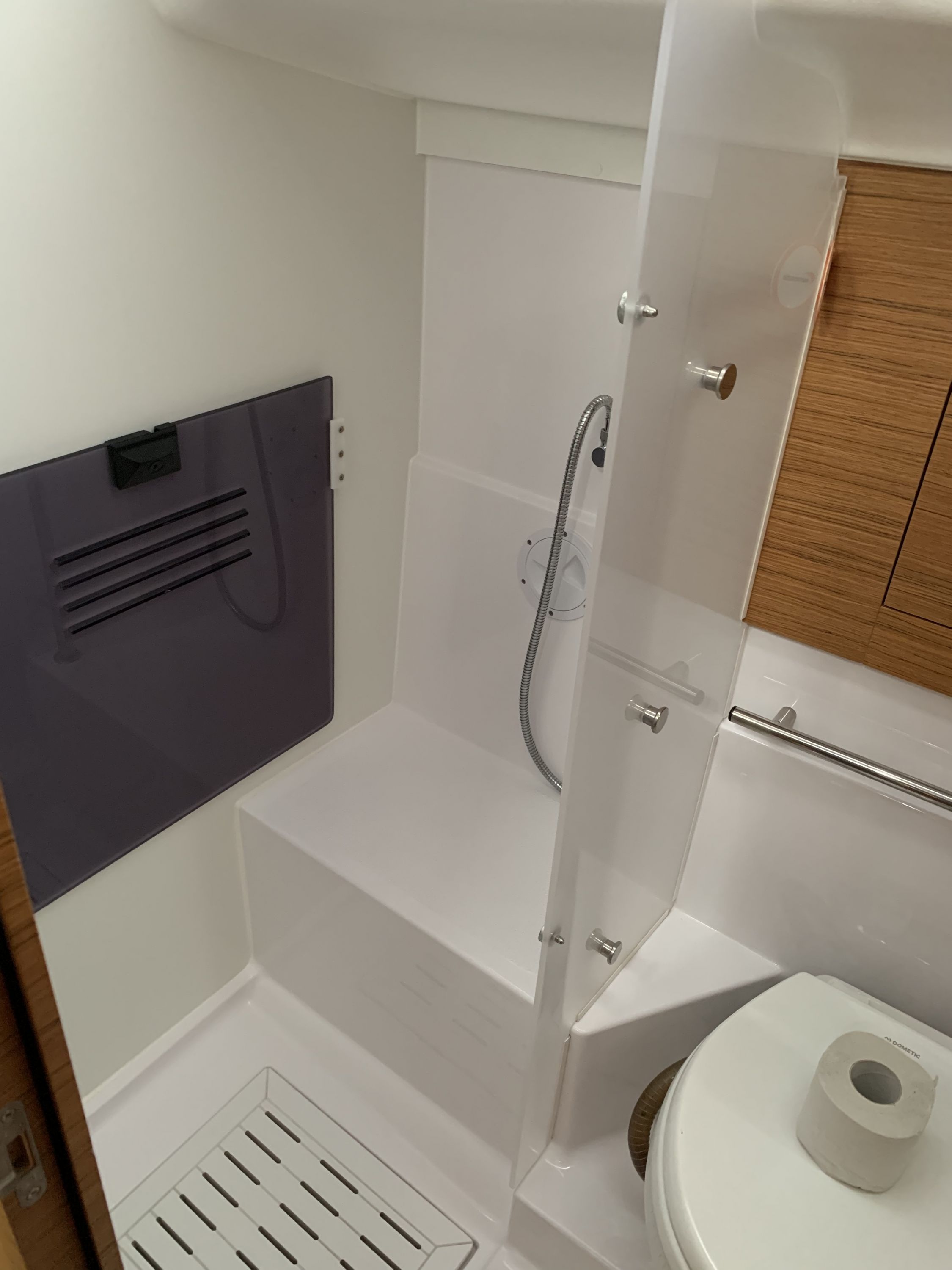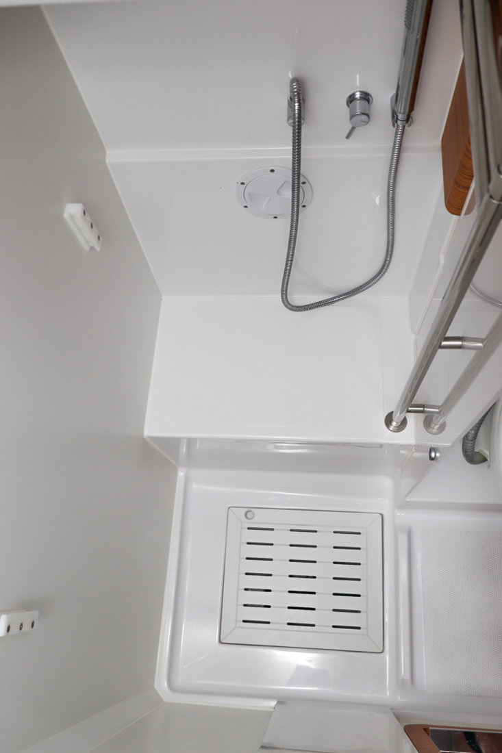 | Outside | 12 V-Anschluss, Badeplattform, Biminitop, Cockpitdusche warm/kalt, Cockpitlautsprecher, Cockpitpolster, Cockpittisch, Deckbeleuchtung, Delta-Anker, elektr. Ankerwinsch, Faltpropeller, Fender, Fernsteuerung für elektr. Ankerwinsch, Festmacherleinen, Pantry im Cockpit, Sprayhood, Teak im Cockpit, Wantenschneider, Windex |