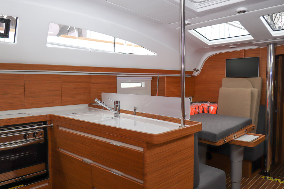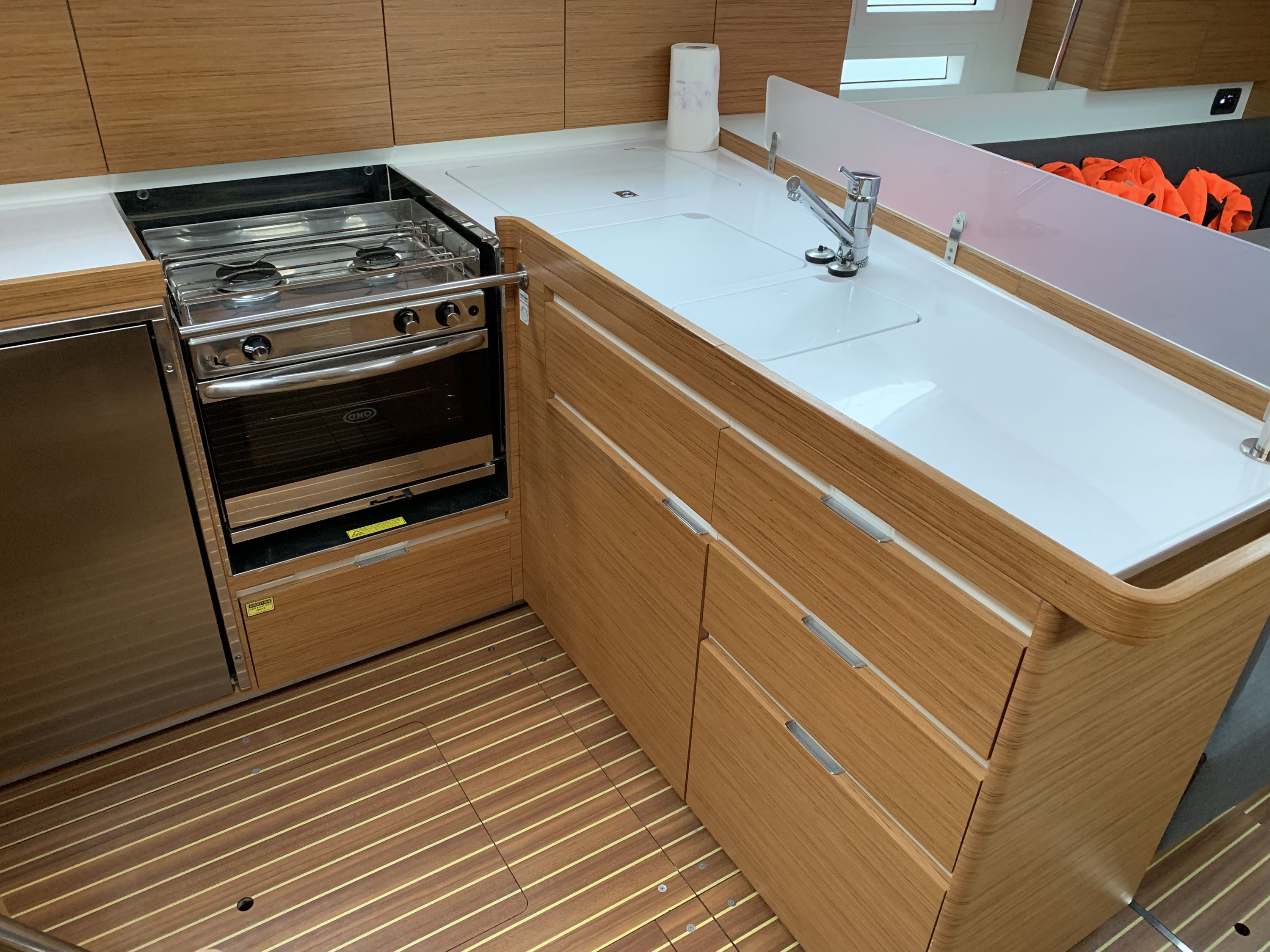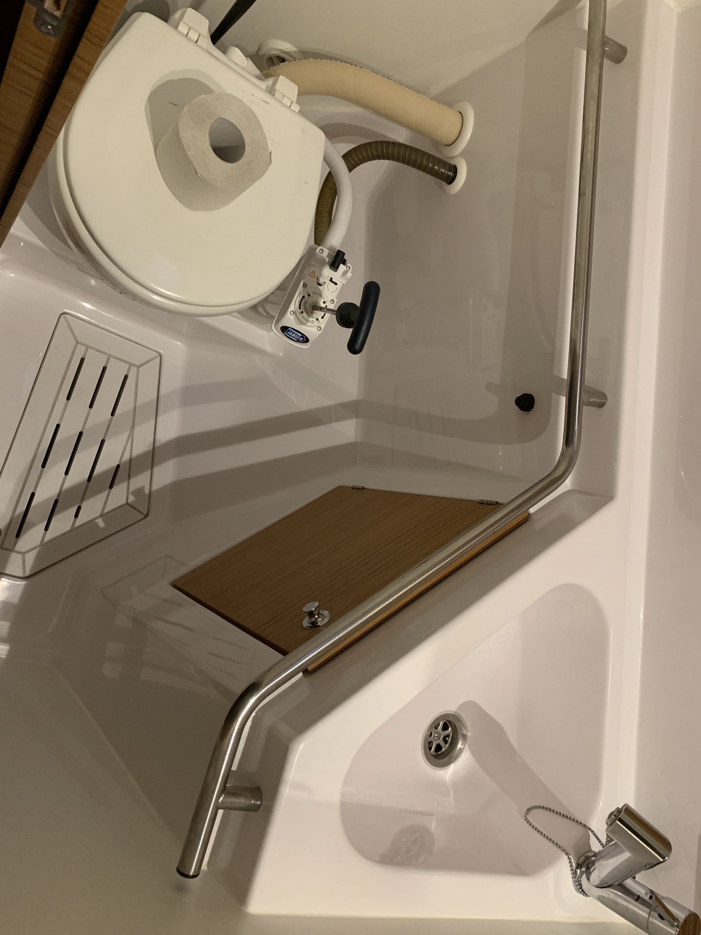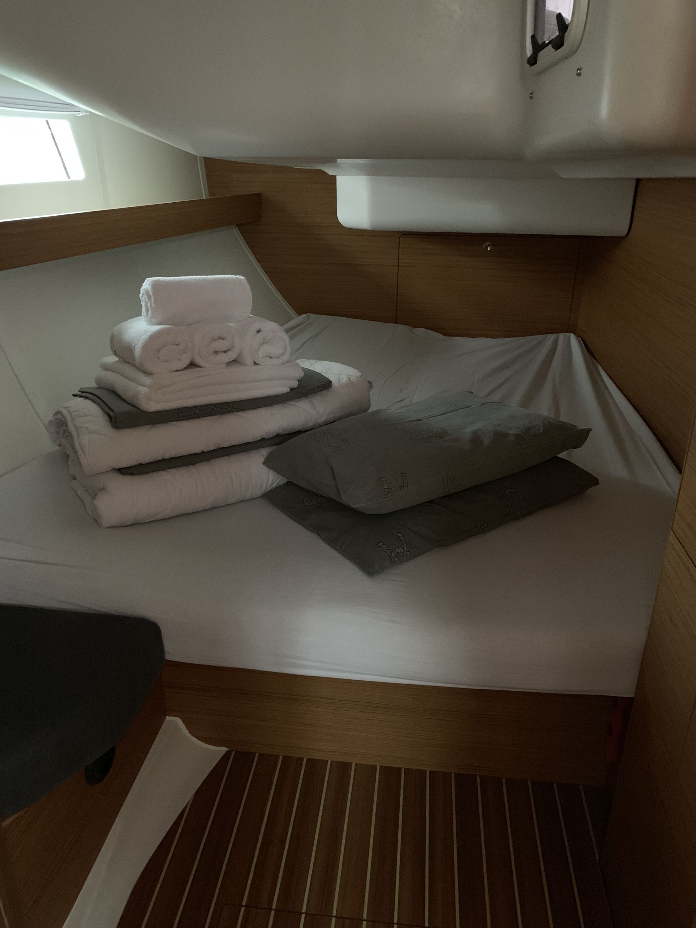 | Outside | 12 V-Anschluss, Badeplattform, Biminitop, Cockpitdusche warm/kalt, Cockpitlautsprecher, Cockpitpolster, Cockpittisch, Deckbeleuchtung, Delta-Anker, elektr. Ankerwinsch, Faltpropeller, Fender, Fernsteuerung für elektr. Ankerwinsch, Festmacherleinen, Pantry im Cockpit, Sprayhood, Teak im Cockpit, Wantenschneider, Windex |