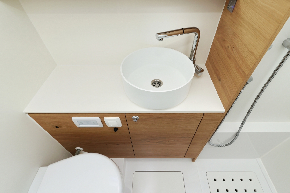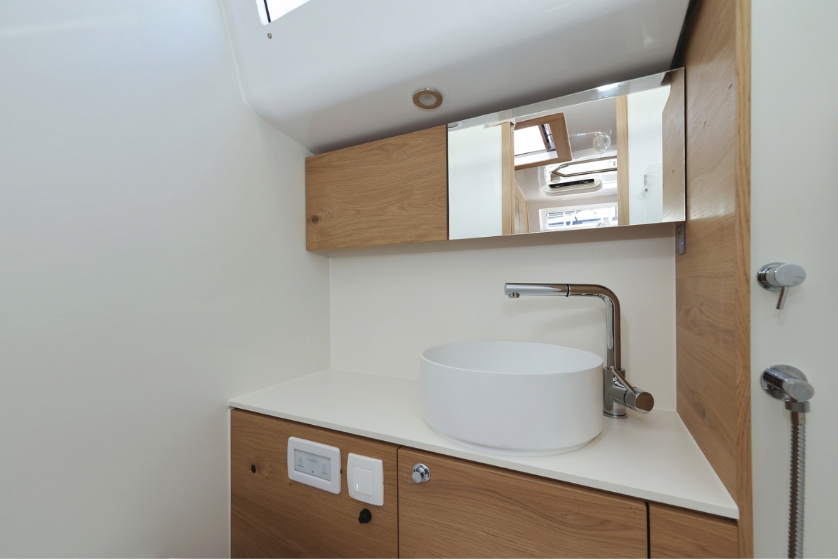 | Inside | 2. Kühlschrank, 220V Steckdosen, Generator, Inverter 12V/220V, Klimaanlage, Kühlschrank, Ladegerät, Lautsprecher im Salon, LED-Innenleuchten, Moskitonetze, Radio mit MP3 , USB Steckdose, Ventilatoren in Salon und Kabinen, WC (elektr.) |