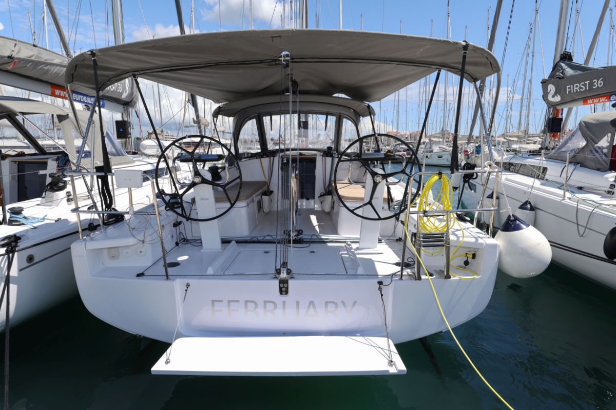 | Outside | 220 V-Landanschluss, Abnehmbare Cockpitbank, Abnehmbarer Cockpittisch, Anker mit Kette, Badeplattform, Biminitop, Bootshaken, Cockpitdusche, Cockpitpolster, elektr. Ankerwinsch, Faltpropeller, Fender, Festmacherleinen, Solaranlage, Sonnensegel, Sprayhood, Windex |