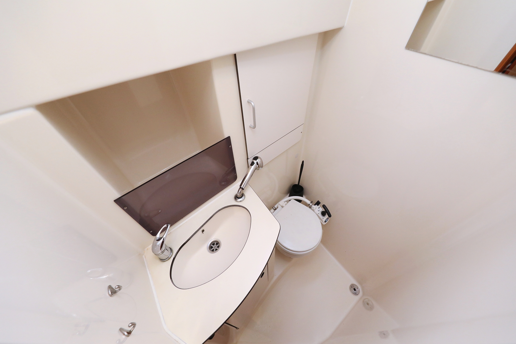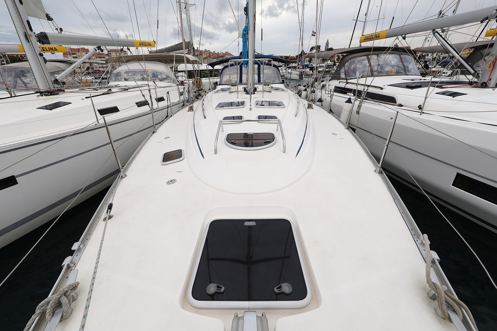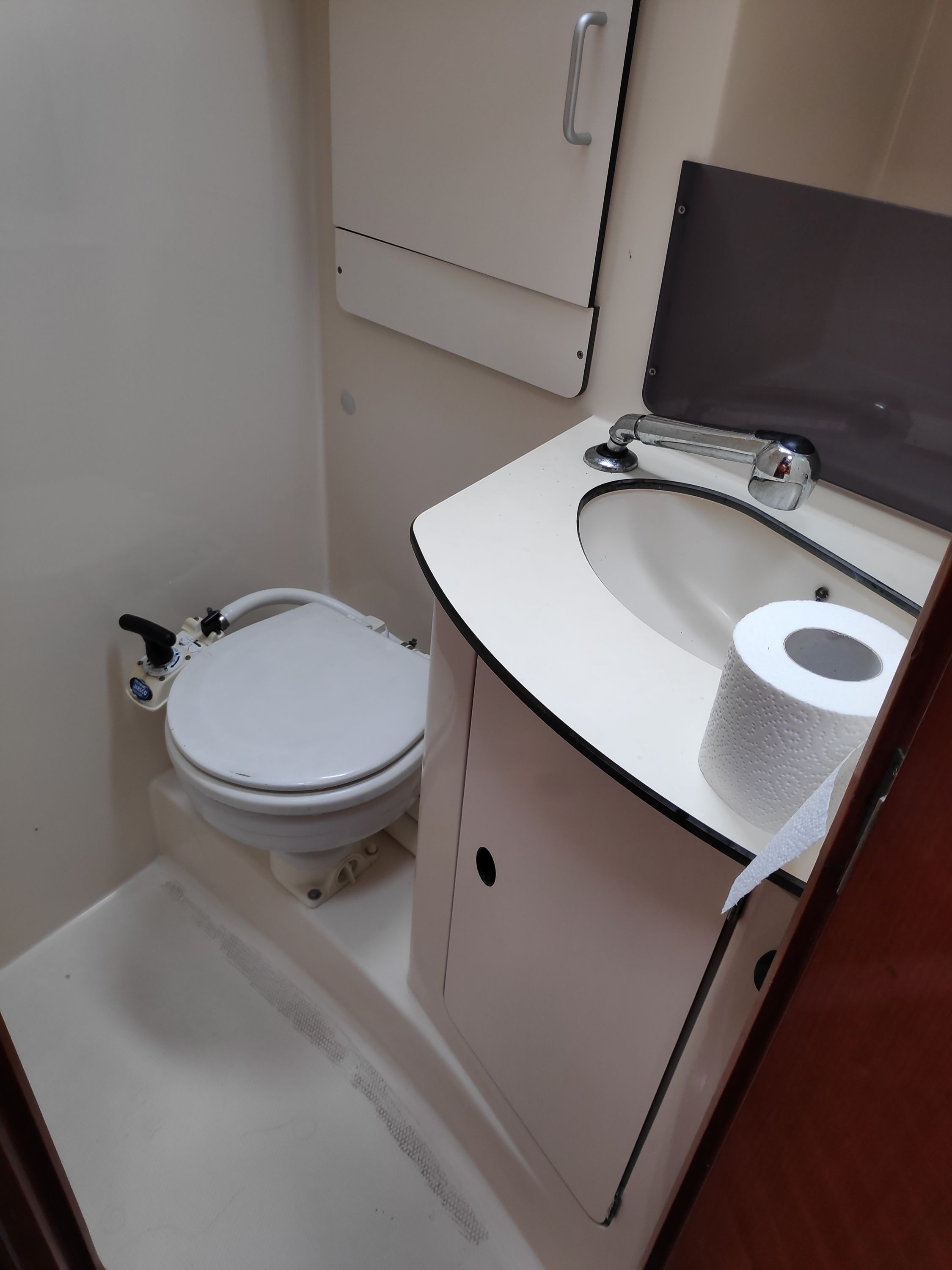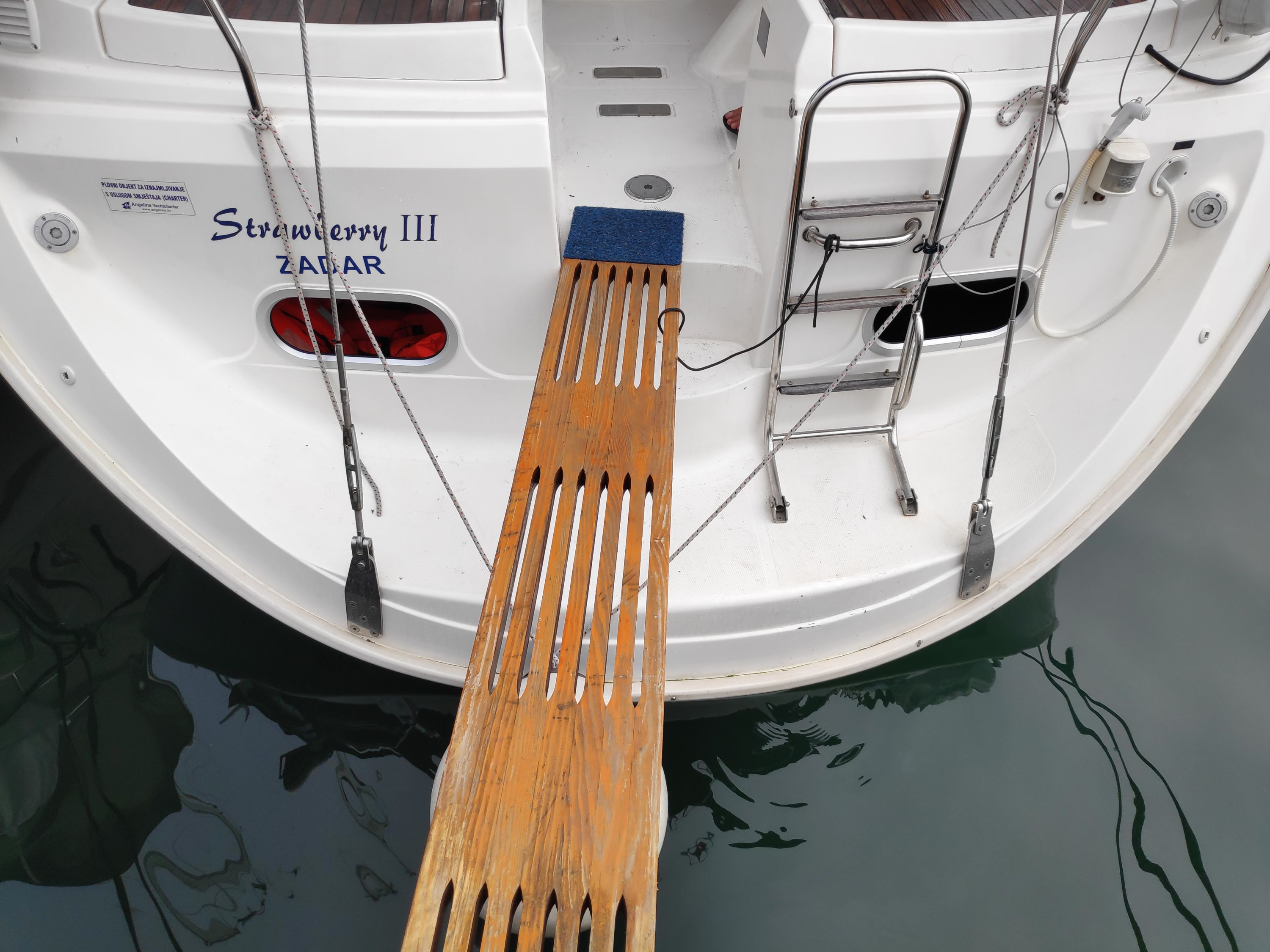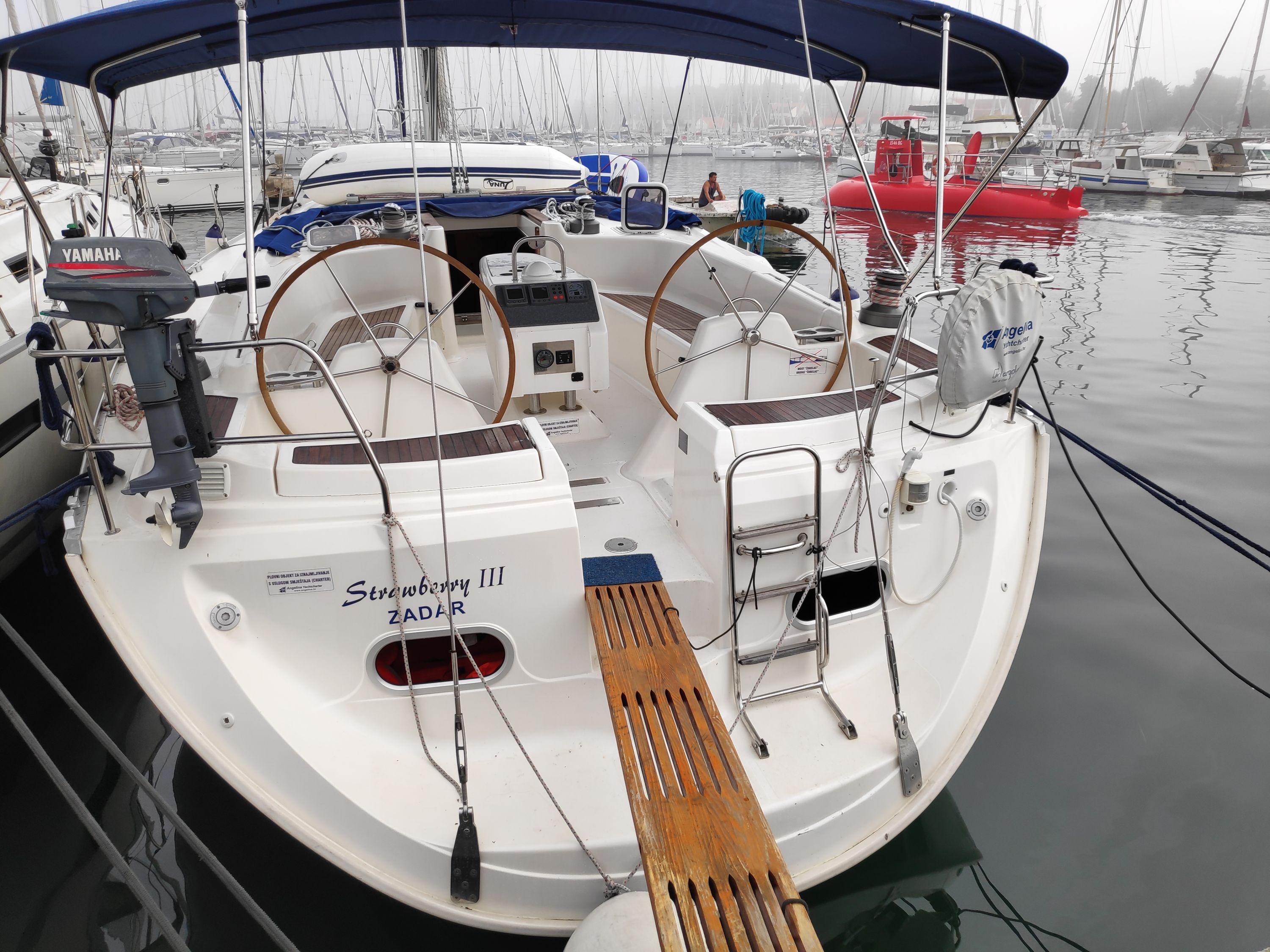 | Outside | 220 V-Landanschluss, Anker mit Kette, Biminitop, Cockpitdusche, Cockpitpolster, Cockpittisch, elektr. Ankerwinsch, Fender, Gangway, Kugelfender, Sprayhood, Teak im Cockpit, Winschen |