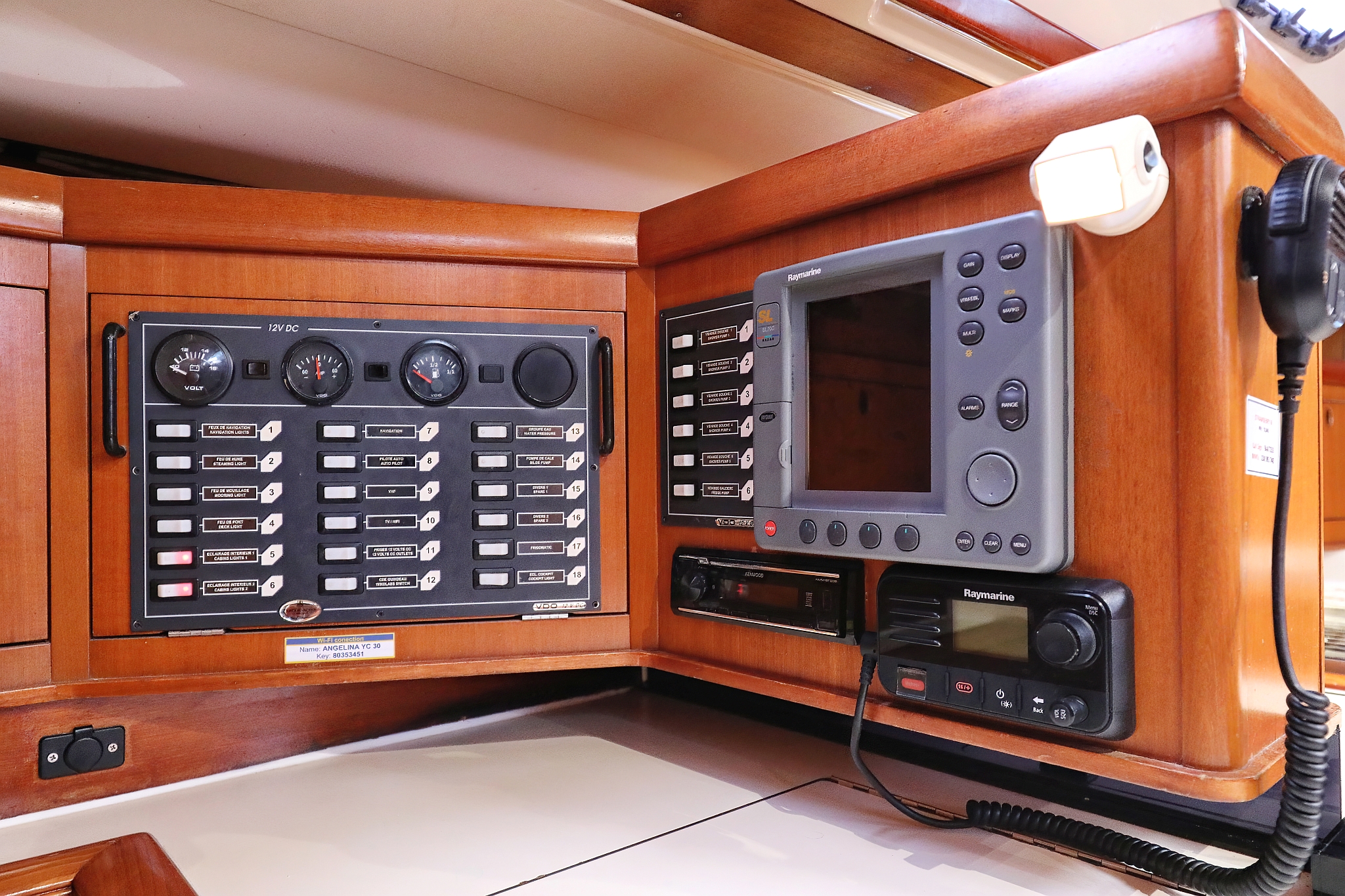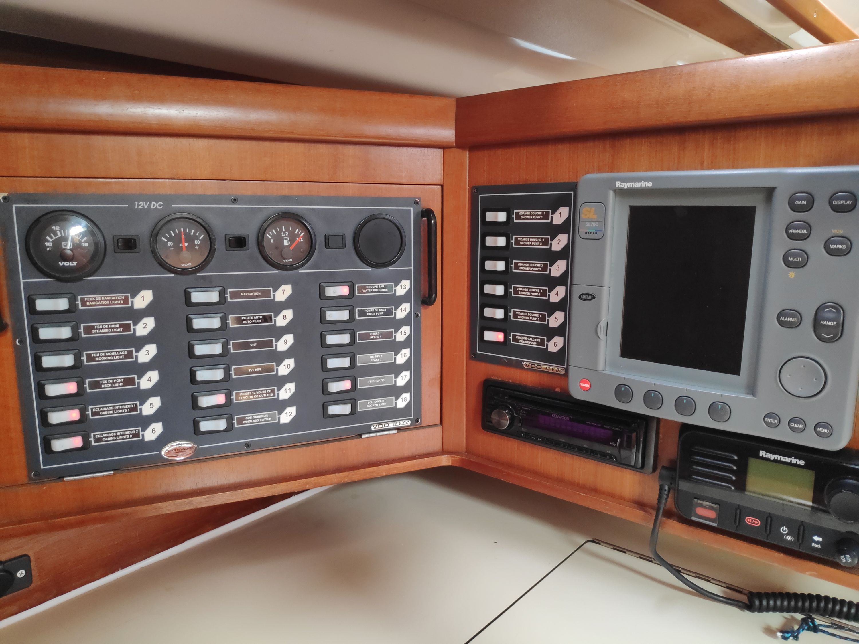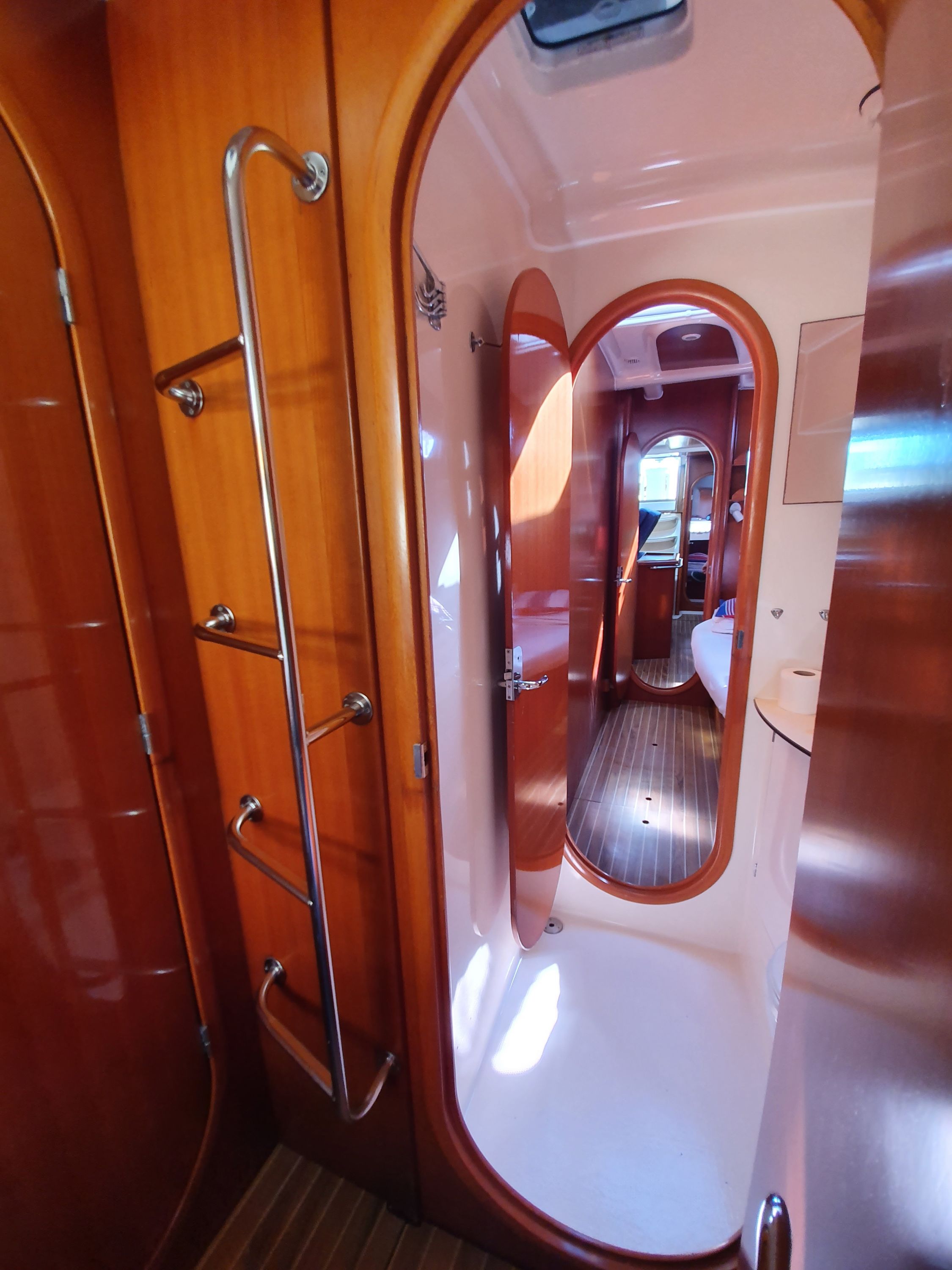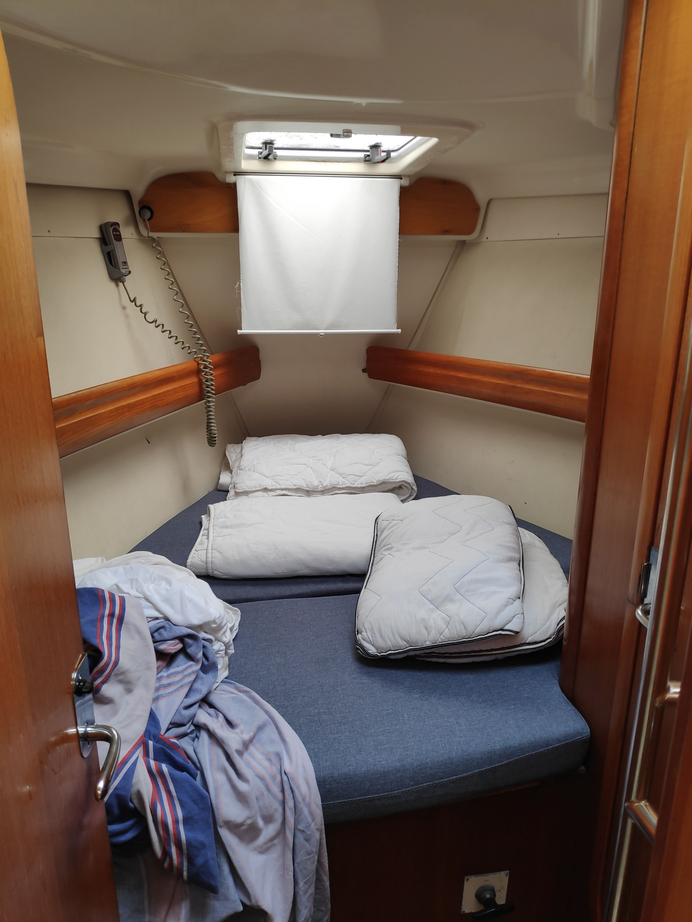 | Navigation | Fernglas, GPS mit Kartenplotter im Cockpit, GPS mit Kartenplotter im Salon, Hafenhandbücher, Kompass, Seekarten, Tridata (Log, Echolot, Windm.), Windmesser |