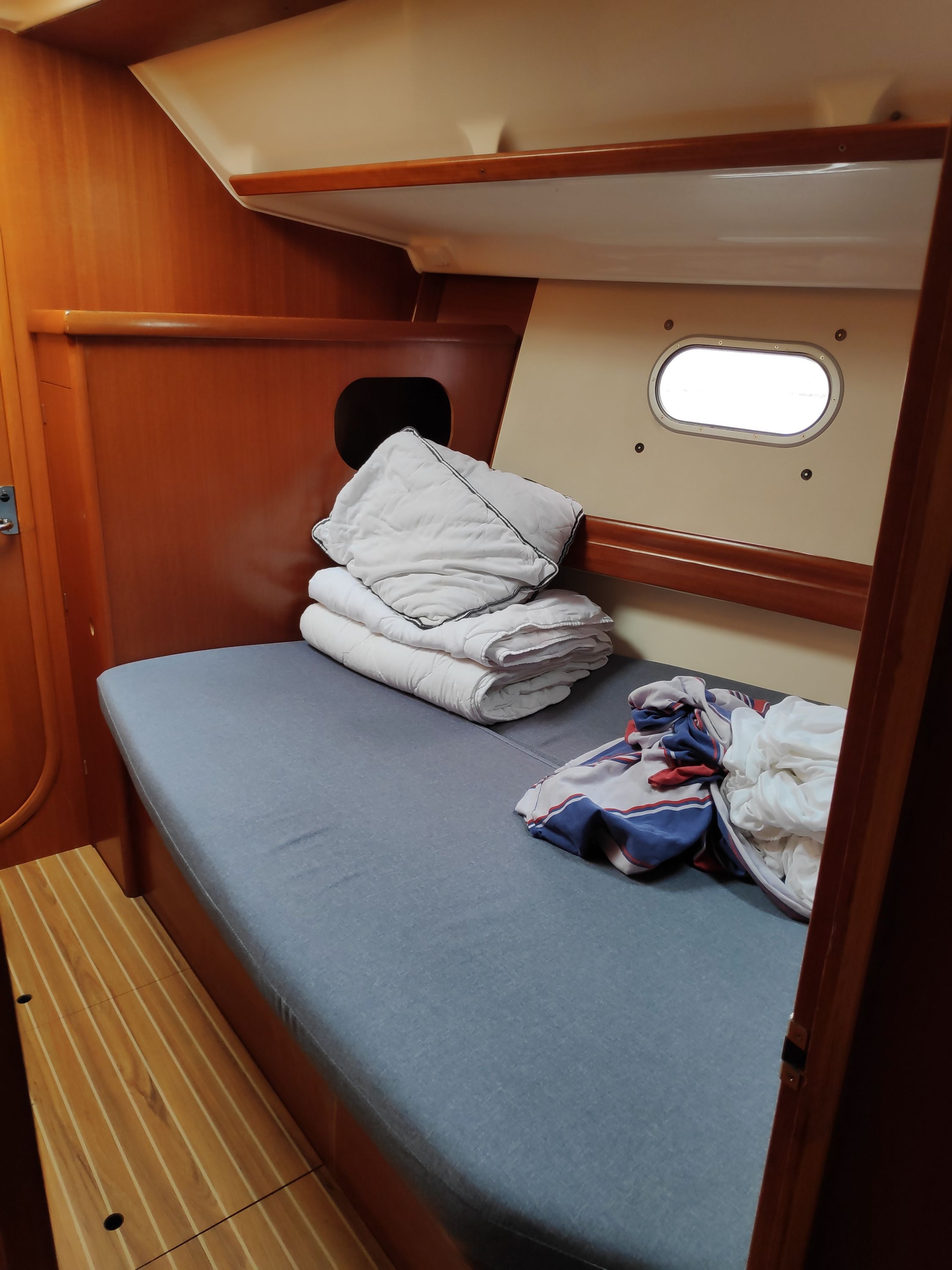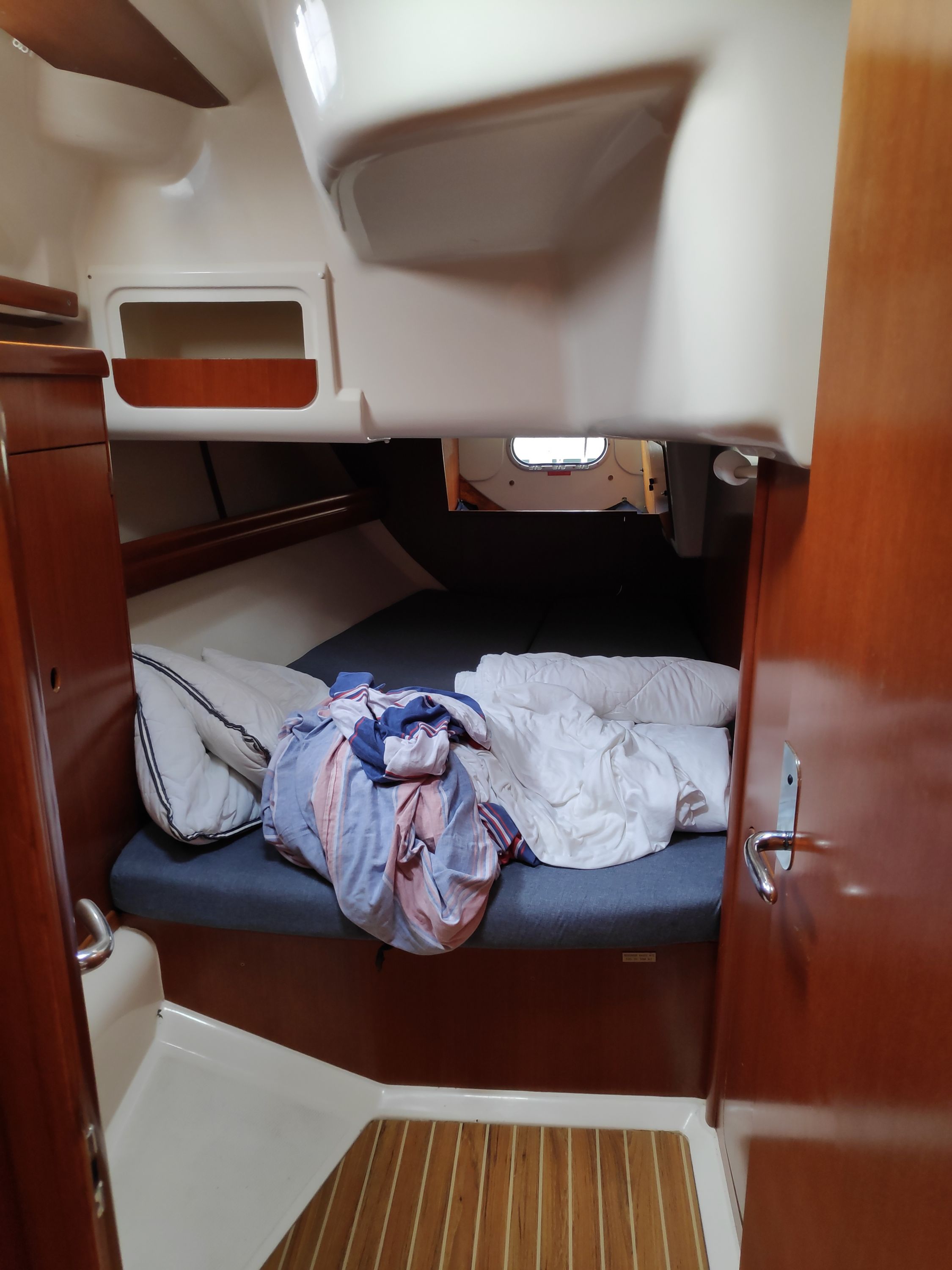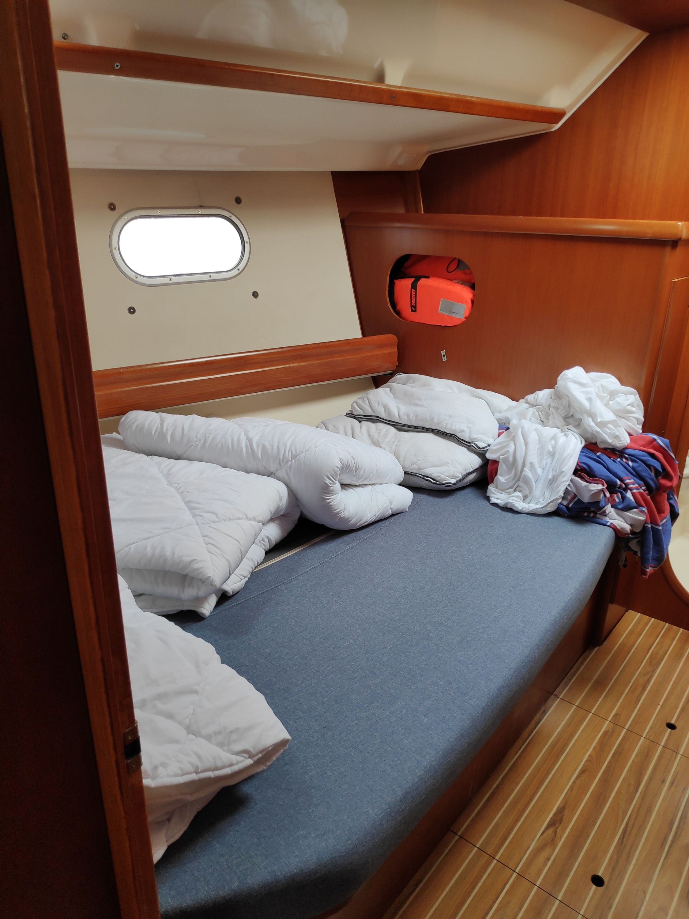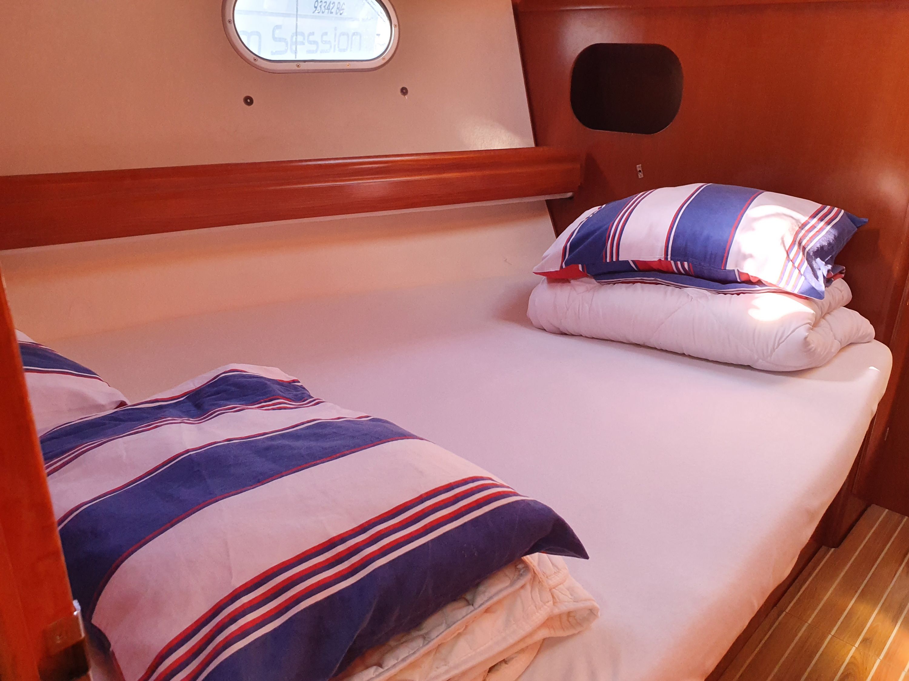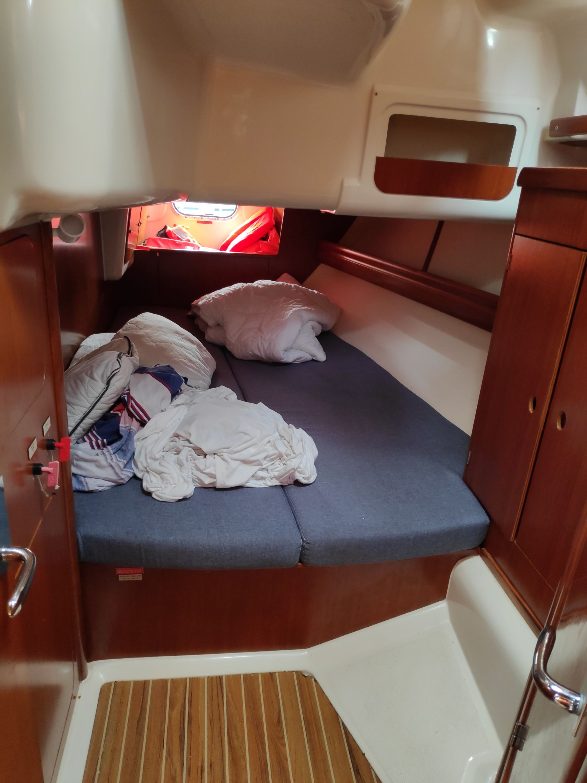 | Safety | Autopilot, Bordapotheke, Bugstrahlruder, elektr. Bilgepumpe, Feststoffschwimmwesten, Handbilgepumpe, Lifebelts, Notsignale, Radarreflektor, Rettungsinsel, Rettungskragen, Taschenlampe, UKW-Funk, Zweitanker |