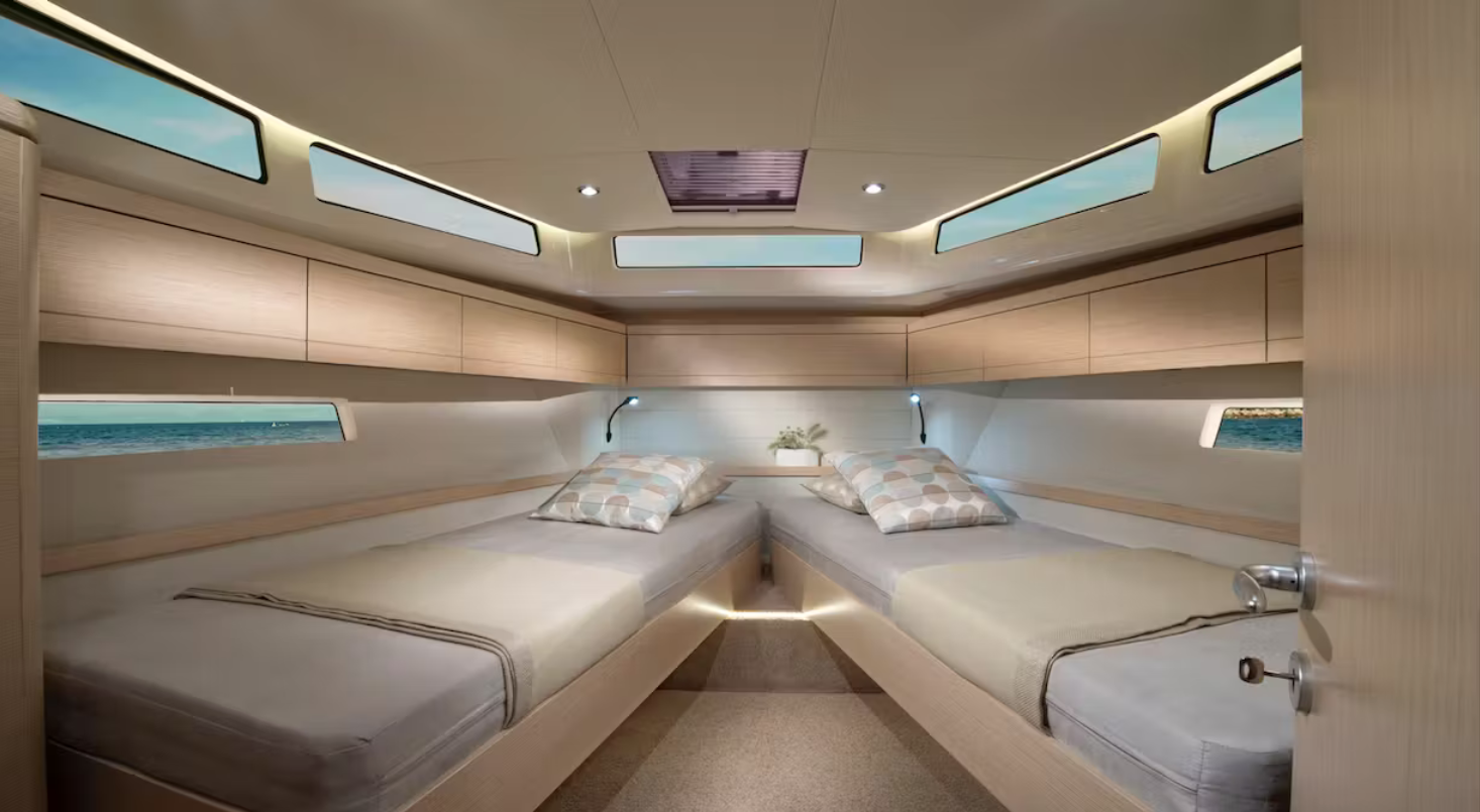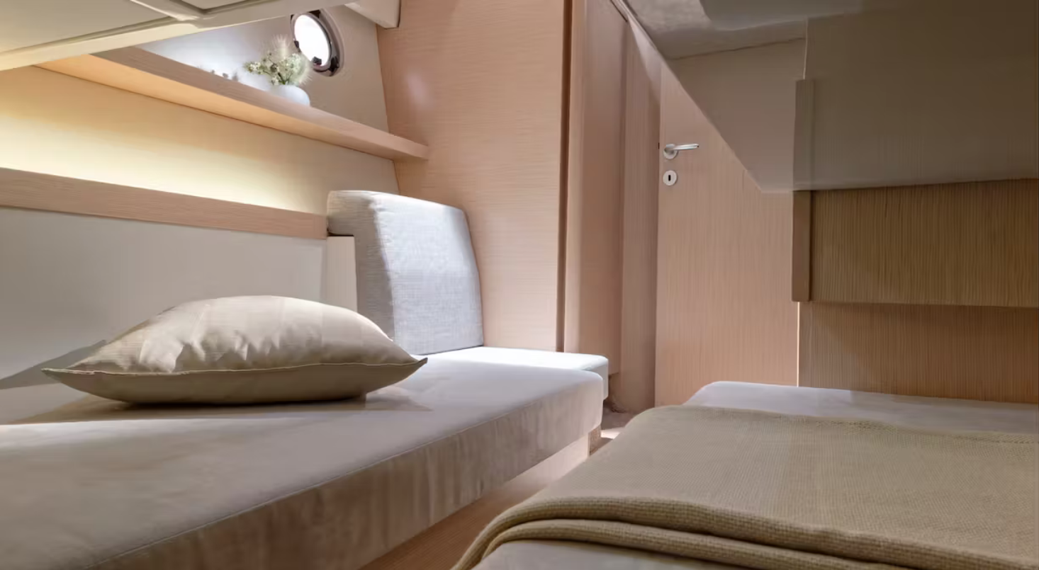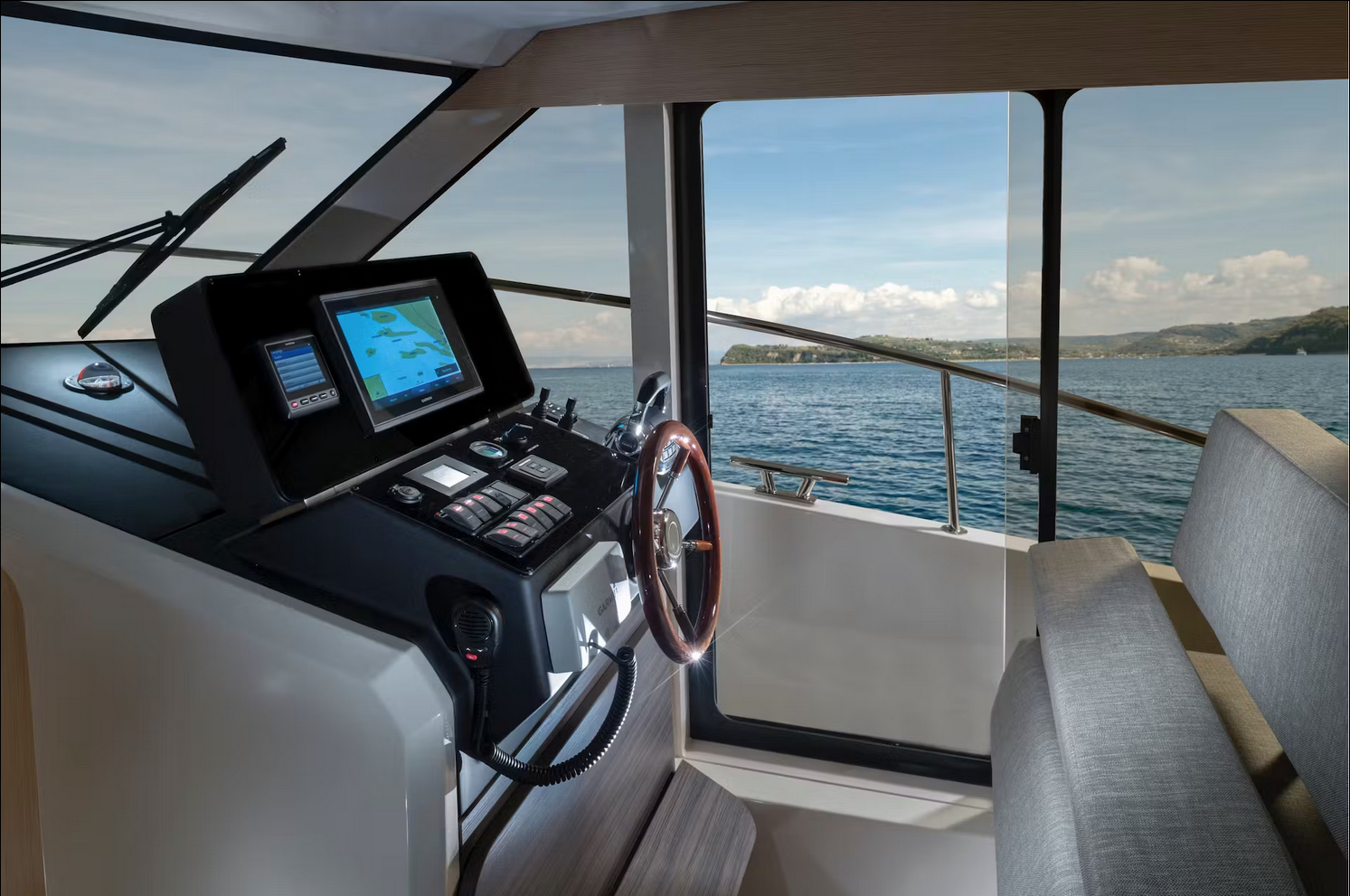| Safety | Autopilot, Bordapotheke, Bordwerkzeug, Bugstrahlruder, Feststoffschwimmwesten, Feuerlöscher, Heckstrahlruder, Nebelhorn, Notsignale, Rettungswesten, Rückfahrkamera, Taschenlampe, UKW-Funk mit AIS |