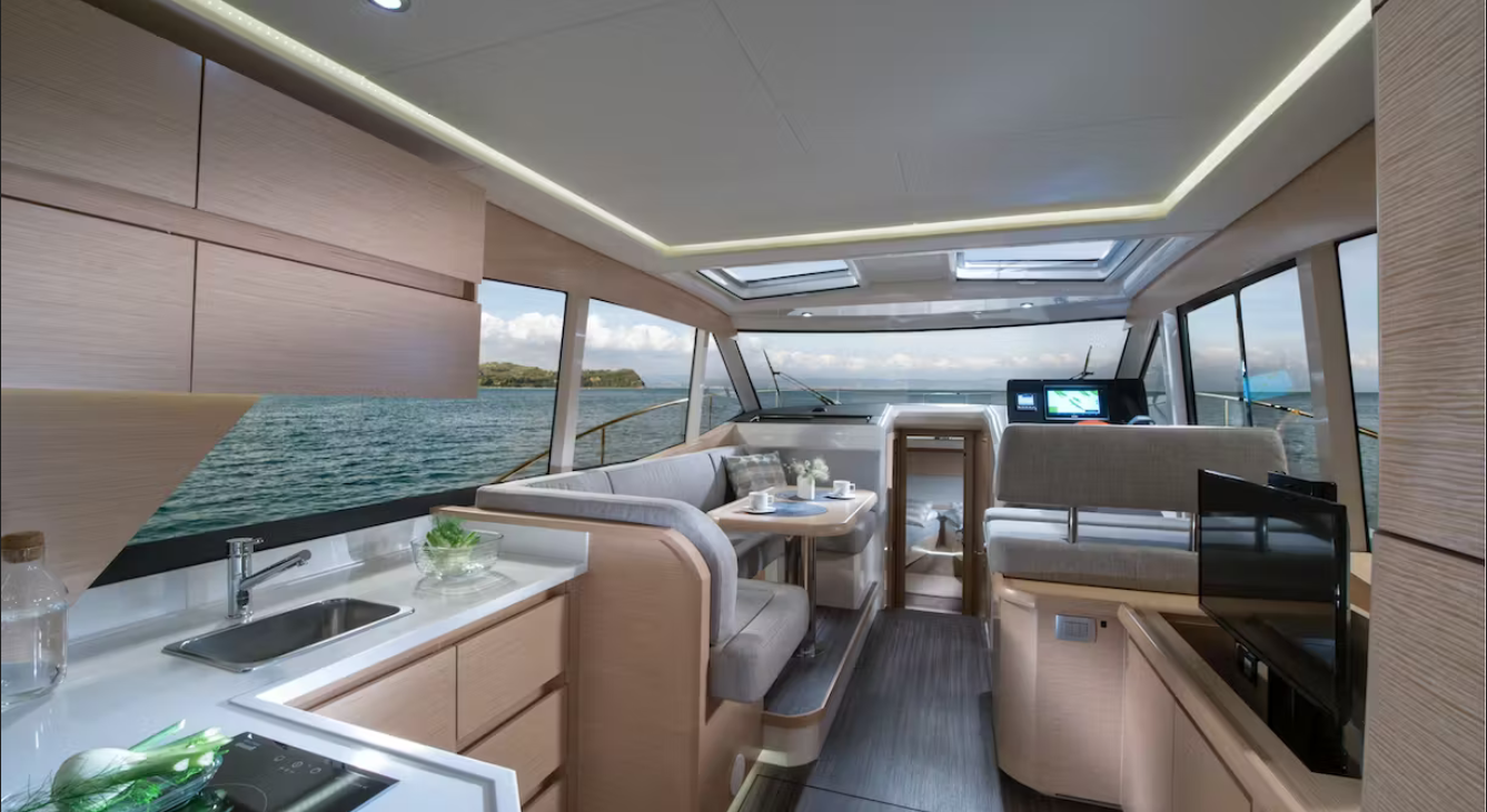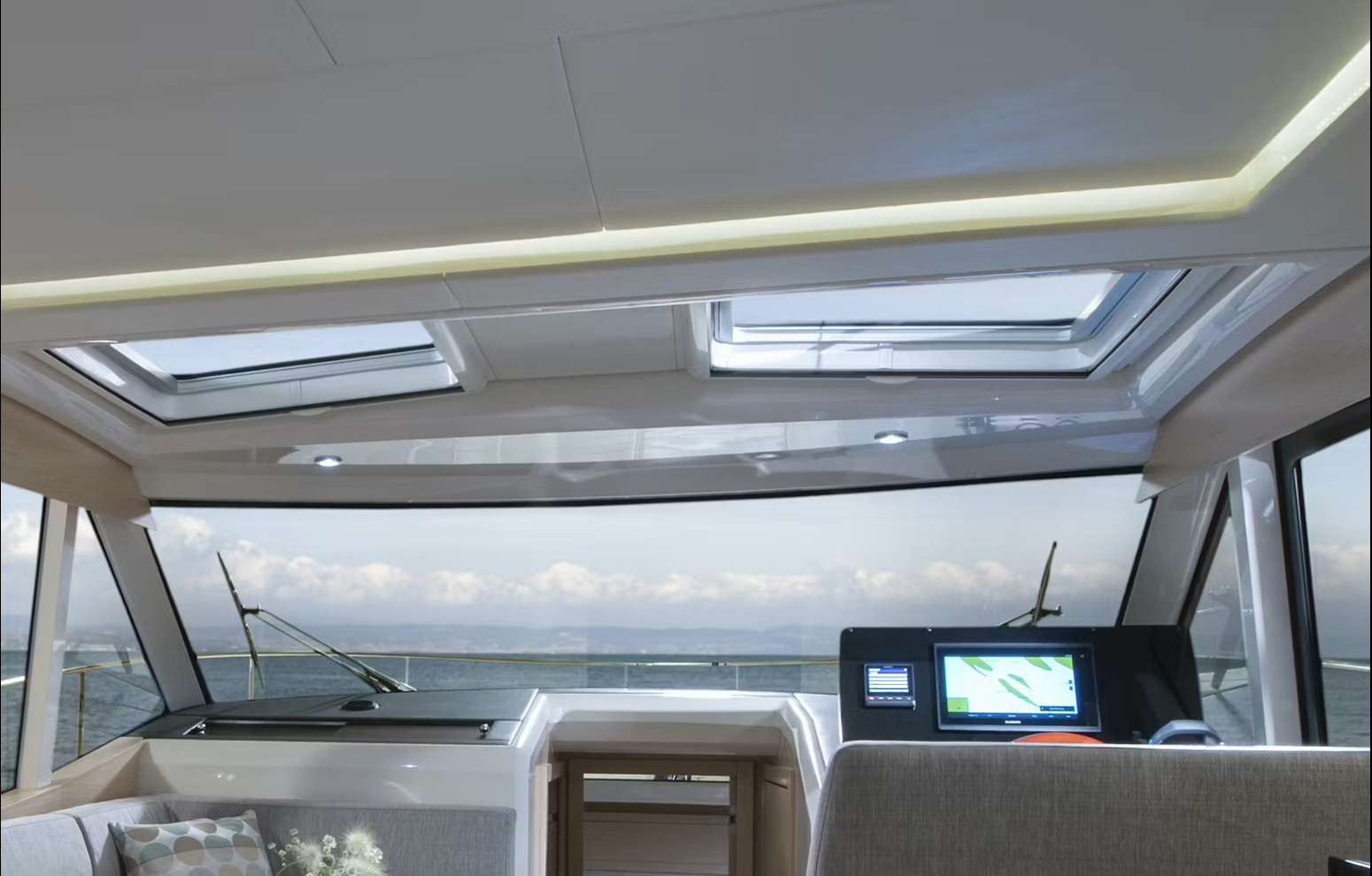 | Inside | Elektroherd, Fäkalientank, FUSION Sound System, Geschirrspüler, Heizung, Inverter 12V/220V, Klimaanlage (Landstrom), Kühlschrank mit Gefrierfach, Mikrowelle, Radio mit USB und Bluetooth, Warmwasser, WC (elektr.) |