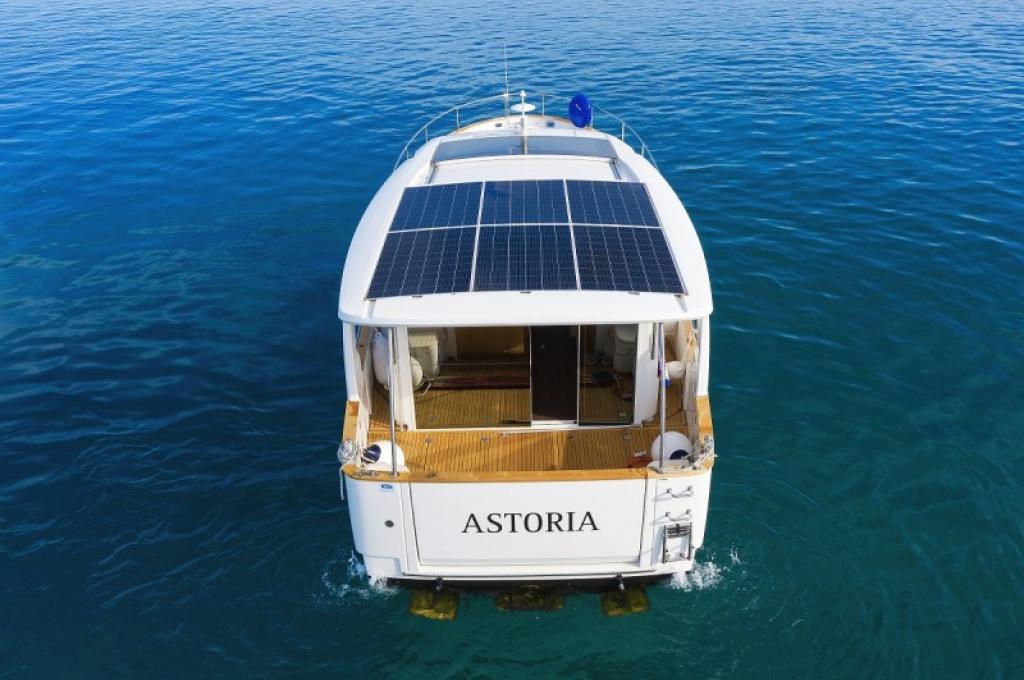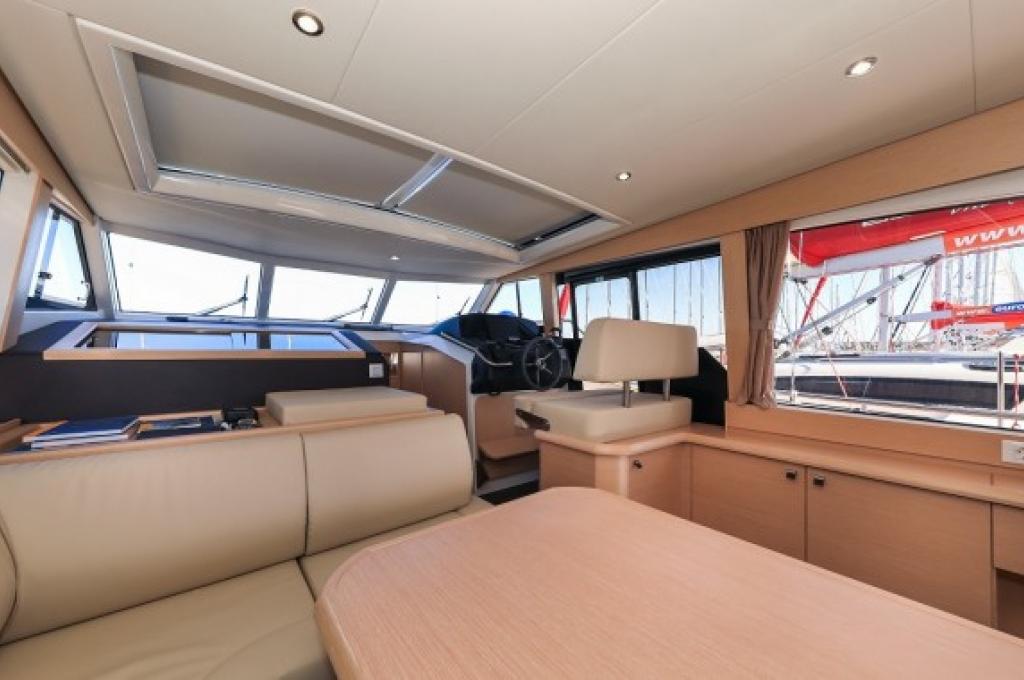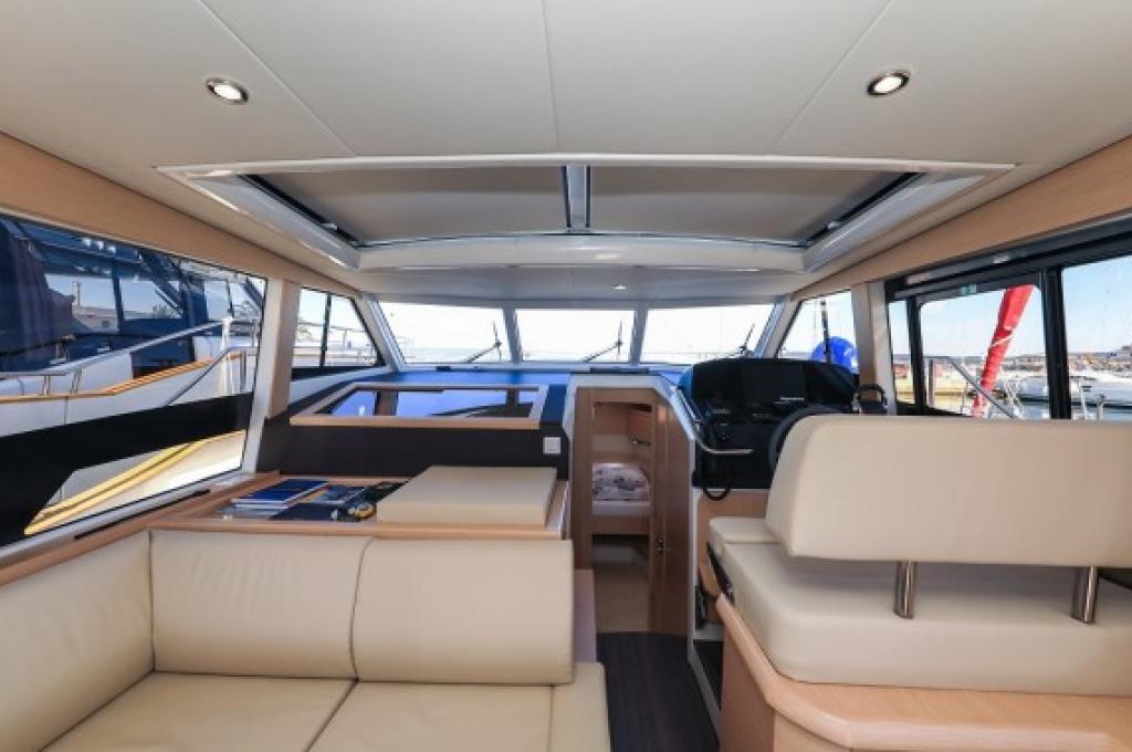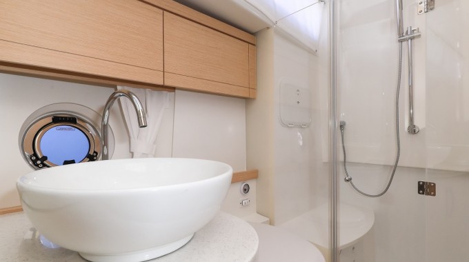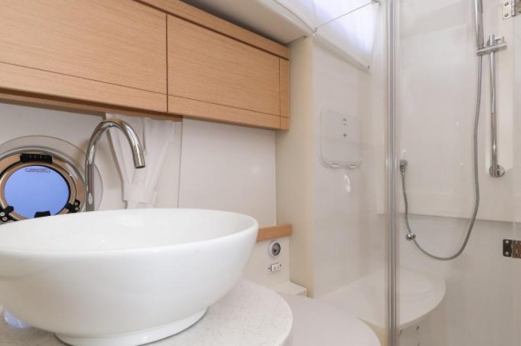 | Outside | 220 V-Landanschluss, Anker mit Kette, Badeleiter, Badeplattform, Bootshaken, Cockpitdusche, Cockpitlautsprecher, Cockpitpolster, Cockpittisch, Deckbeleuchtung, Deckpolster, elektr. Ankerwinsch, Fender, Festmacherleinen, Solaranlage, Teak auf Badeplattform, Teak im Cockpit, Treibanker |