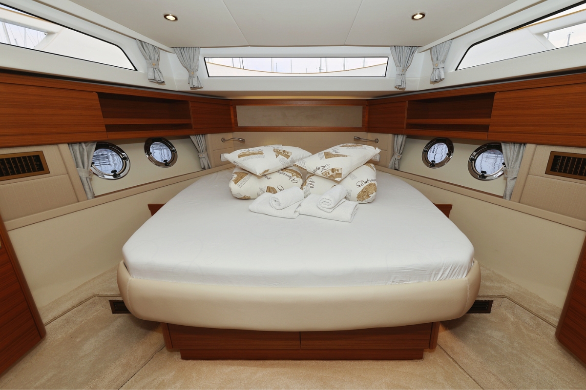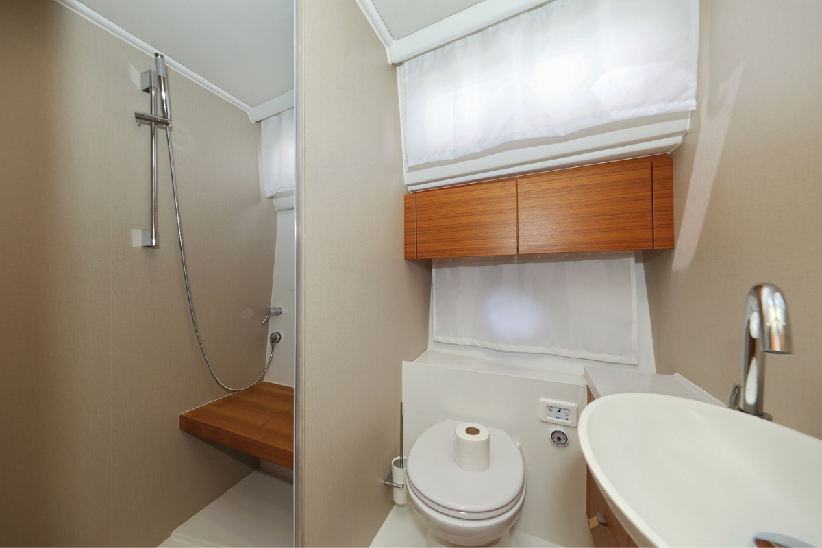 | Inside | Dusche, Fäkalientank, FUSION Sound System, Generator, Geschirrspüler, Induktionsherd, Inverter 12V/220V, Klimaanlage (ohne Landstrombedarf), Ladegerät, Lautsprecher in Salon und Cockpit, Mikrowelle, Teppich, Warmwasser, WC (elektr.) |