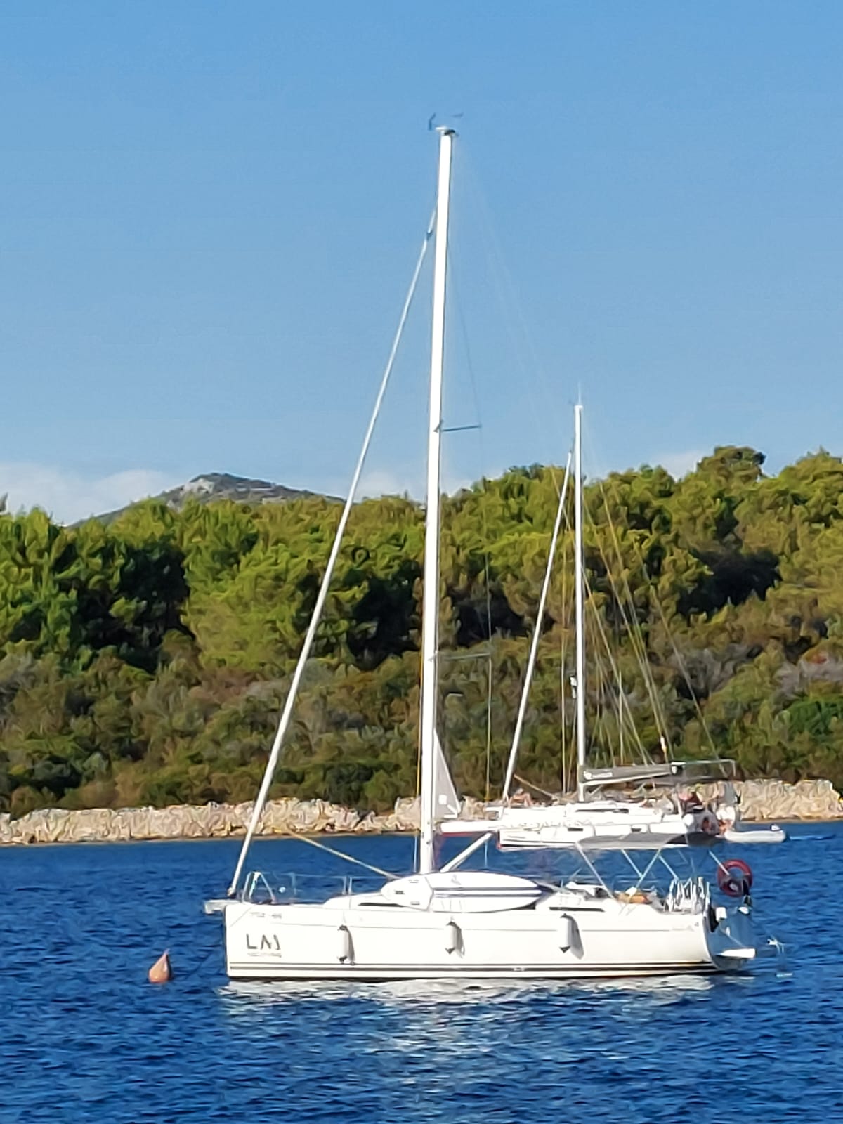 SEGELFLÄCHE war etwas klein geraten, dadurch, dass es eine Selbstwendefock war und auch das Grosssegel leichter bedient werden konnte. Der Zusatz.motor für das Schlauchboot machte kleine Probleme. Ausserdem war das Schlauchboot für 4 Personen zu klein.