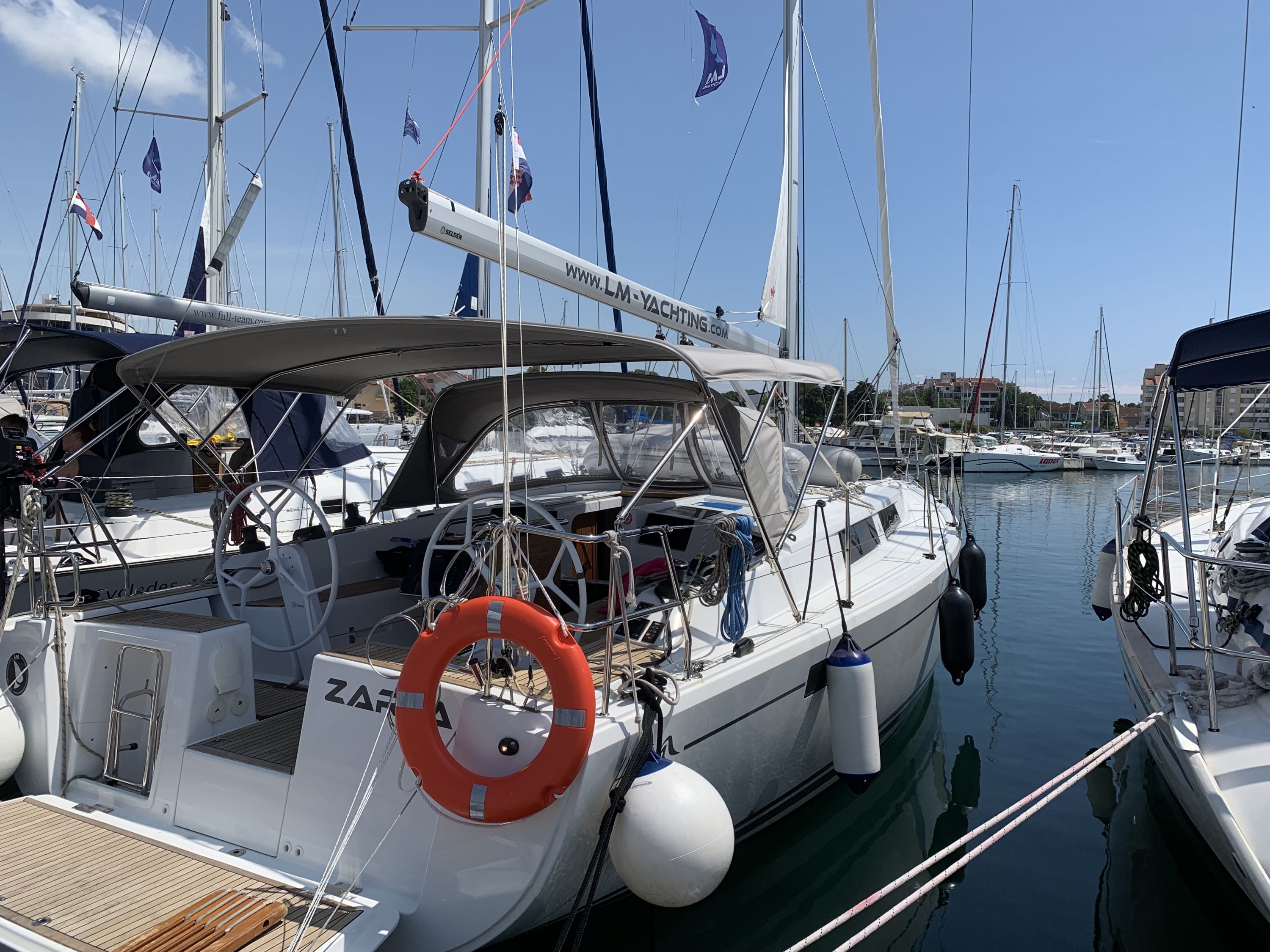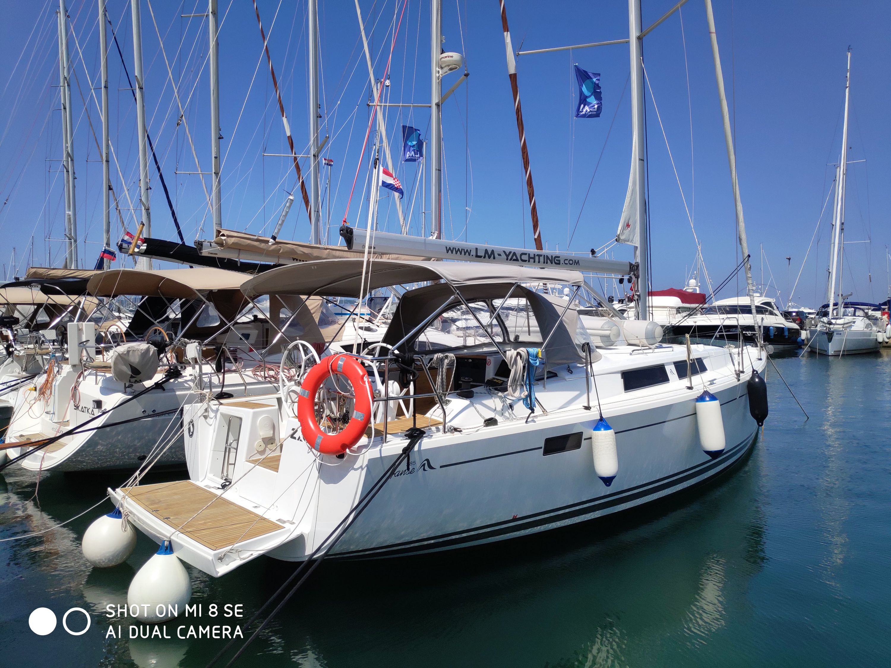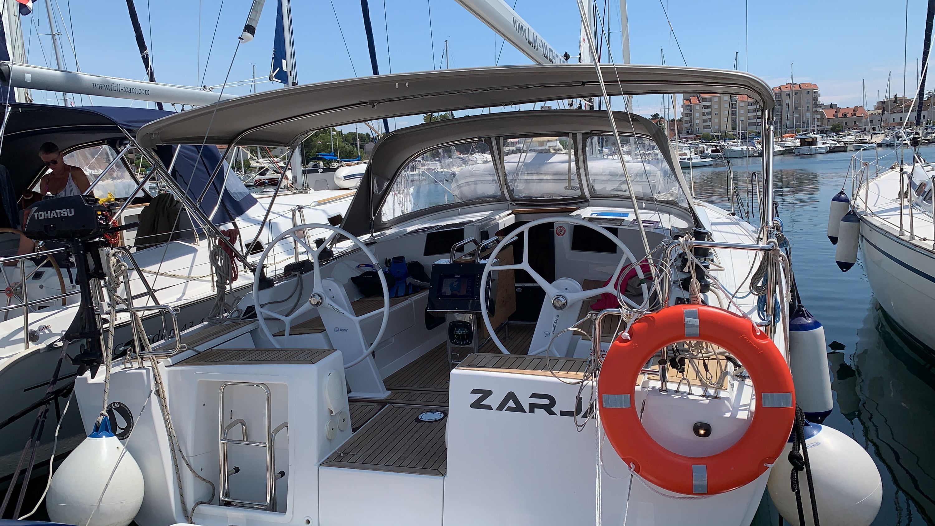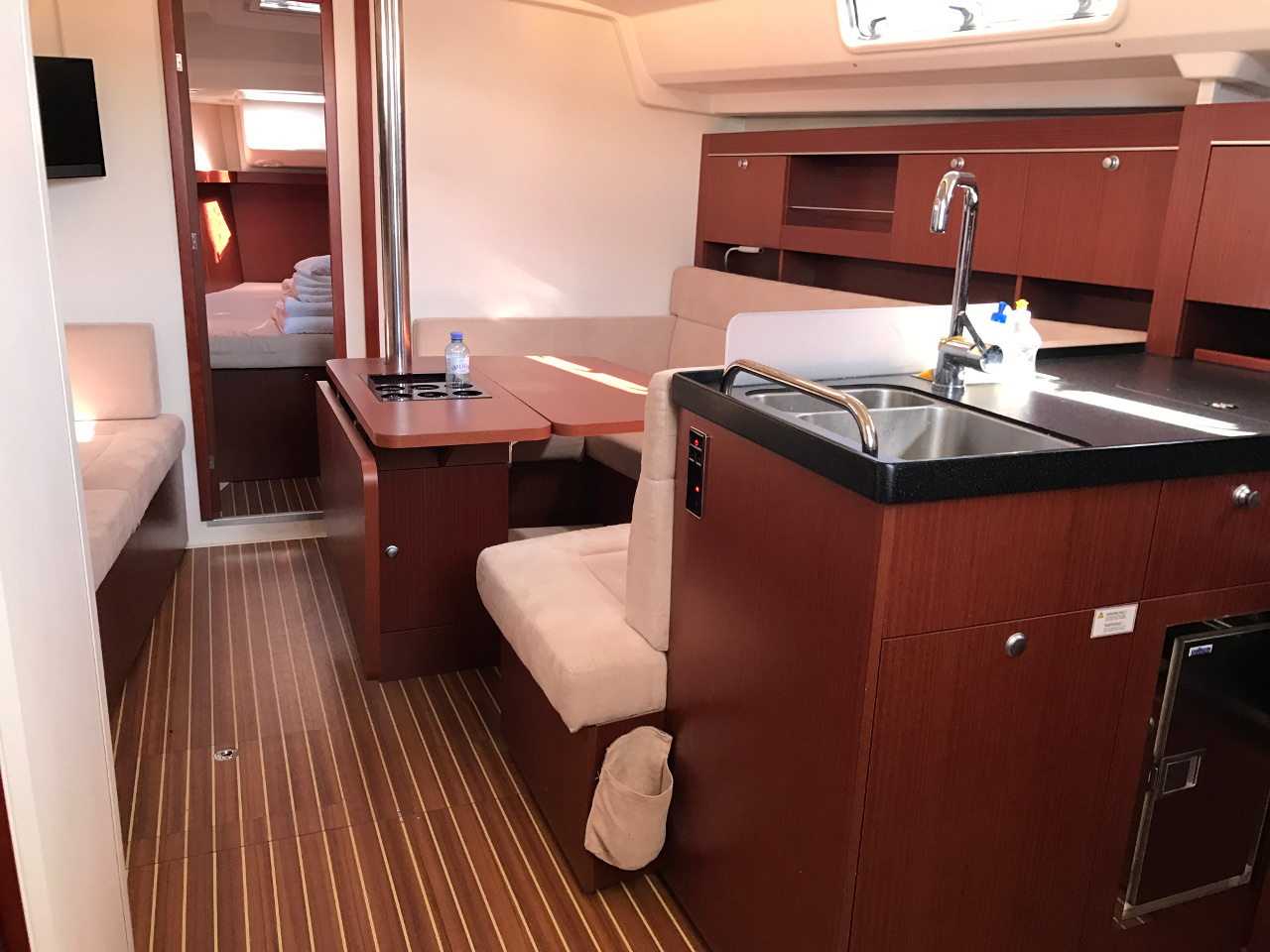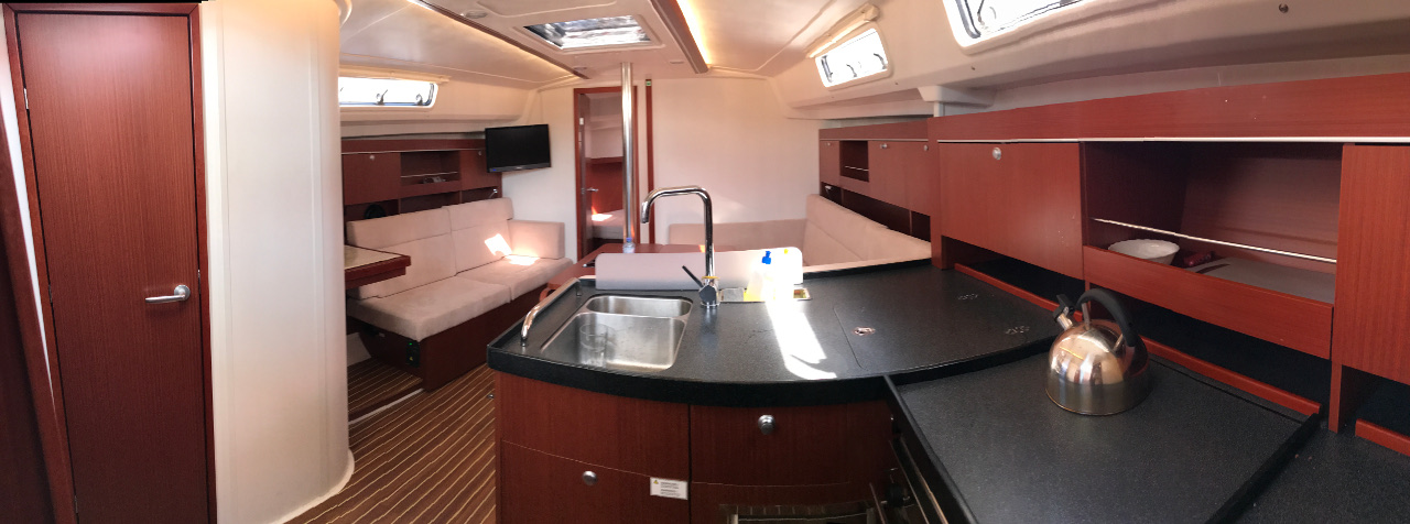 | Outside | Badeplattform, Biminitop, Cockpitdusche, Cockpittisch, elektr. Ankerwinsch, Solaranlage, Sprayhood, Teak im Cockpit |
