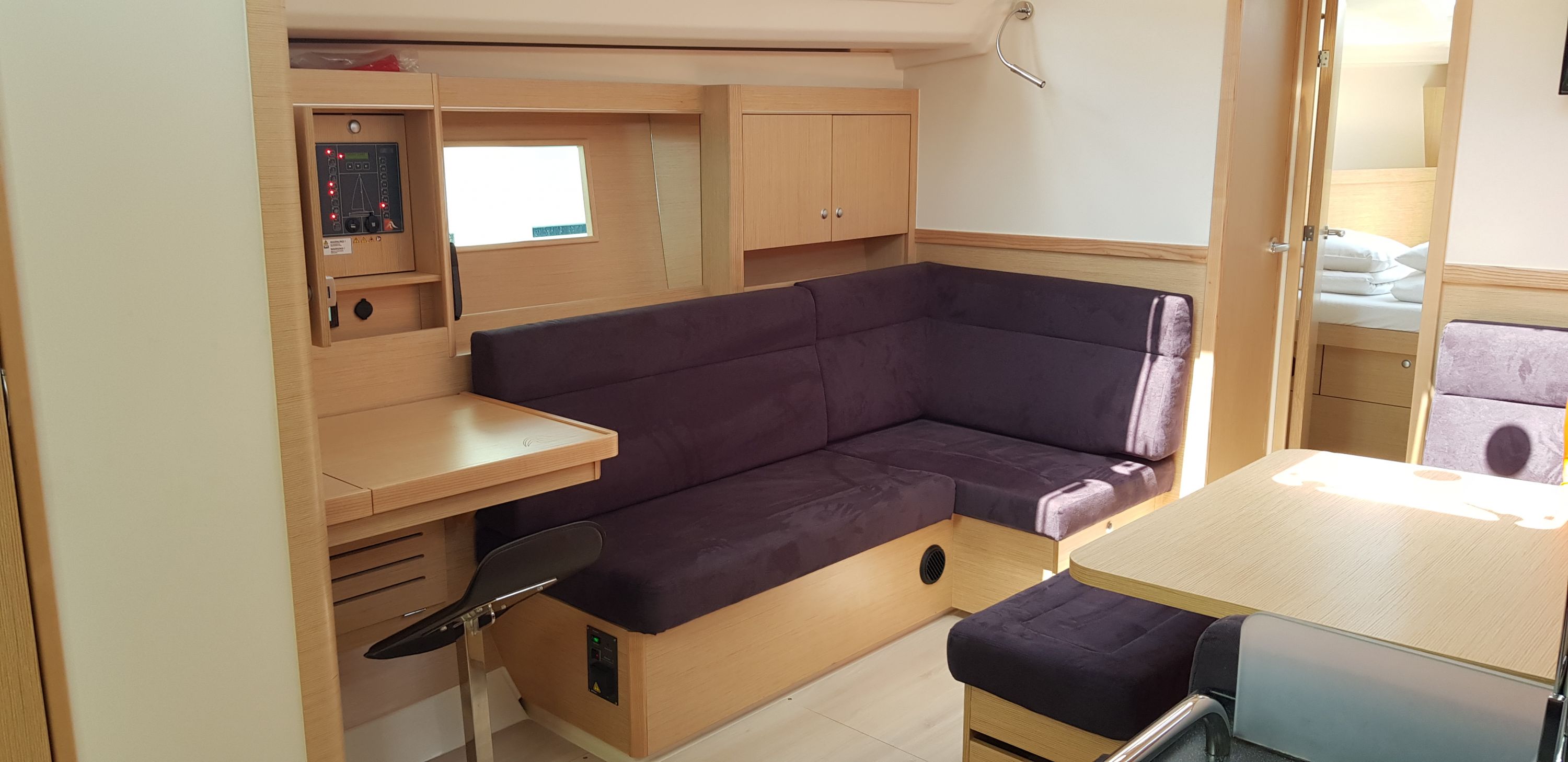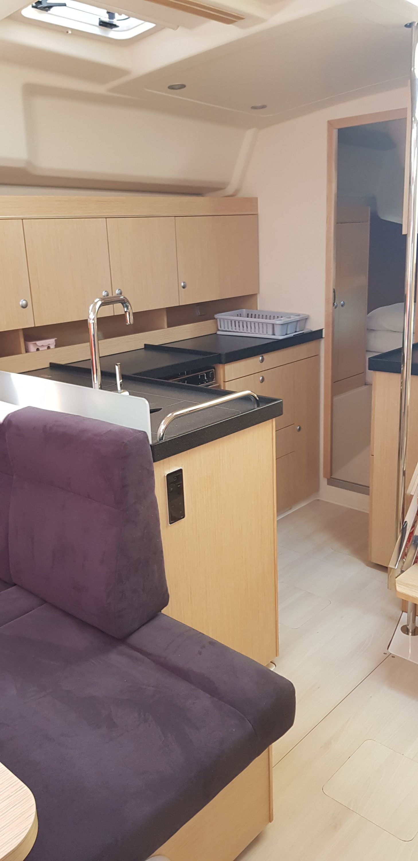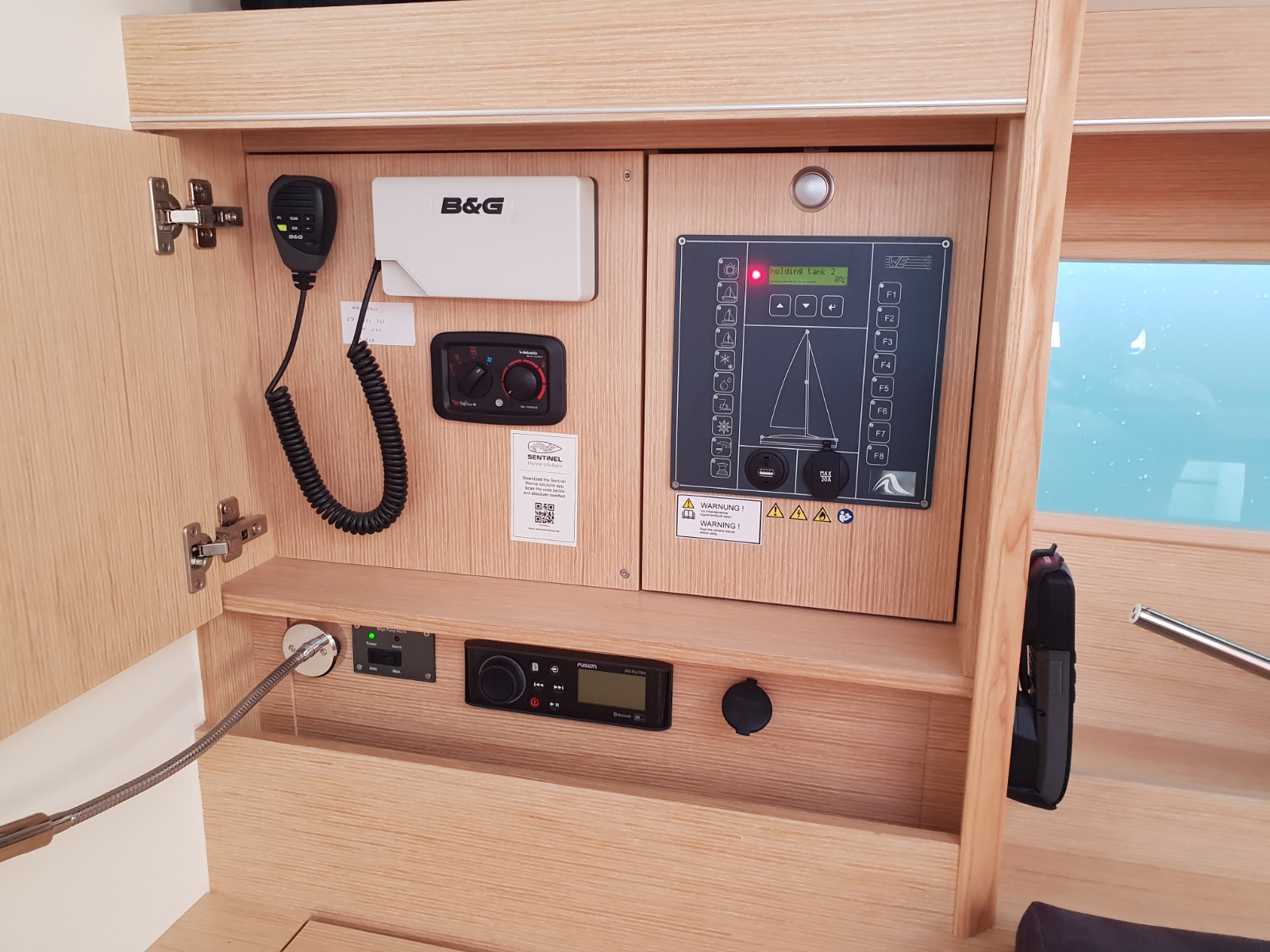 | Outside | Badeplattform, Biminitop, Cockpitdusche, Cockpitlautsprecher, Cockpitpolster, Cockpittisch, elektr. Ankerwinsch, Solaranlage, Sprayhood, Teak im Cockpit |