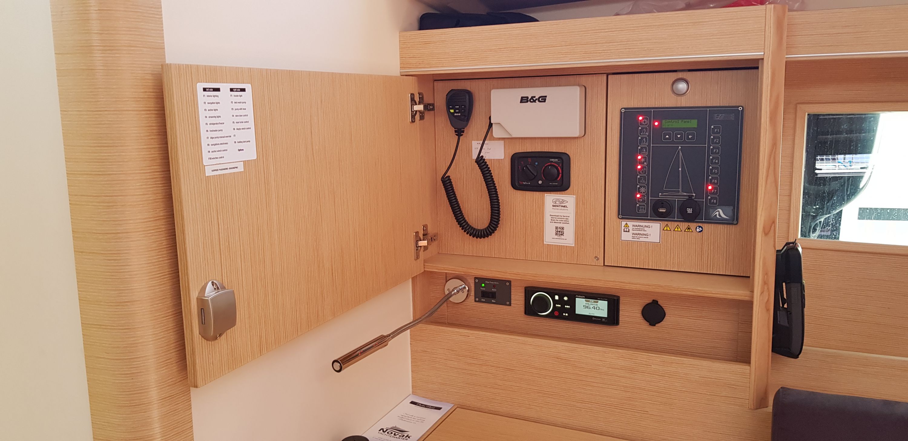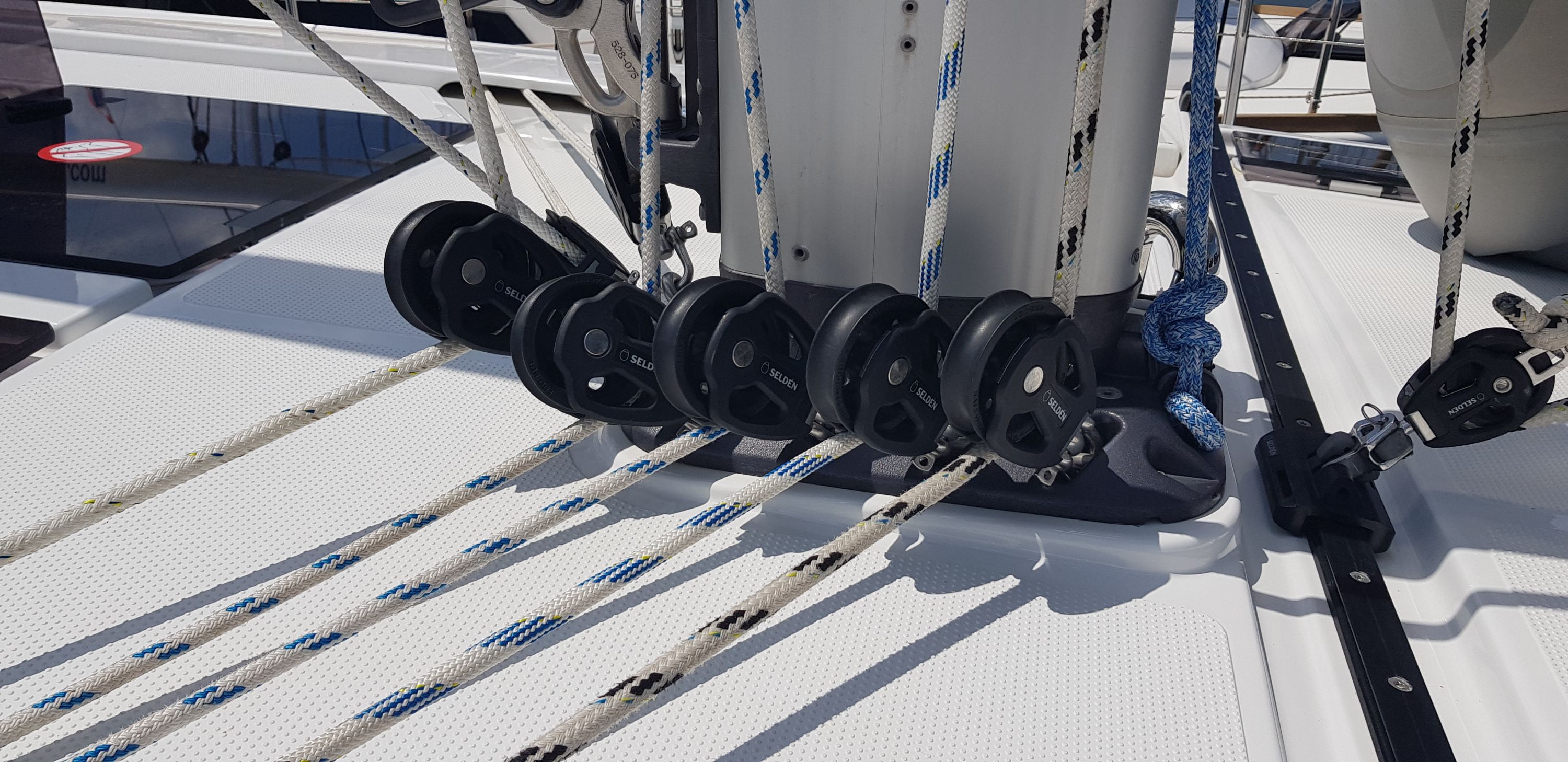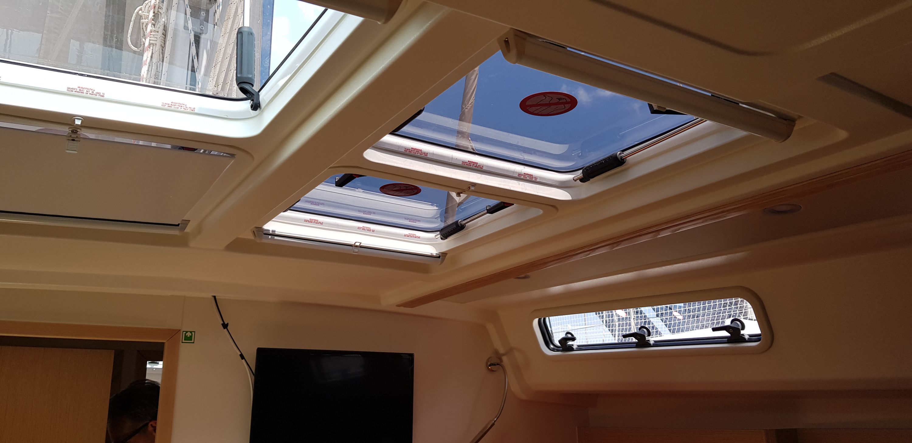 | Outside | Badeplattform, Biminitop, Cockpitdusche, Cockpitlautsprecher, Cockpitpolster, Cockpittisch, elektr. Ankerwinsch, Solaranlage, Sprayhood, Teak im Cockpit |