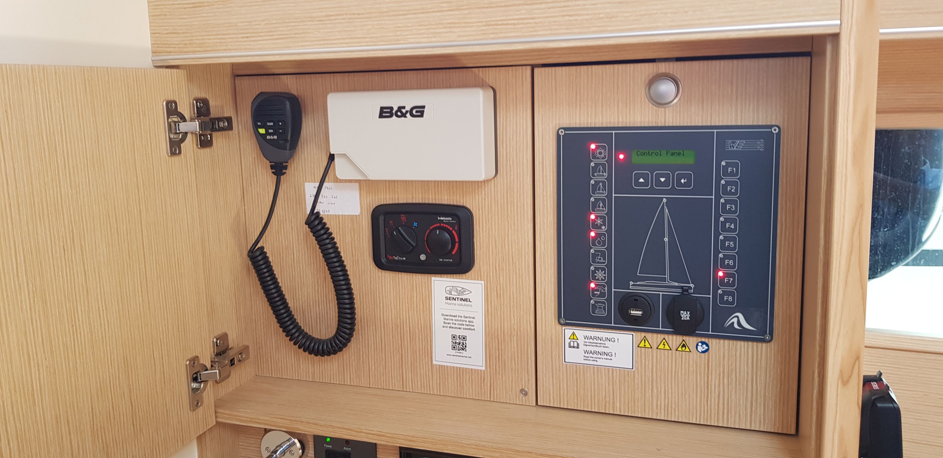 | Navigation | GPS mit Kartenplotter im Cockpit, Hafenhandbücher, Seekarten, Tridata (Log, Echolot, Windm.) |