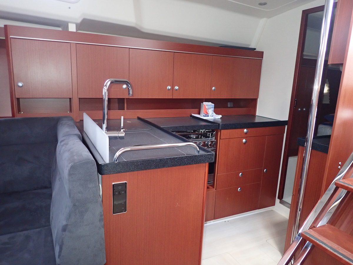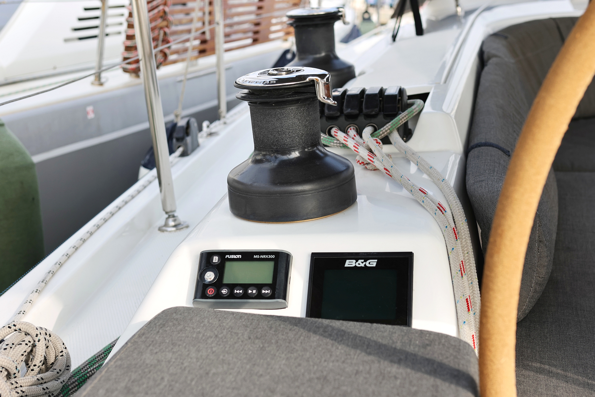 | Safety | Autopilot, Blitzboje, Bordapotheke, Bordwerkzeug, Bugstrahlruder, elektr. Bilgepumpe, Feststoffschwimmwesten, Feuerlöscher, Handbilgepumpe, Lifebelts, Nebelhorn, Notpinne, Notsignale, Radarreflektor, Rettungsinsel, Taschenlampe, UKW-Funk, Zweitanker |