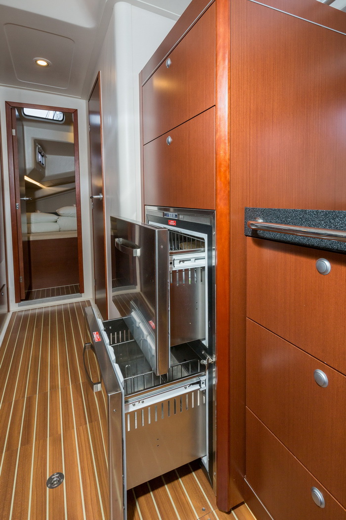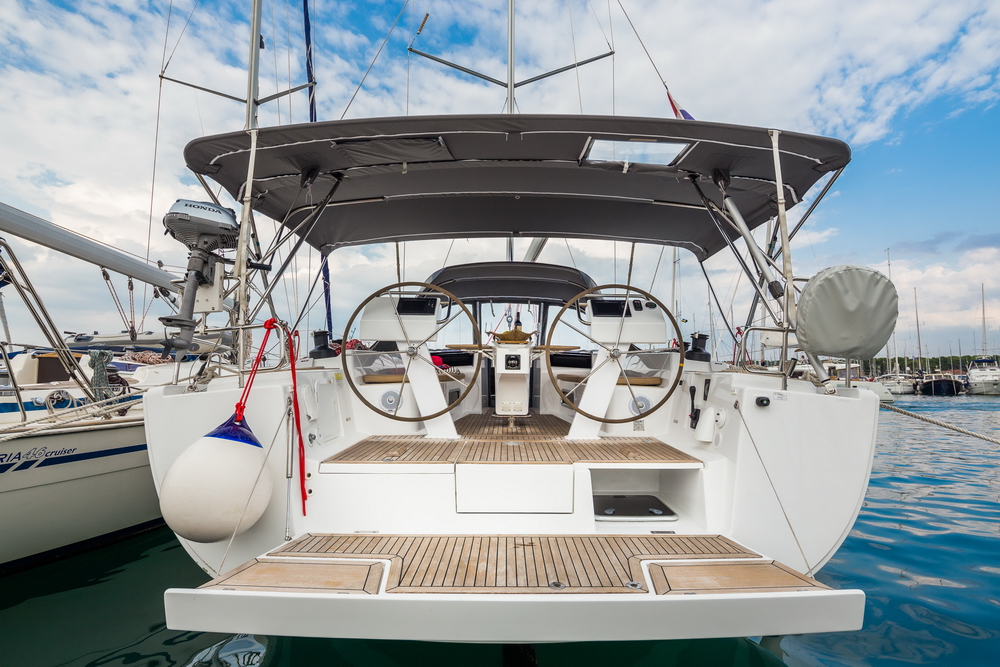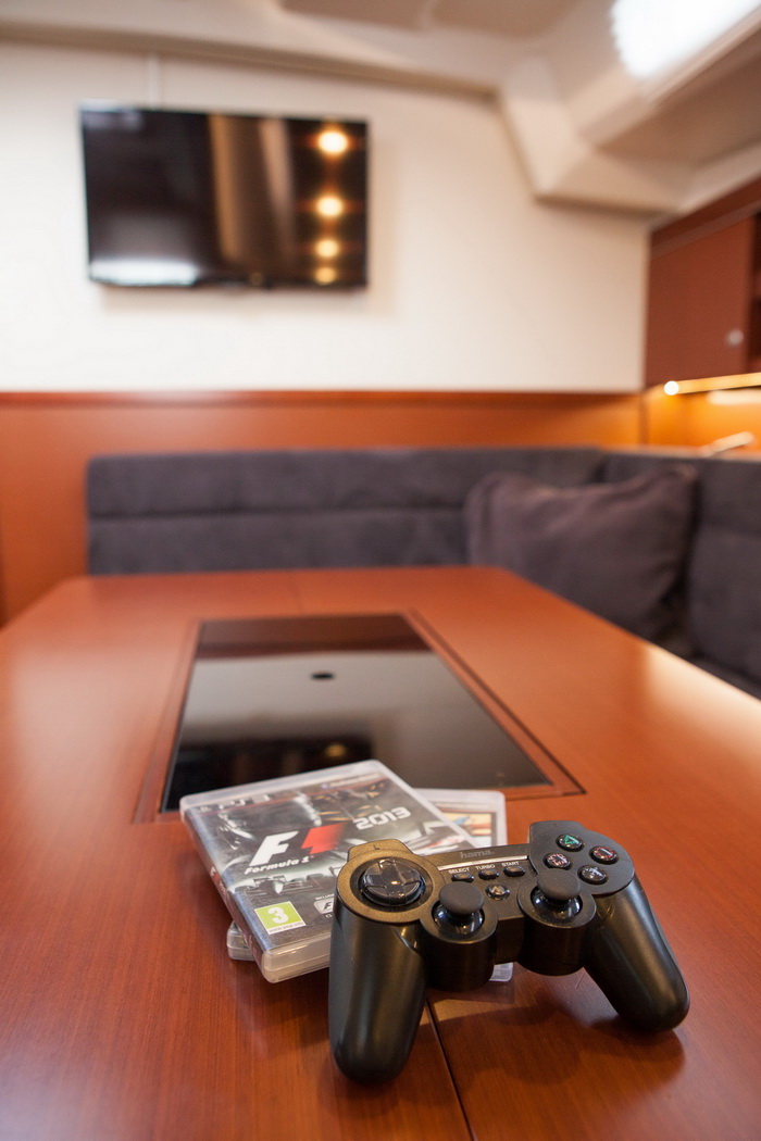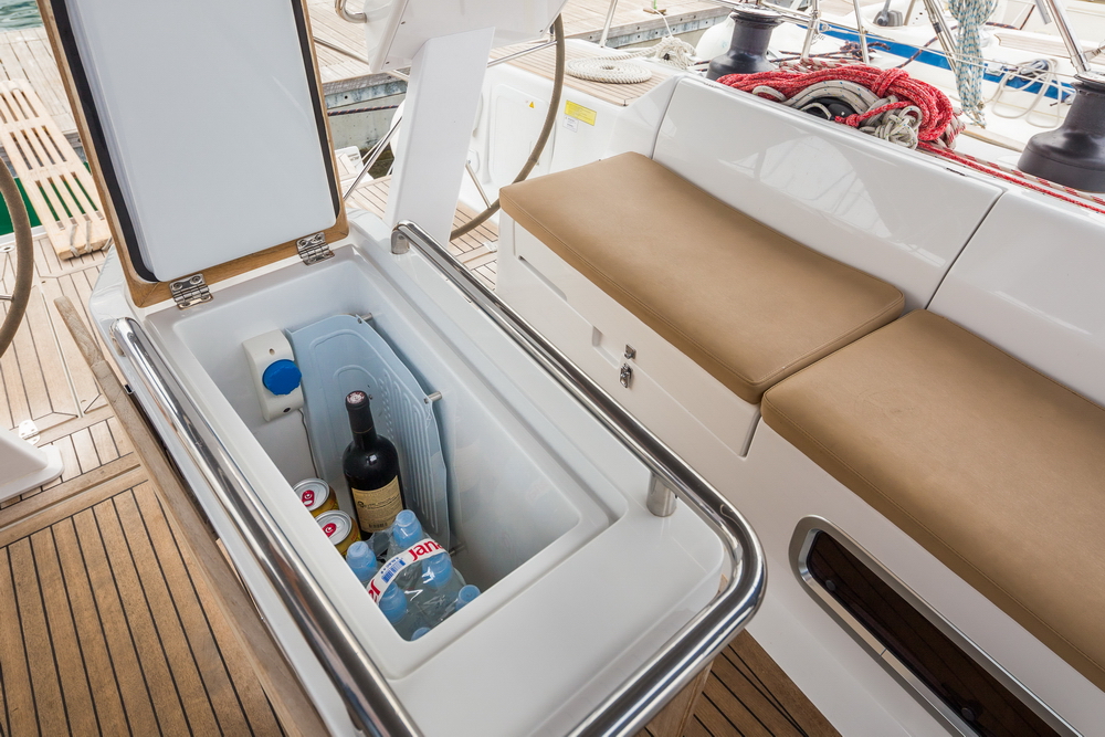 | Outside | Biminitop, Cockpitdusche, Cockpitkühlschrank, Cockpitlautsprecher, Cockpitpolster, Cockpittisch, Deckpolster, elektr. Ankerwinsch, Fallwinschen, Fallwinschen, selbstholend, Gangway, Genuawinschen, Sprayhood |