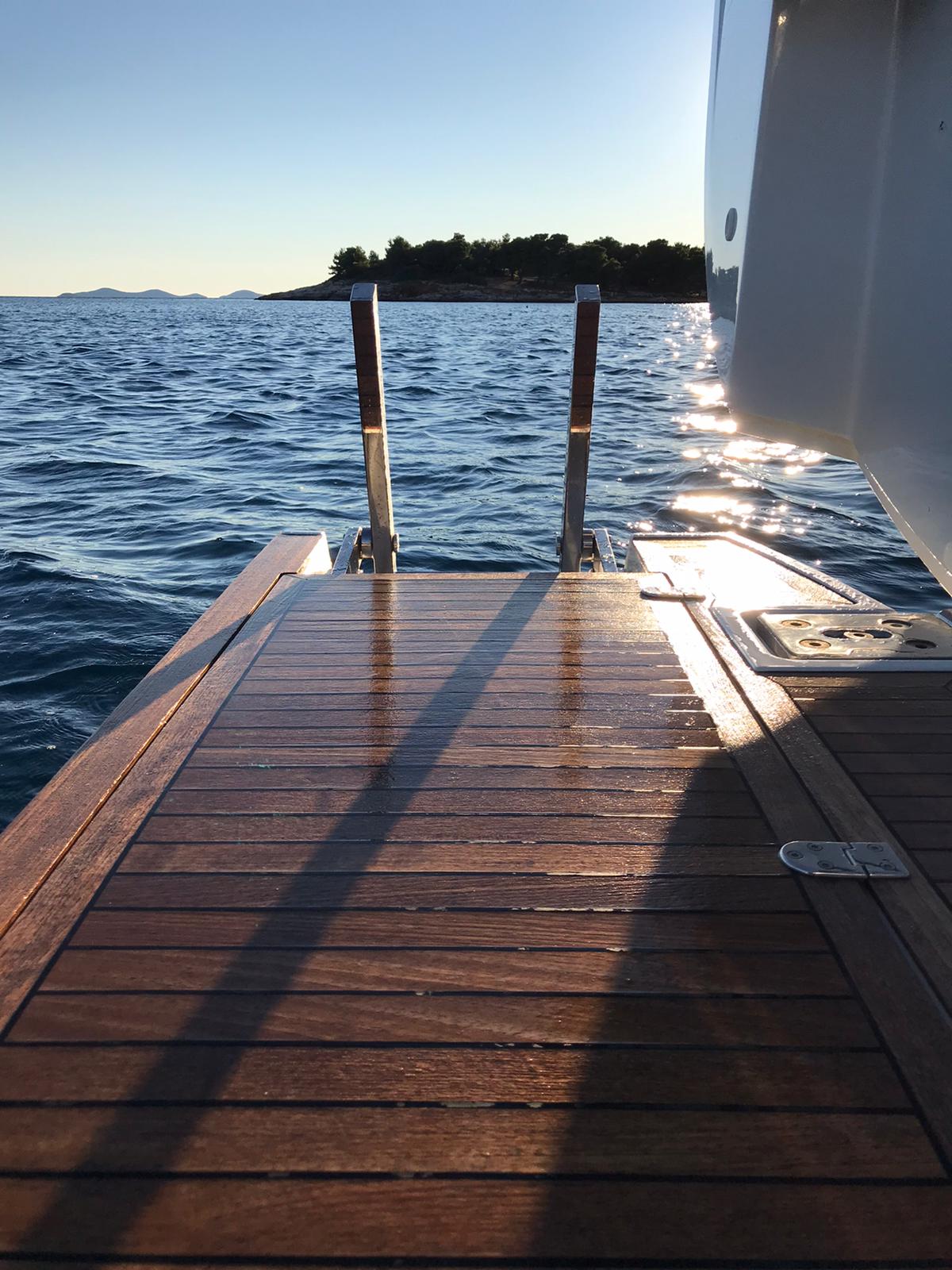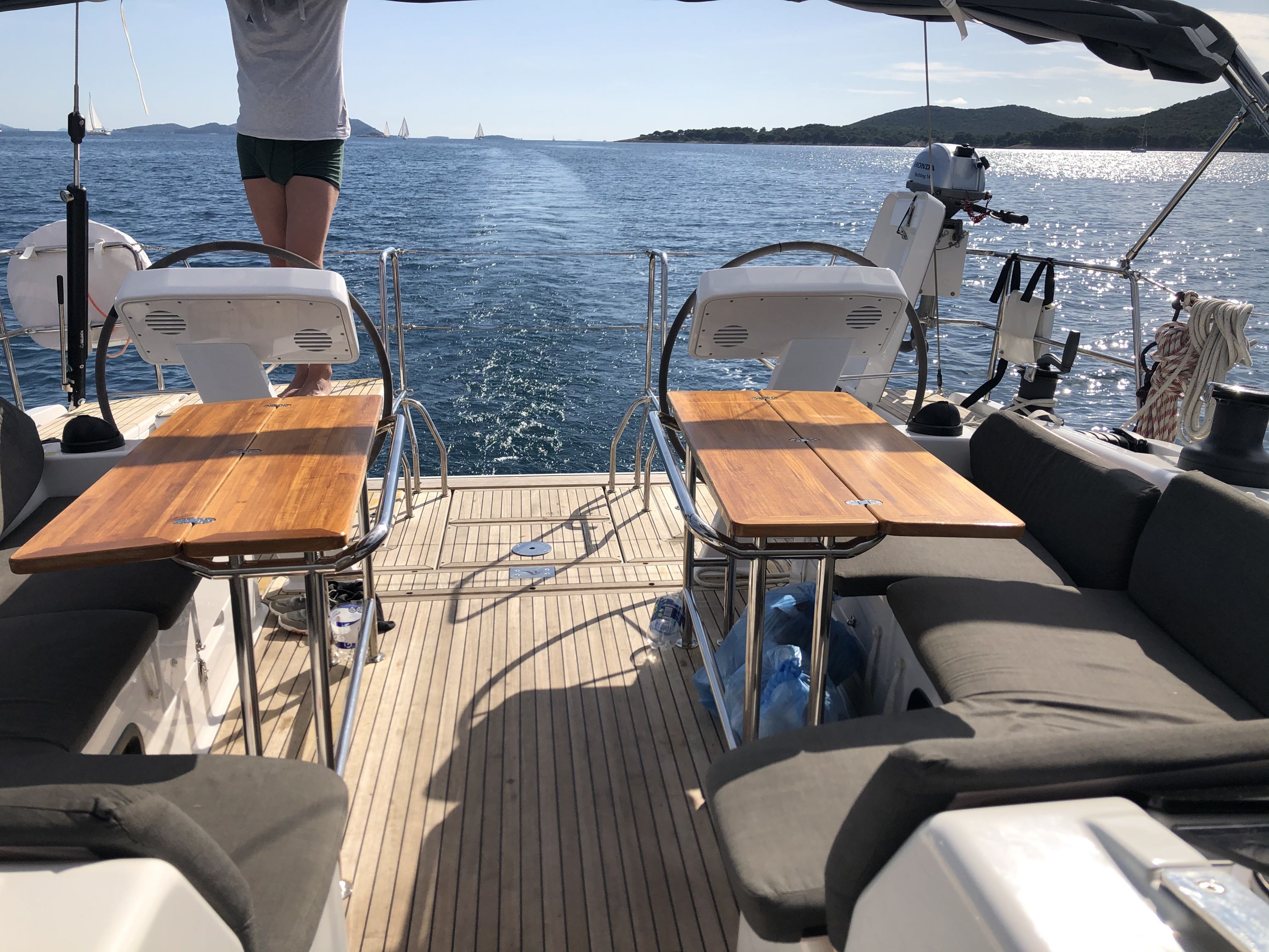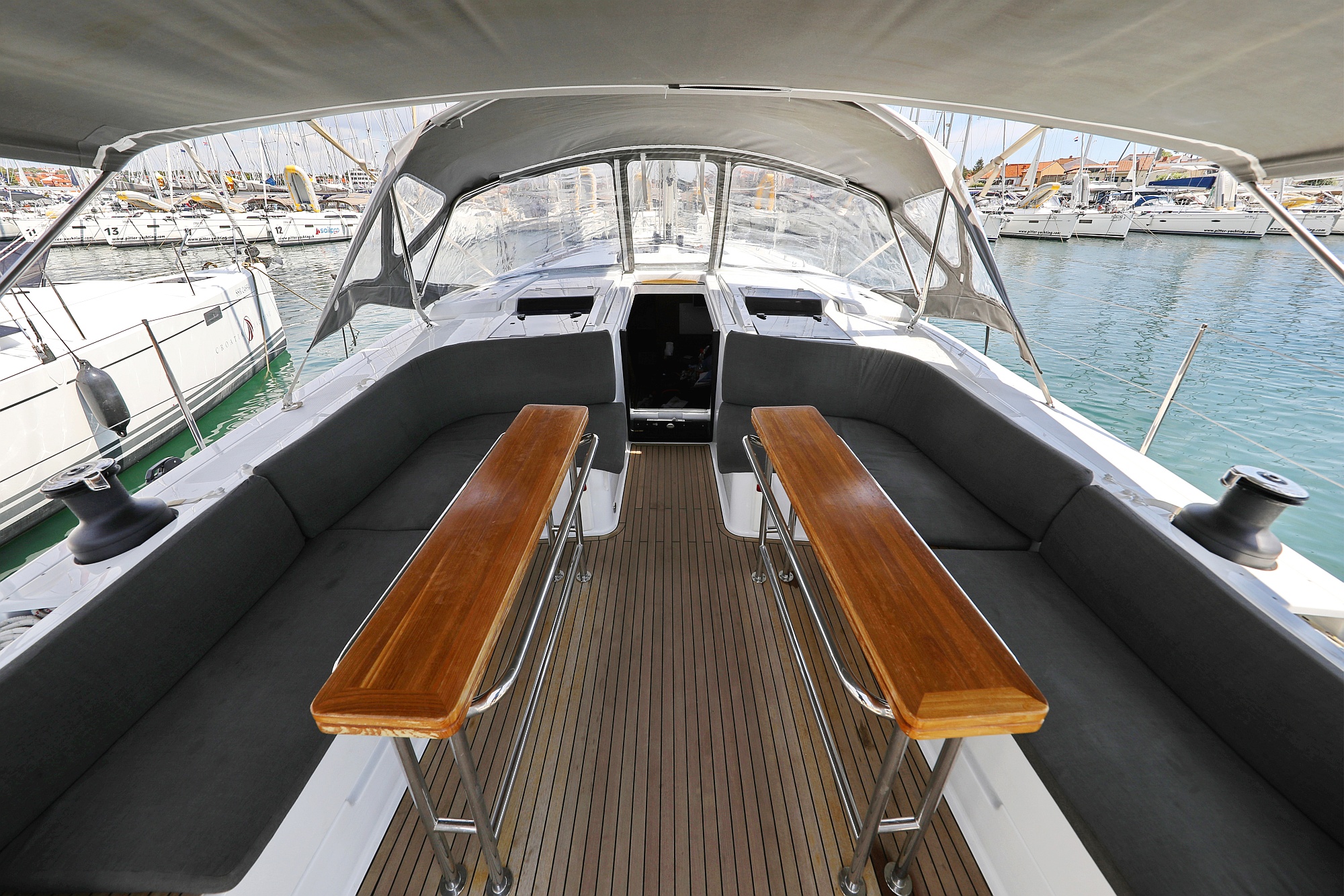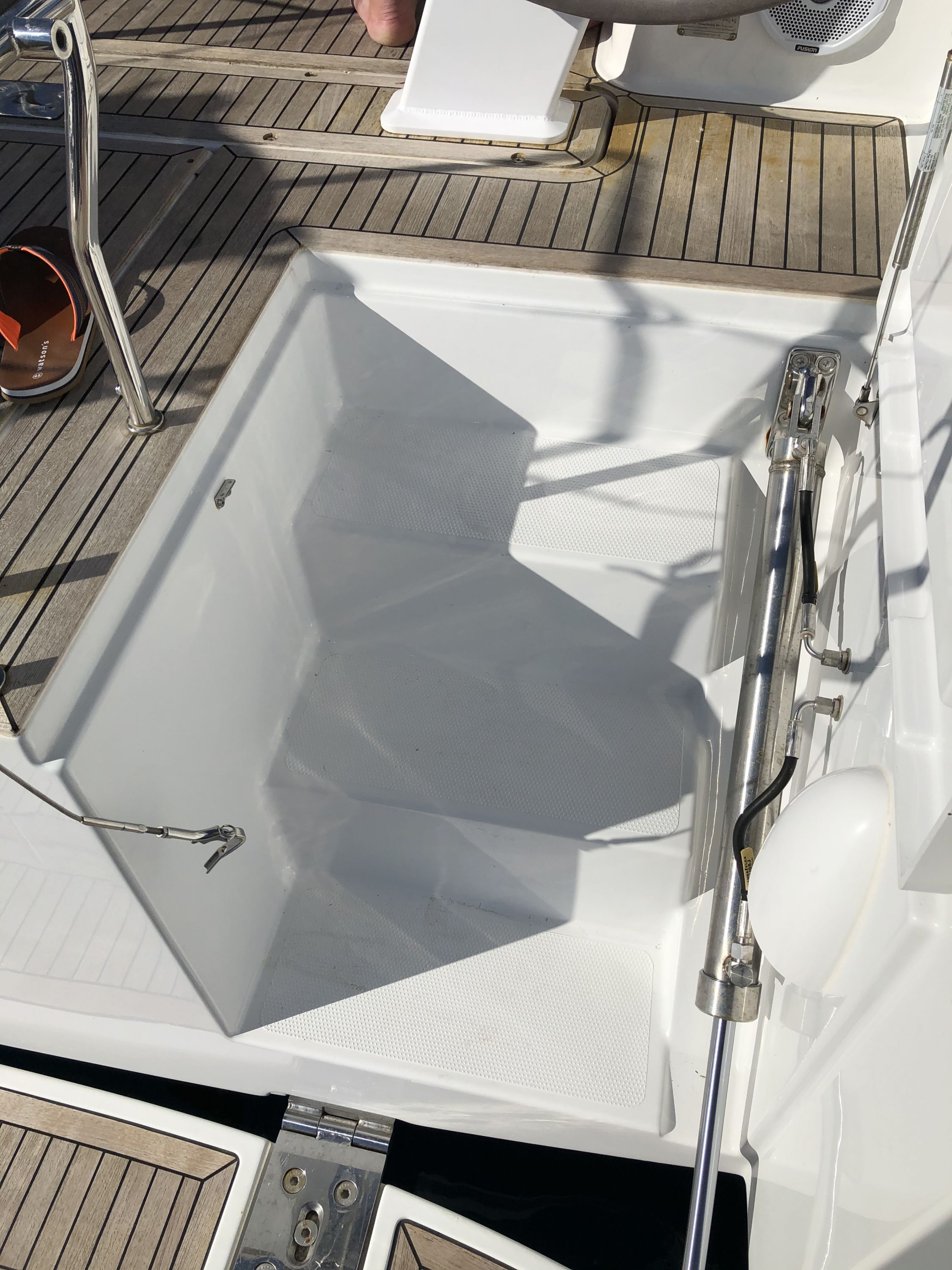 | Outside | Badeplattform, Biminitop, Cockpitdusche, Cockpitlautsprecher, Cockpittisch, elektr. Ankerwinsch, elektr. Großwinsch, Sprayhood, Teak im Cockpit |