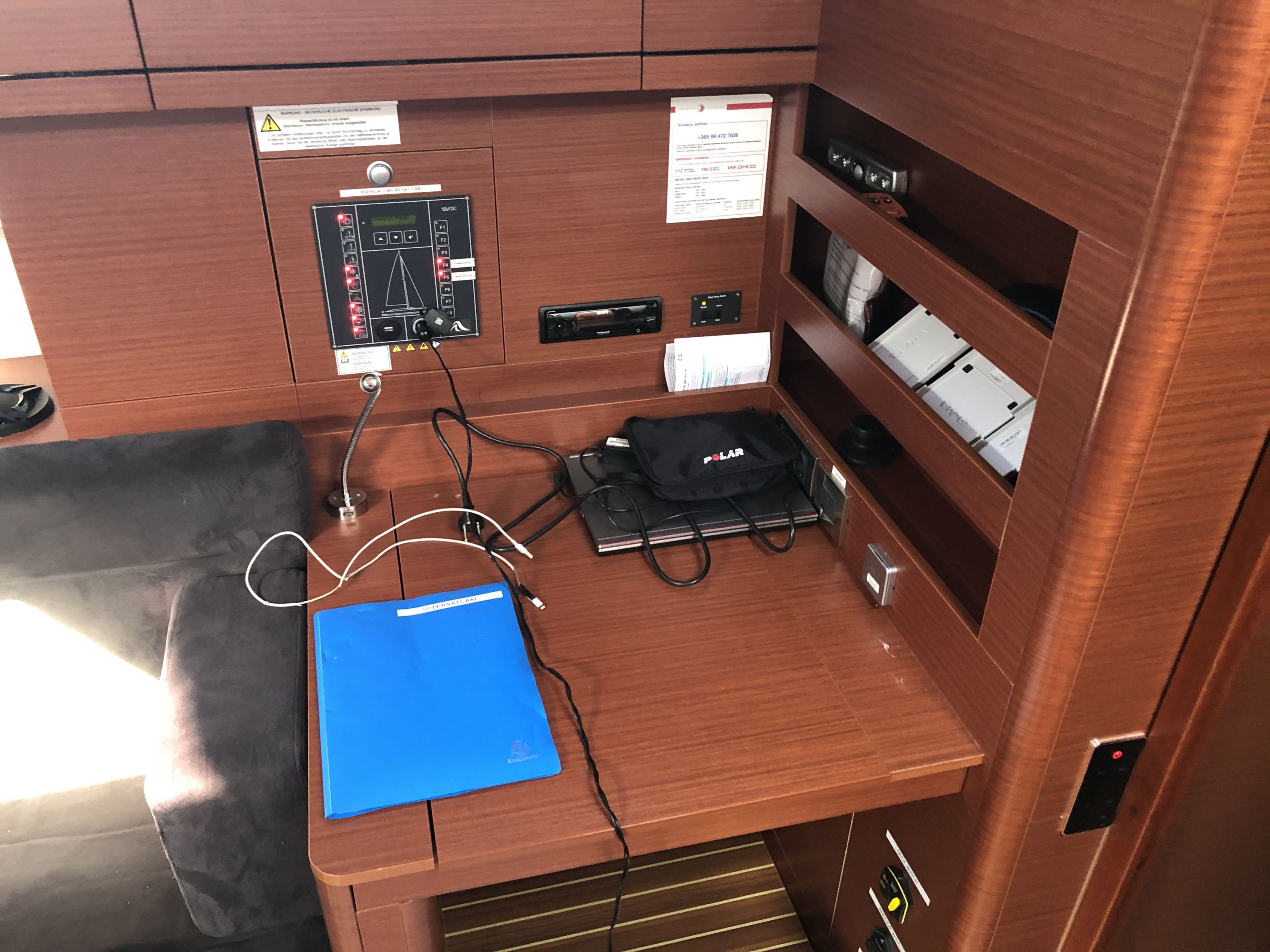 | Navigation | GPS mit Kartenplotter im Cockpit, Hafenhandbücher, Seekarten, Tridata (Log, Echolot, Windm.) |