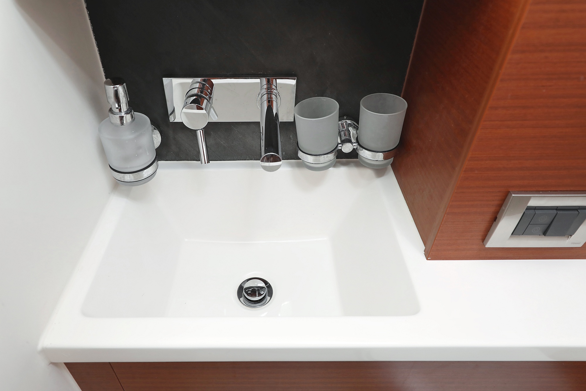 | Outside | Badeplattform, Biminitop, Cockpitdusche, Cockpitlautsprecher, Cockpittisch, elektr. Großwinsch, Sprayhood, Teak im Cockpit |