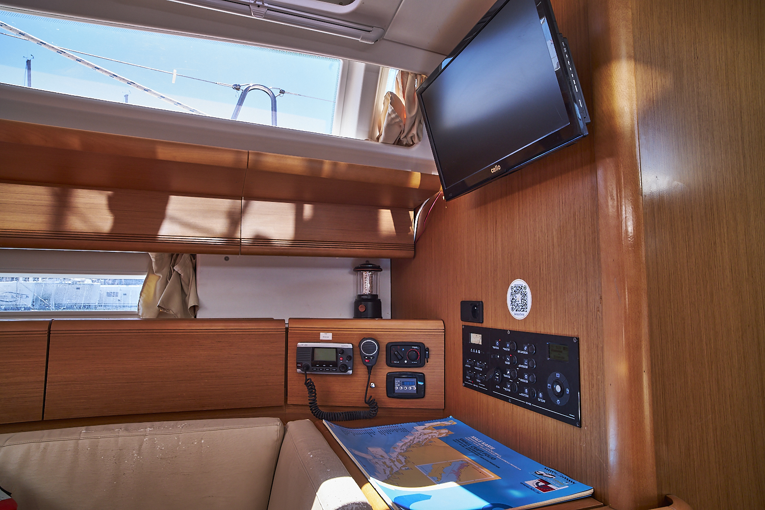 | Outside | Biminitop, Cockpitdusche, Cockpitlautsprecher, Cockpittisch, elektr. Ankerwinsch, Sprayhood, Teak im Cockpit |
