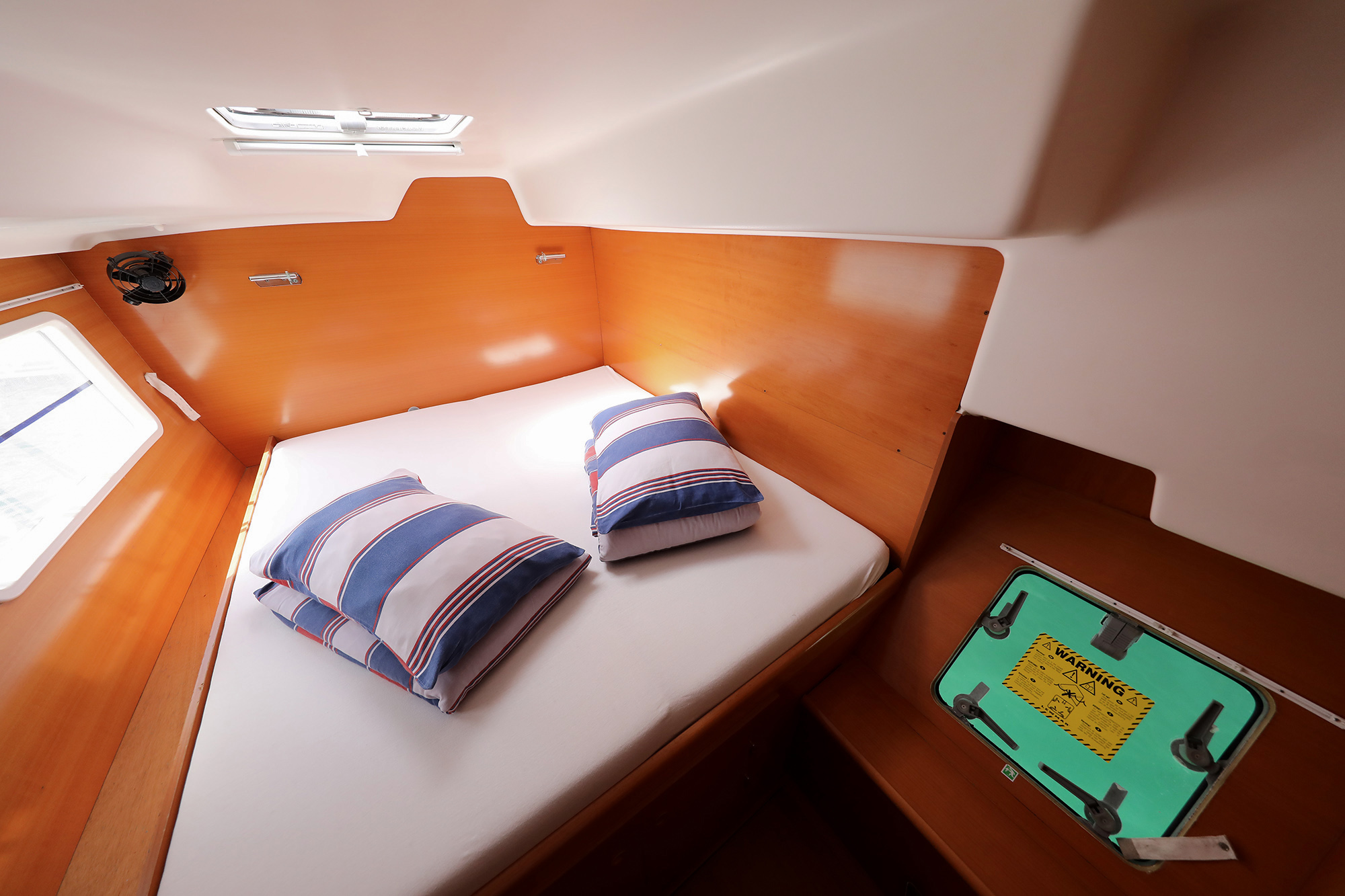 | Safety | Autopilot, Bordapotheke, Bordwerkzeug, elektr. Bilgepumpe, Feststoffschwimmwesten, Feuerlöscher, Handbilgepumpe, Leuchtboje, Lifebelts, Nebelhorn, Notsignale, Radarreflektor, Rettungsinsel, Rettungskragen, Taschenlampe, UKW-Funk, Zweitanker |