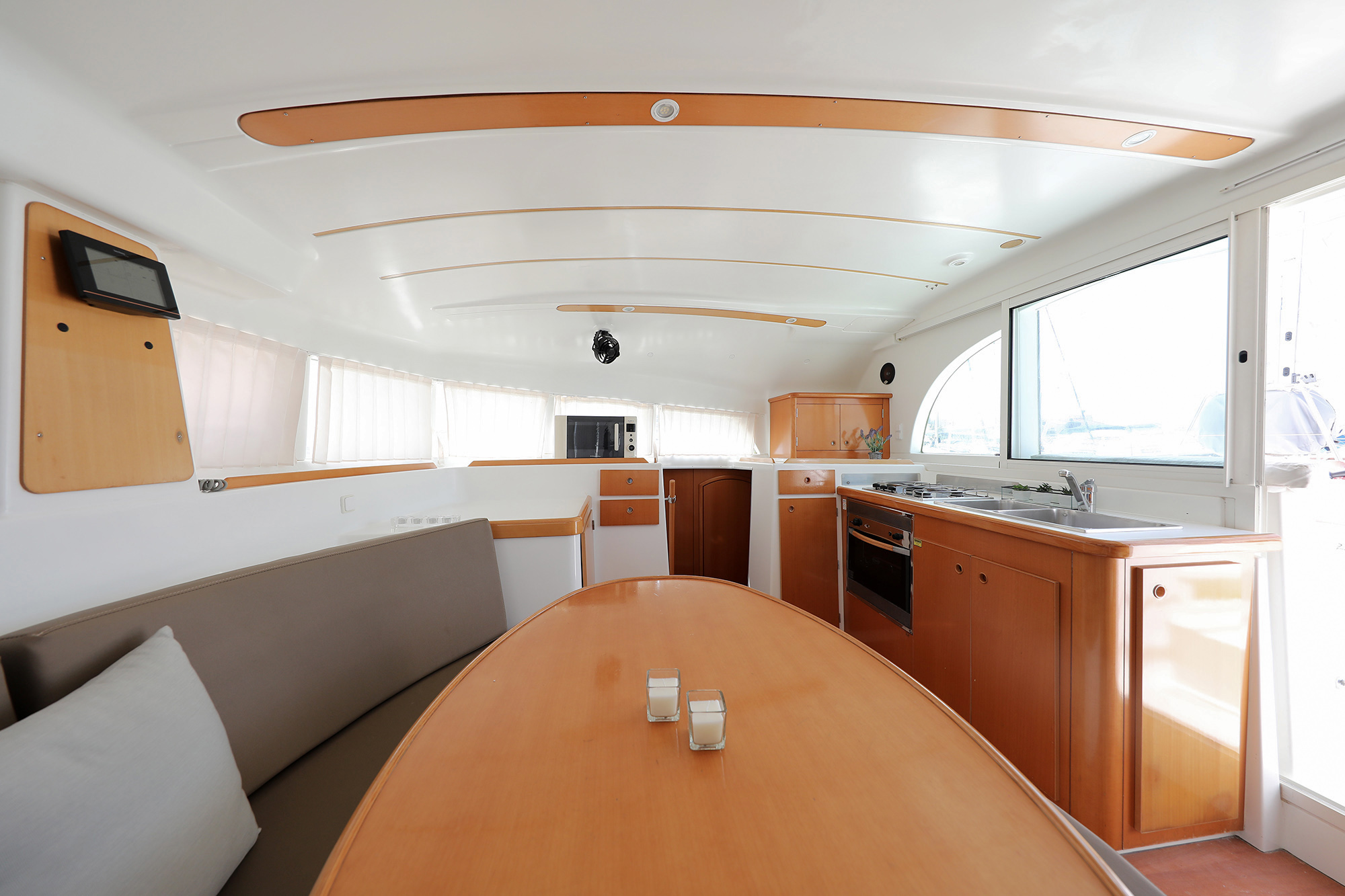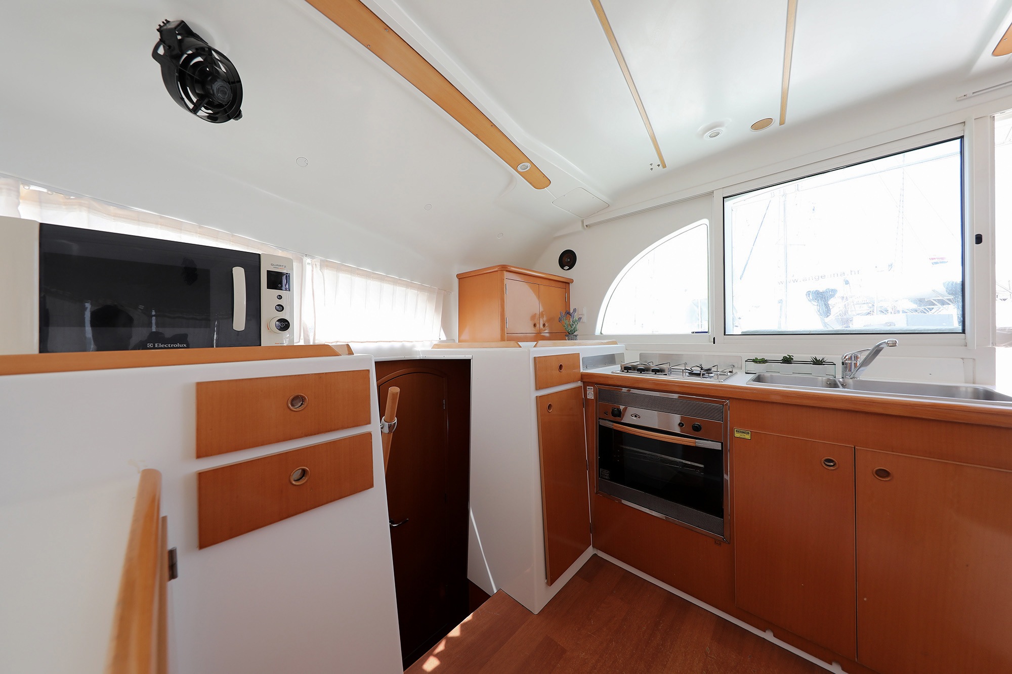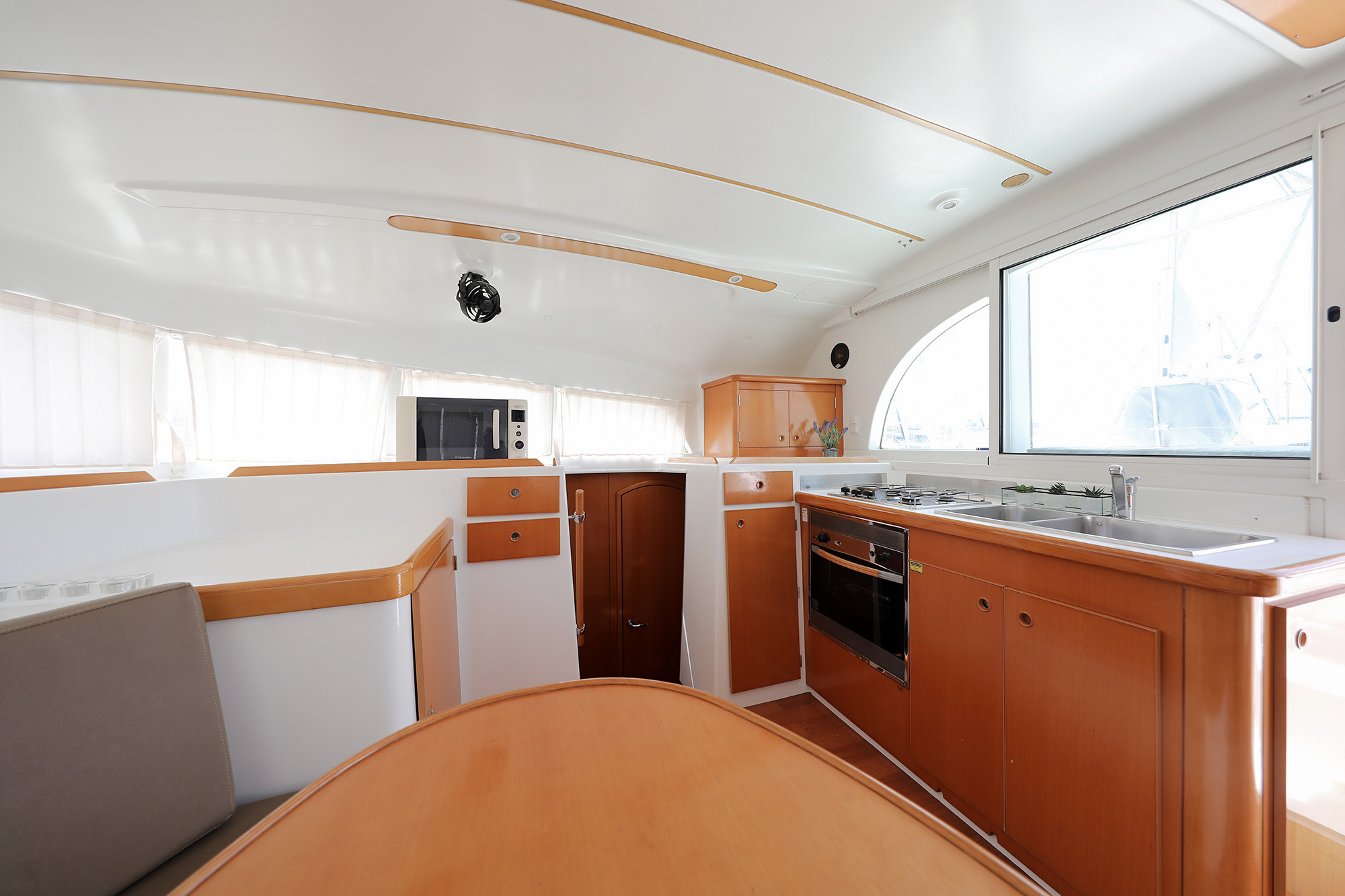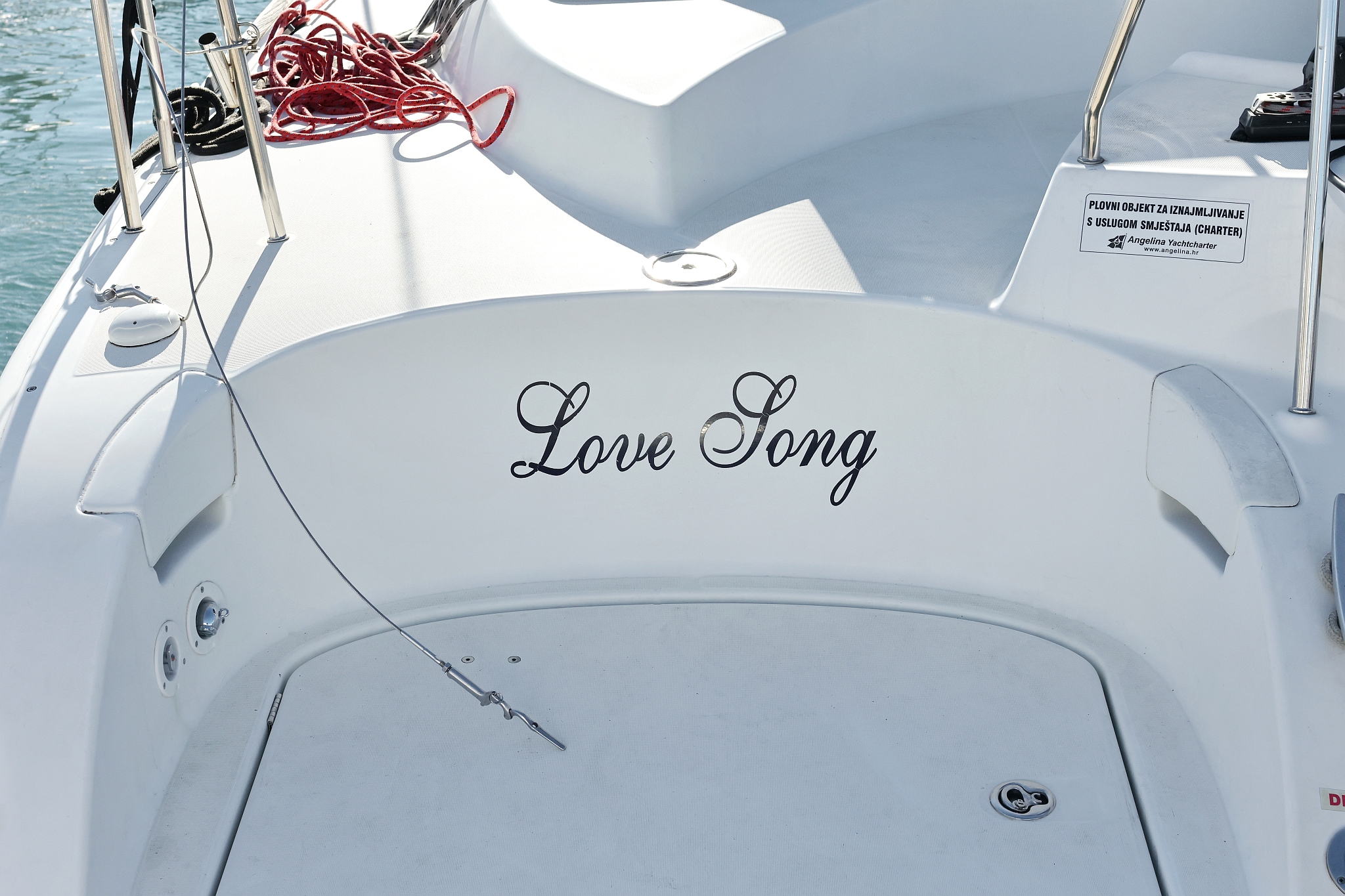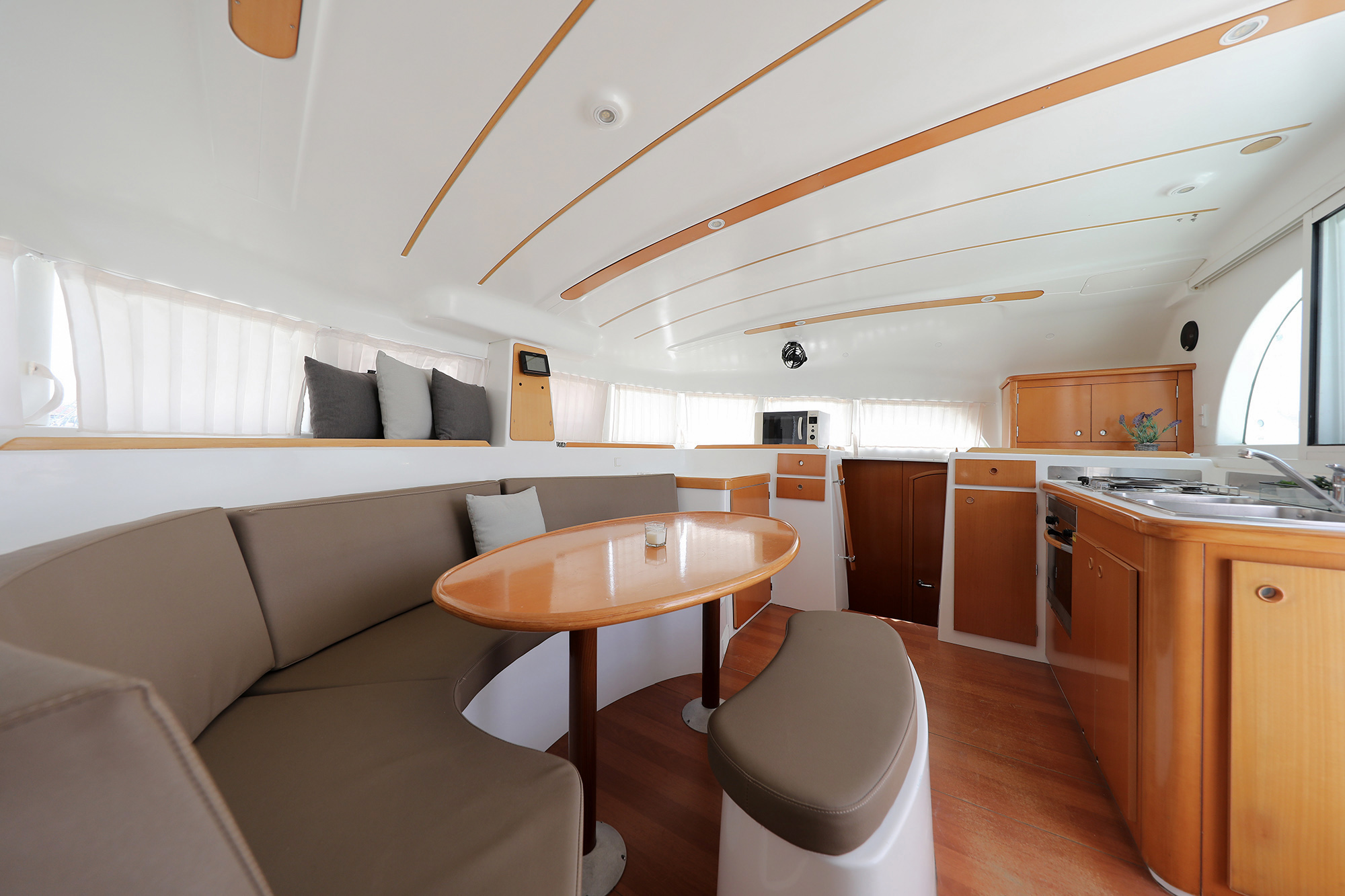 | Outside | 220 V-Landanschluss, Biminitop, Bootshaken, Cockpitdusche, Cockpitlautsprecher, Cockpitpolster, Cockpittisch, Cockpittisch mit Eisbox, Delta-Anker, elektr. Ankerwinsch, Faltsteuerrad, Fender, Festmacherleinen, Gangway, Wasserschlauch, Winschen |