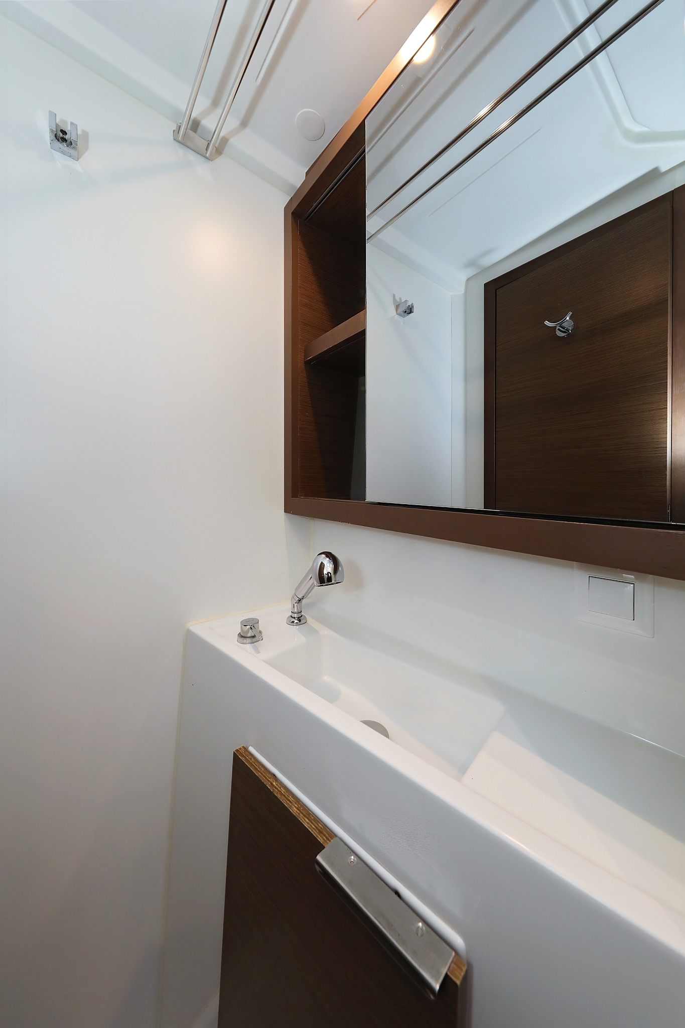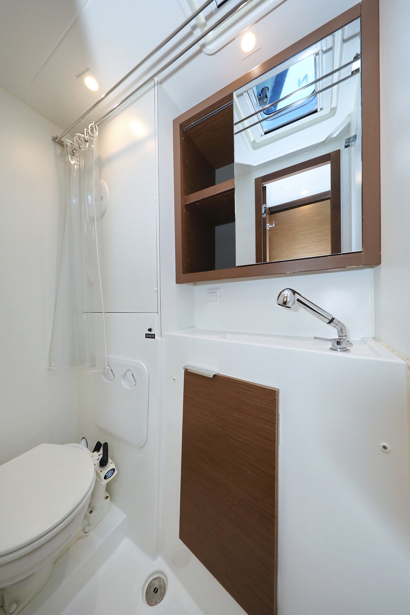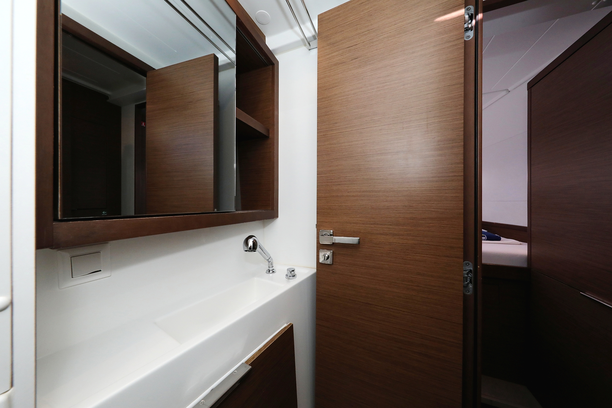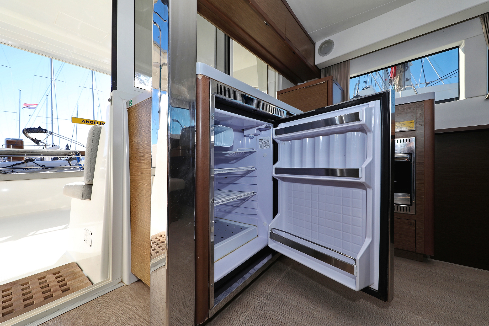 | Outside | Badeleiter, Biminitop, Bootshaken, Cockpitdusche warm/kalt, Cockpitlautsprecher, Cockpitpolster, Cockpittisch, Deckpolster, Delta-Anker, elektr. Ankerwinsch, Fender, Festmacherleinen, Gangway, Solaranlage, Sonnendeck, Wasserschlauch, Winschen |