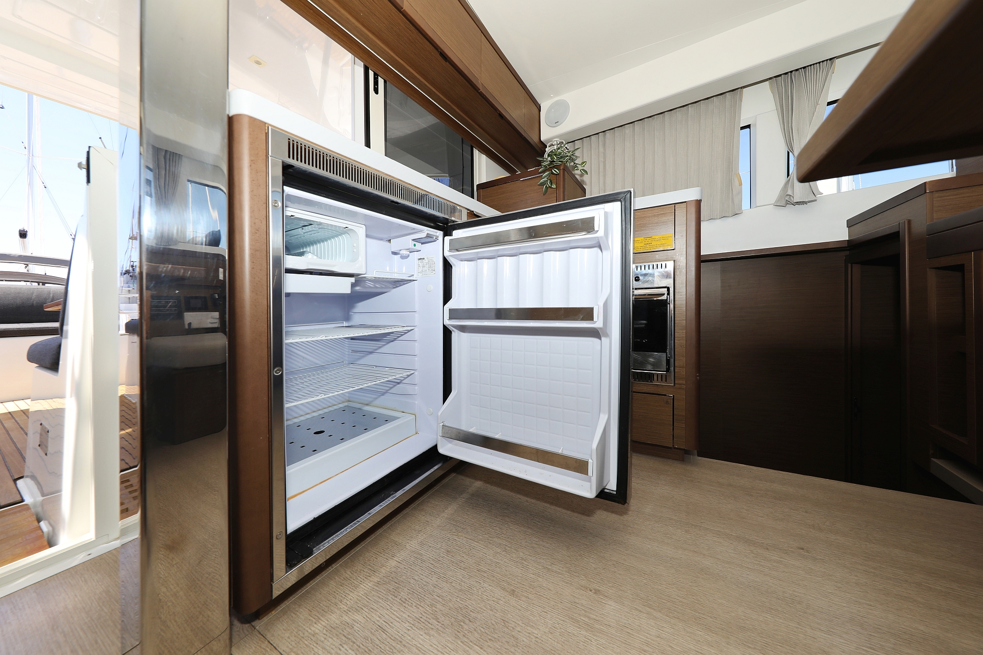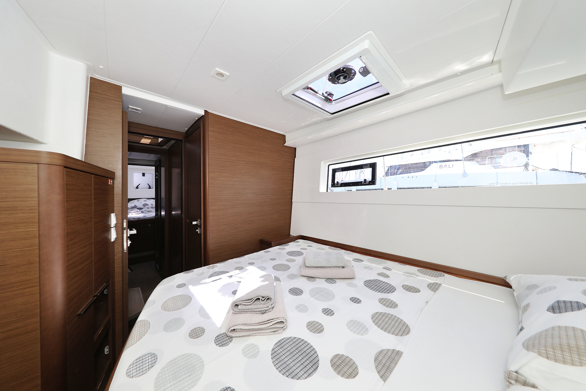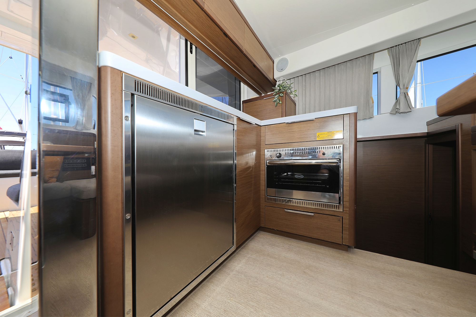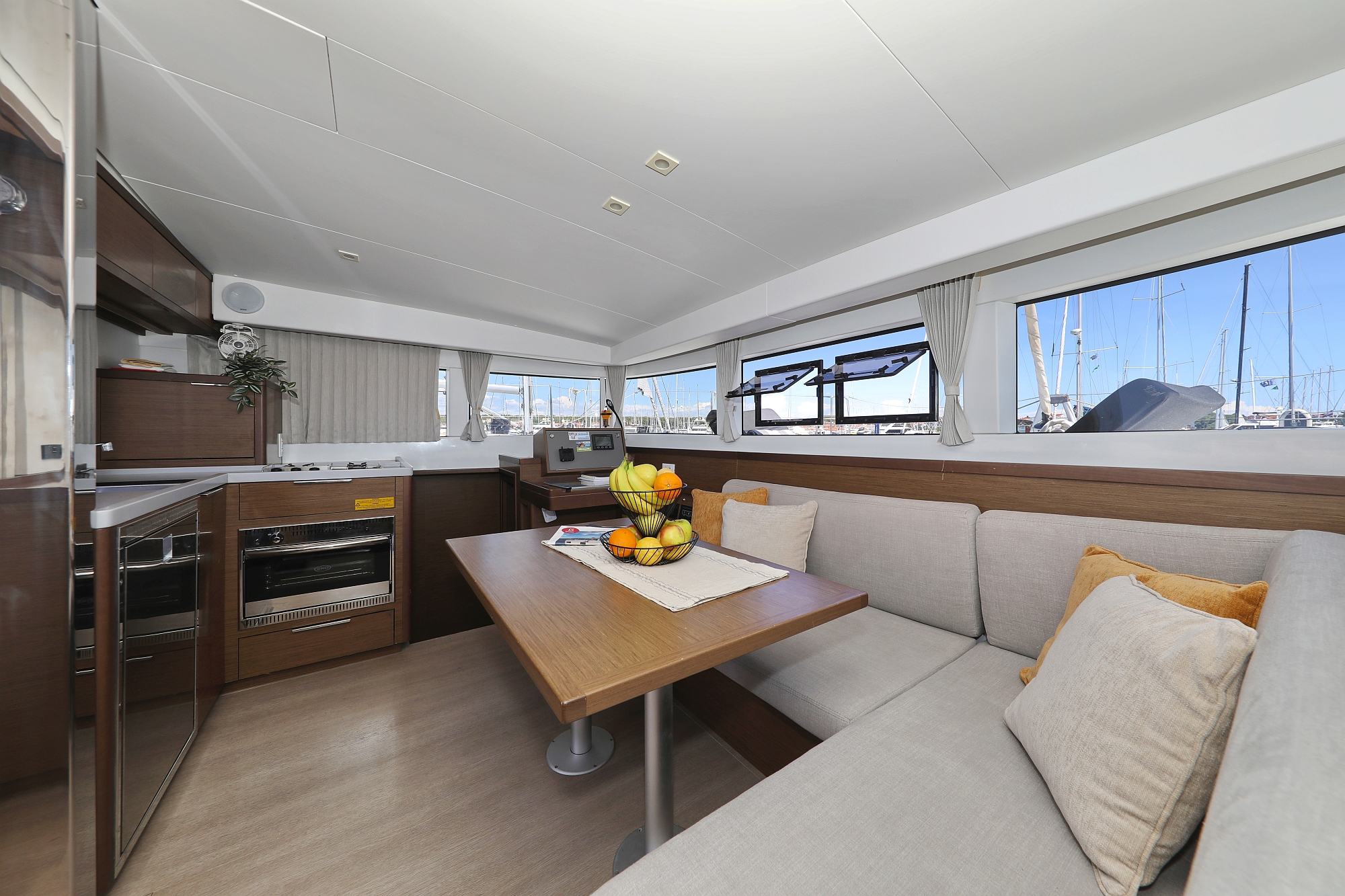 | Inside | 12V/220V-Steckdosen, Borduhr, Gasherd, Inverter 12V/220V, Kühlschrank, Ladegerät, Pantryausstattung, Radio mit MP3 , Salontisch absenkbar, Ventilatoren in Salon und Kabinen, Warmwasser, WC (elektr.) |