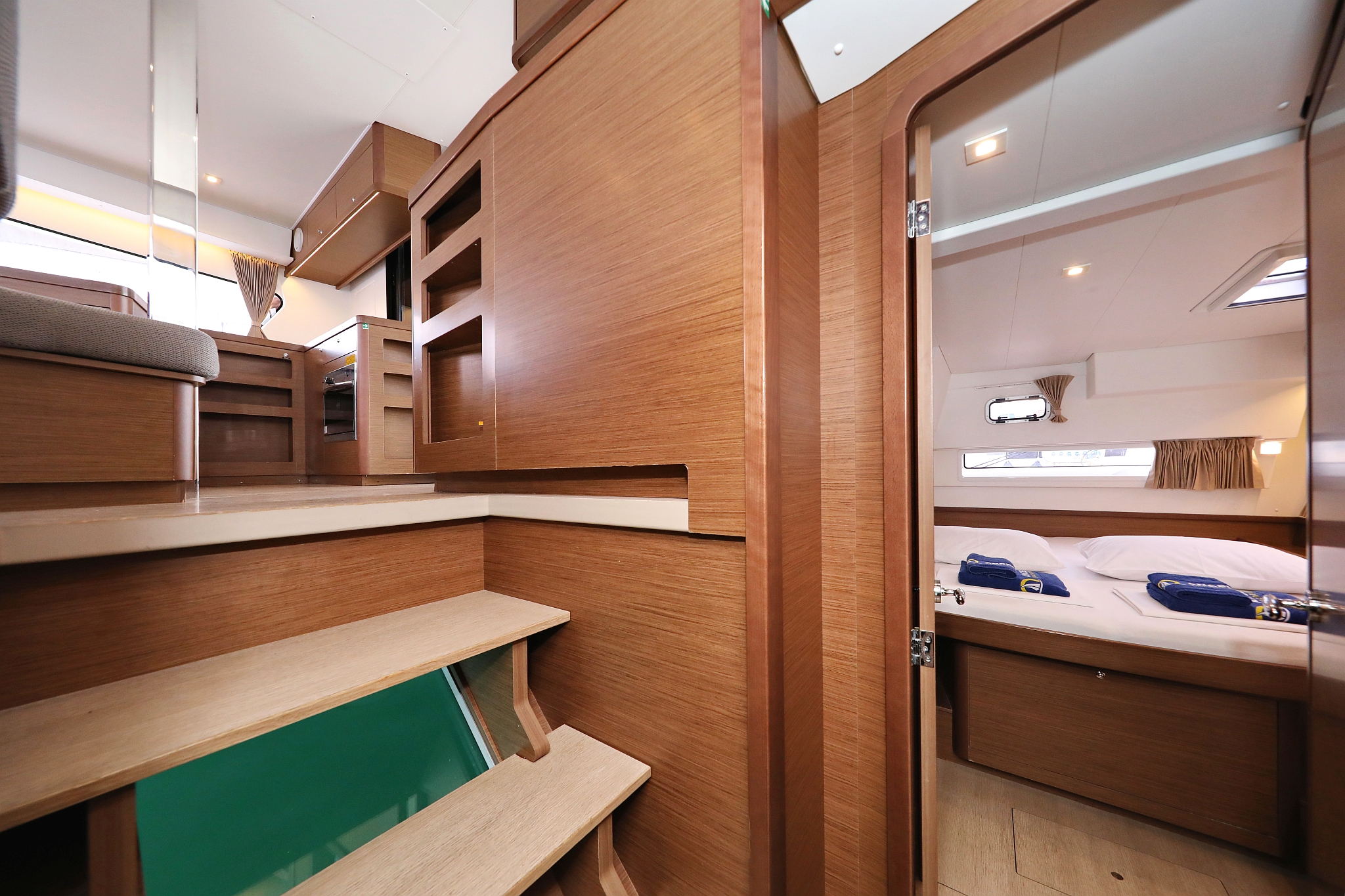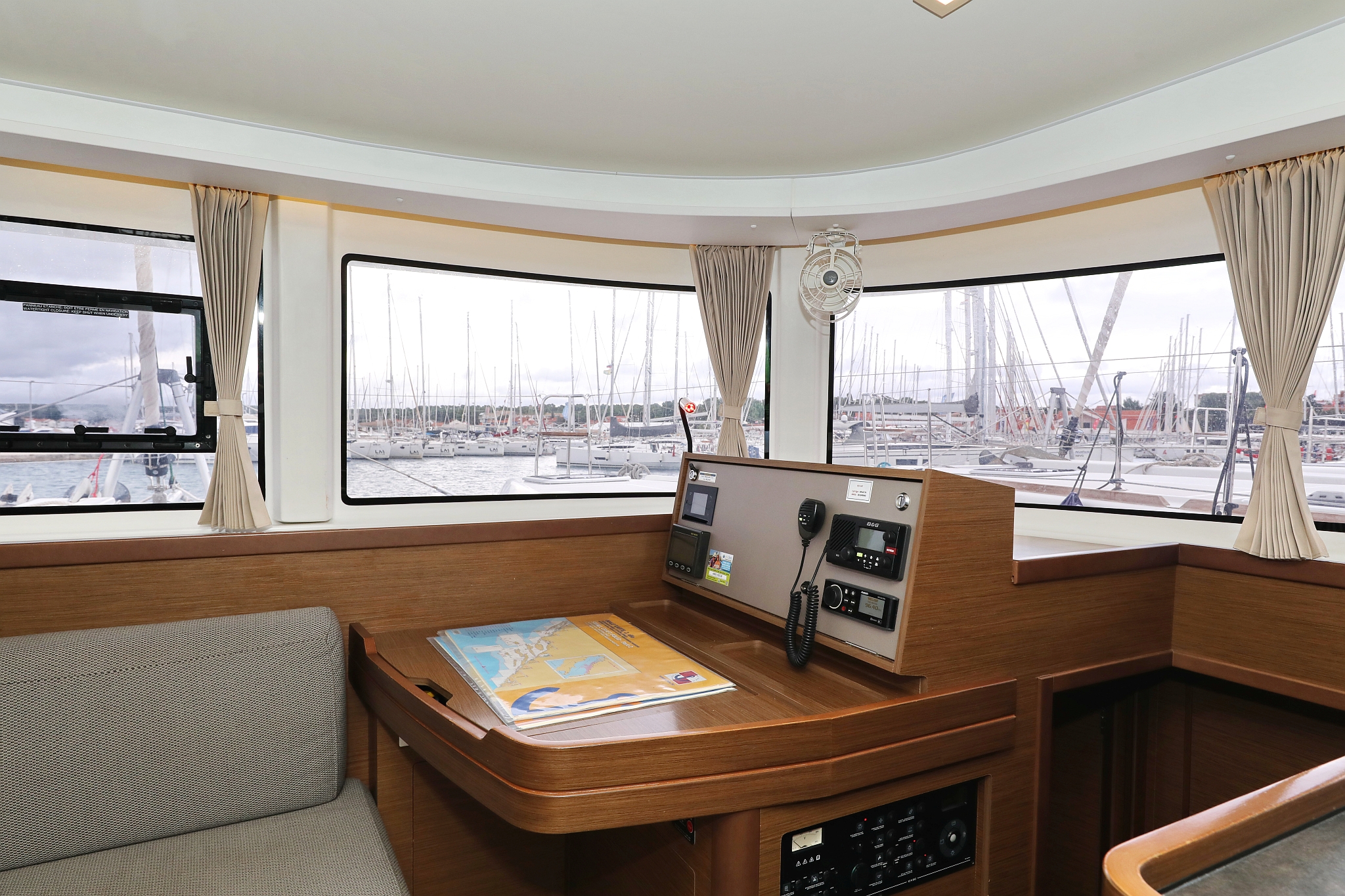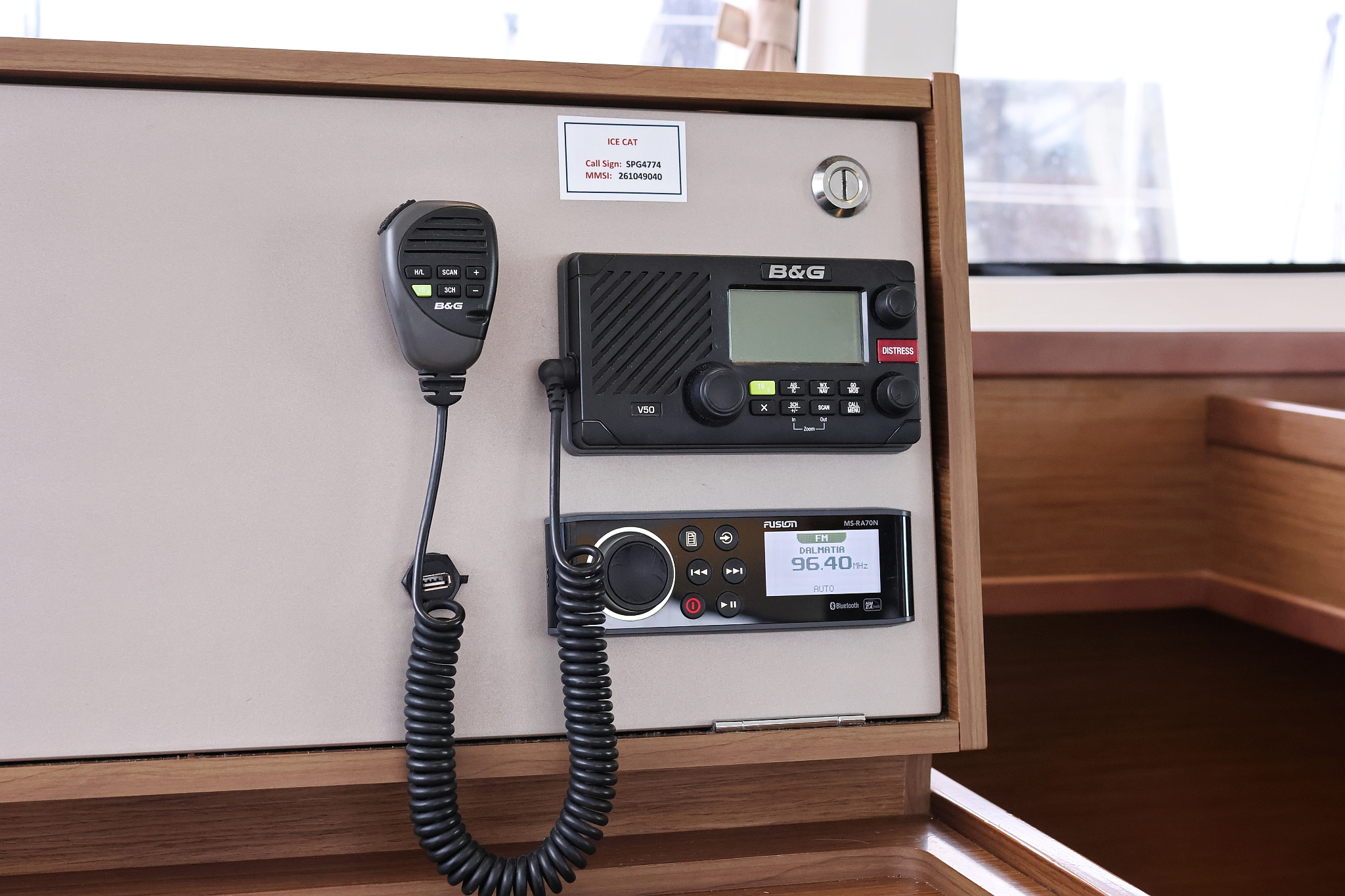 220V Steckdosen, Borduhr, Fäkalientank, FUSION Sound System, Gasherd mit Backofen, Gefrierschrank, Inverter 12V/220V, Kühlschrank, Ladegerät, Lautsprecher im Salon, Mokkakanne, Pantryausstattung, Spülbecken, Ventilatoren in Salon und Kabinen, Warmwasser, Wasserkocher, WC (elektr.) |
