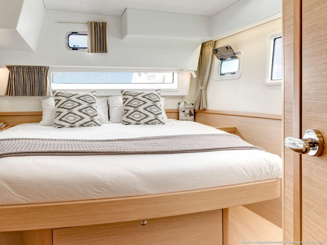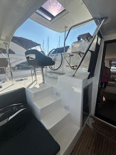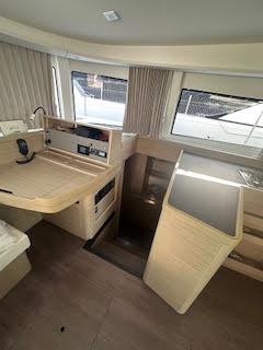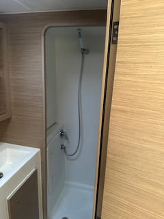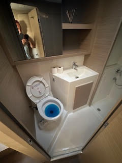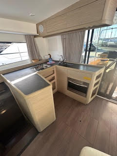 | Inside | 220V Steckdosen, Backofen, Borduhr, Fäkalientank, Gasherd, Heizlüfter, Heizung, Inverter 12V/220V, Kaffeemaschine, Kühlschrank, LED-Innenleuchten, Pantryausstattung, Radio mit CD und AUX-Eingang, Safe für Wertsachen, Salontisch absenkbar, TV, USB Steckdosen in den Kabinen, Ventilatoren in Salon und Kabinen, Warmwasser |