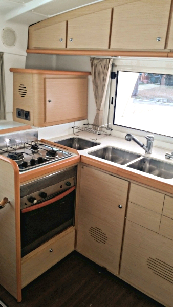 | Inside | Backofen, Gasherd, Gefrierschrank, Generator, Heizung, Inverter 12V/220V, Klimaanlage (ohne Landstrombedarf), Kühlschrank, Ladegerät, Pantryausstattung, Radio mit CD und AUX-Eingang, Warmwasser |