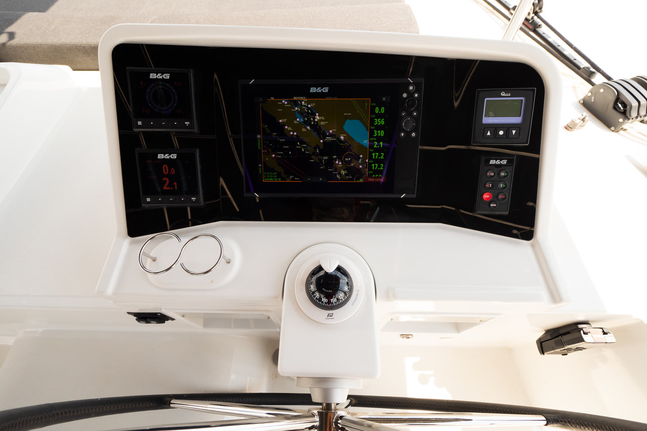 | Outside | 220 V-Landanschluss, Badeleiter, Biminitop, Cockpitdusche, Cockpitkühlschrank, Cockpitlautsprecher, Cockpitpolster, Cockpittisch, elektr. Ankerwinsch, elektr. Winsch, Fernsteuerung für elektr. Ankerwinsch |