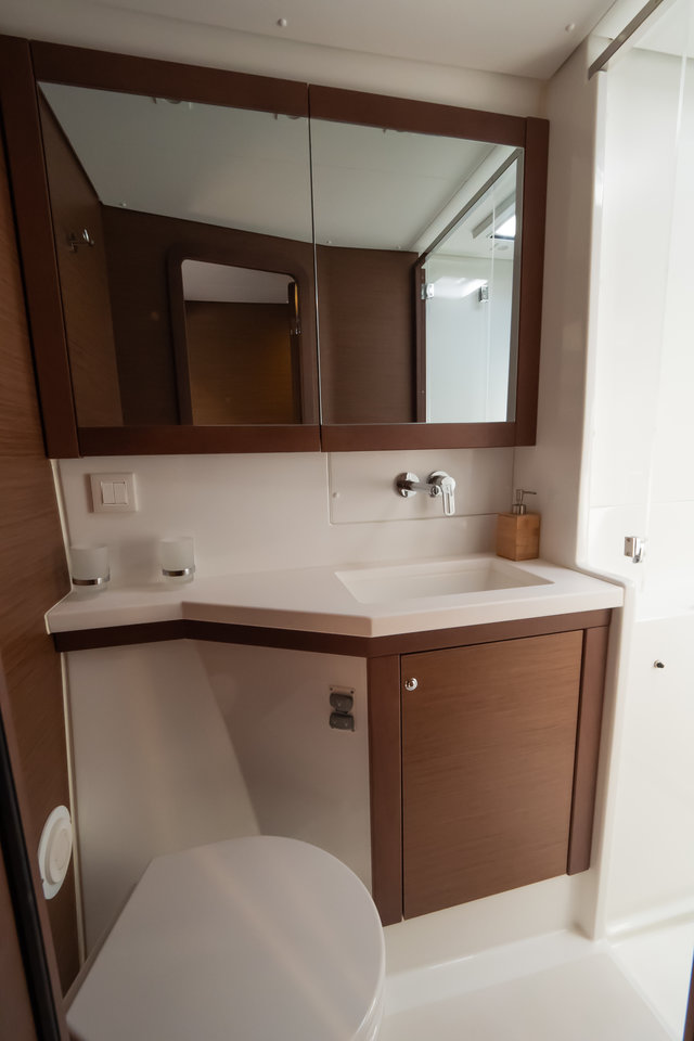 | Inside | Eiswürfelmaschine, Gefrierschrank, Generator, Geschirrspüler, Heizung, Klimaanlage (ohne Landstrombedarf), Kühlschrank, Ladegerät, Lautsprecher im Salon, LCD Fernseher, Mikrowelle, Radio mit CD, AUX und USB, Salontisch absenkbar, Ventilatoren in Kabinen, Warmwasser, WC (elektr.) |