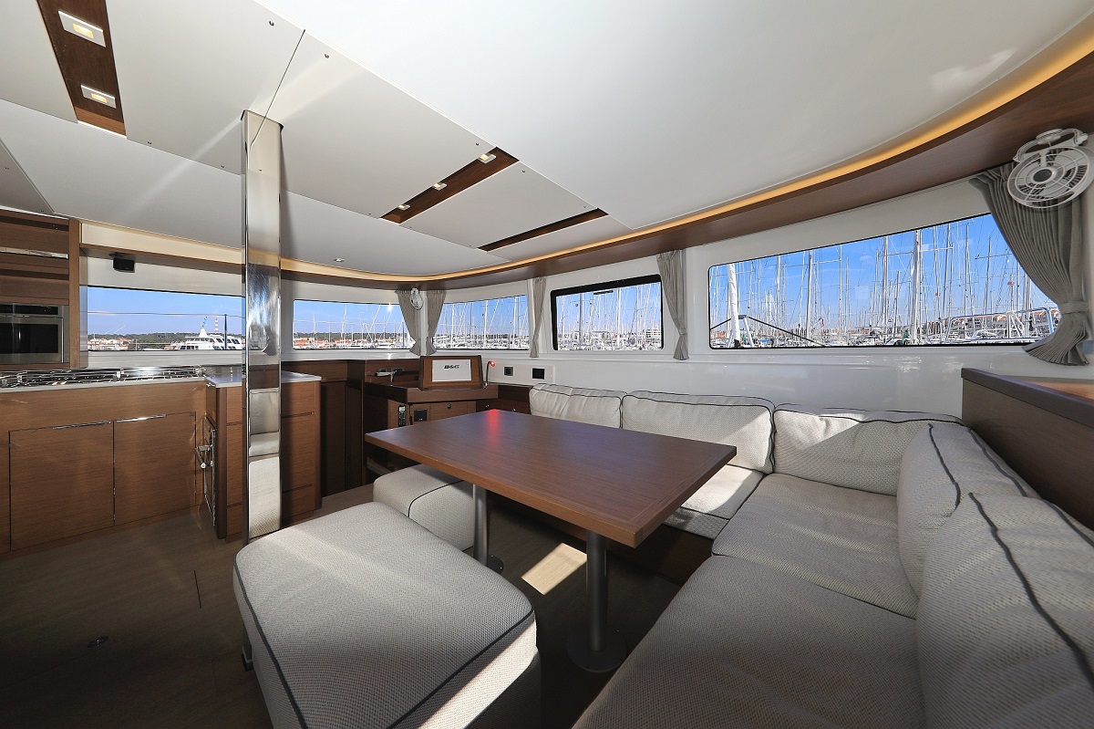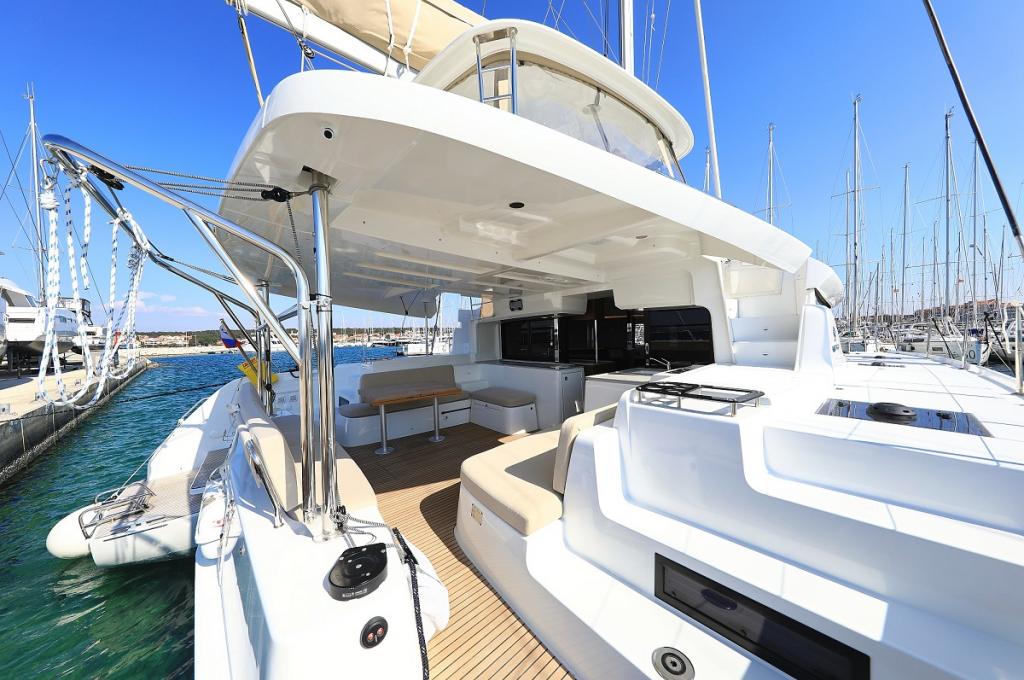 | Outside | 220 V-Landanschluss, Anker mit Kette, Cockpitkühlschrank, Cockpitlautsprecher, Cockpitleuchte, Cockpitpolster, Cockpittisch, Deckbeleuchtung, Deckpolster, elektr. Ankerwinsch, elektr. Winsch, Fender, Festmacherleinen, Teak im Cockpit, Wantenschneider |