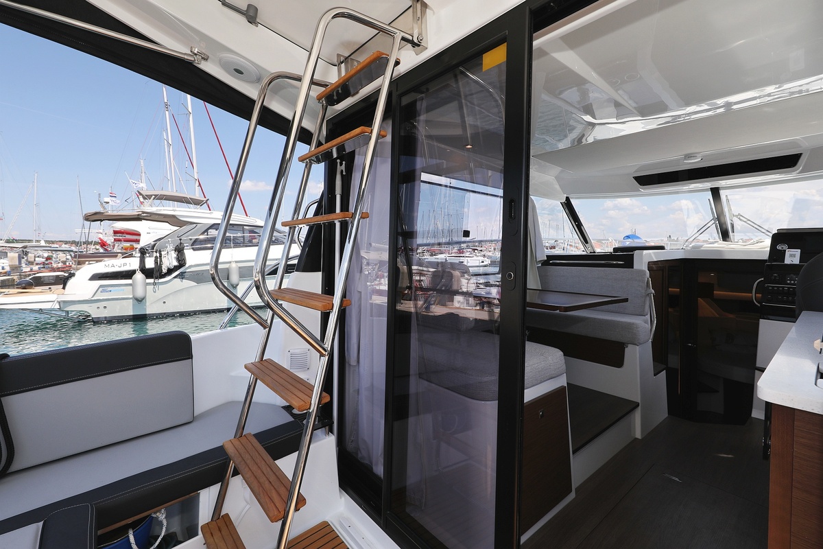 | Outside | 220 V-Landanschluss, Badeplattform, Biminitop auf Flybridge, Cockpitdusche, Cockpitpolster, Cockpittisch, elektr. Ankerwinsch, Fender, Festmacherleinen, Flybridge, Polster auf Flybridge, Solaranlage, Sonnendeck, Teak auf Badeplattform, Teak im Cockpit |