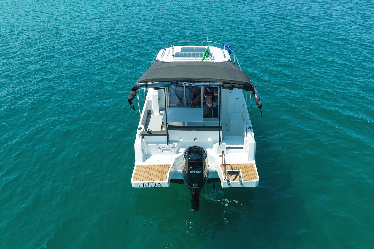 | Outside | Anker mit Kette, Badeleiter, Biminitop, Cockpitdusche, Cockpitpolster, Cockpittisch, elektr. Ankerwinsch, Fender, Festmacherleinen, Solaranlage, Wantenschneider |