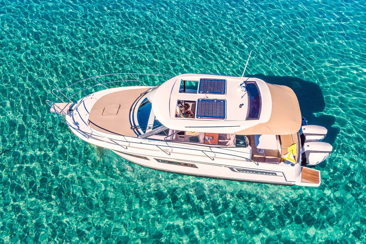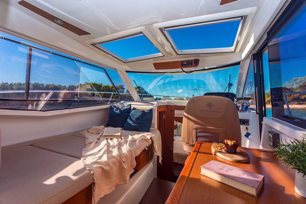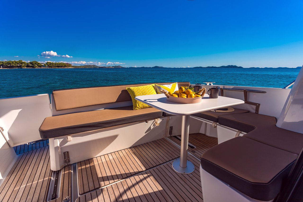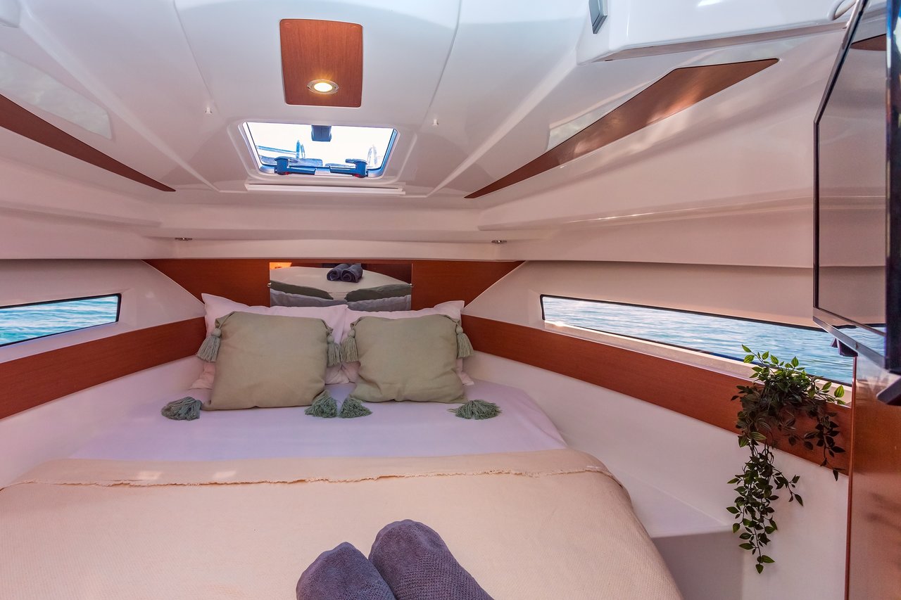 | Outside | 220 V-Landanschluss, Biminitop, Cockpitdusche, Cockpitpolster, Cockpittisch, Fender, Festmacherleinen, Solaranlage |