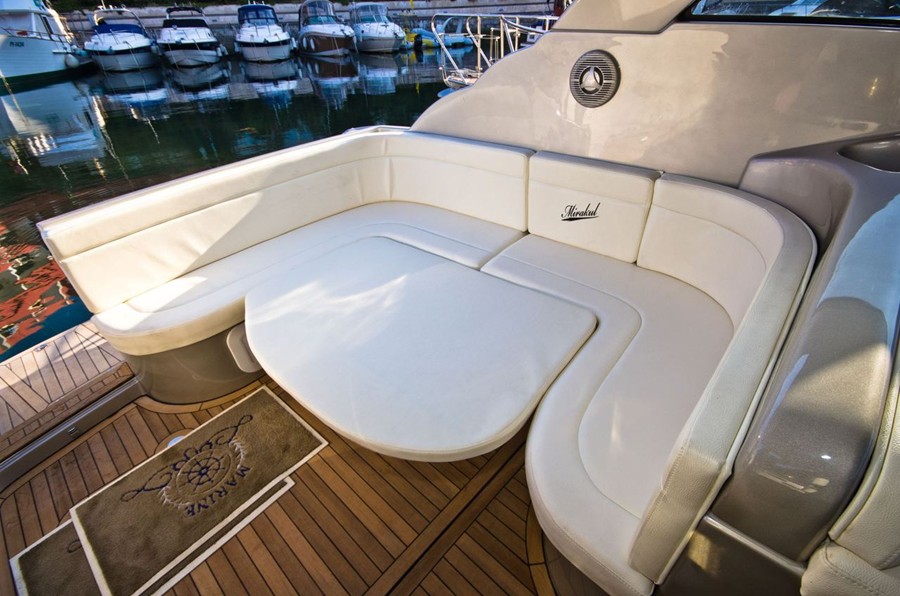 | Outside | 220 V-Landanschluss, Anker mit Kette, Badeleiter, Badeplattform, Cockpitdusche, Cockpitpolster, Cockpittisch absenkbar, elektr. Ankerwinsch, Solaranlage, Sonnendeck, Wet Bar im Cockpit |