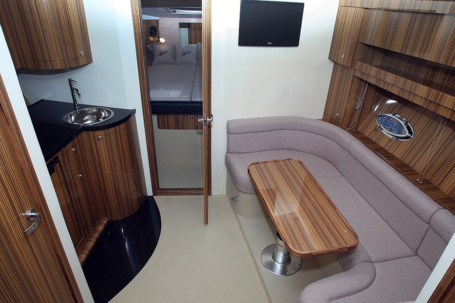 | Outside | Cockpitdusche, Cockpitkühlschrank, Cockpittisch, elektr. Ankerwinsch, Hardtop, Teakdeck, Tendergarage, Wet Bar |