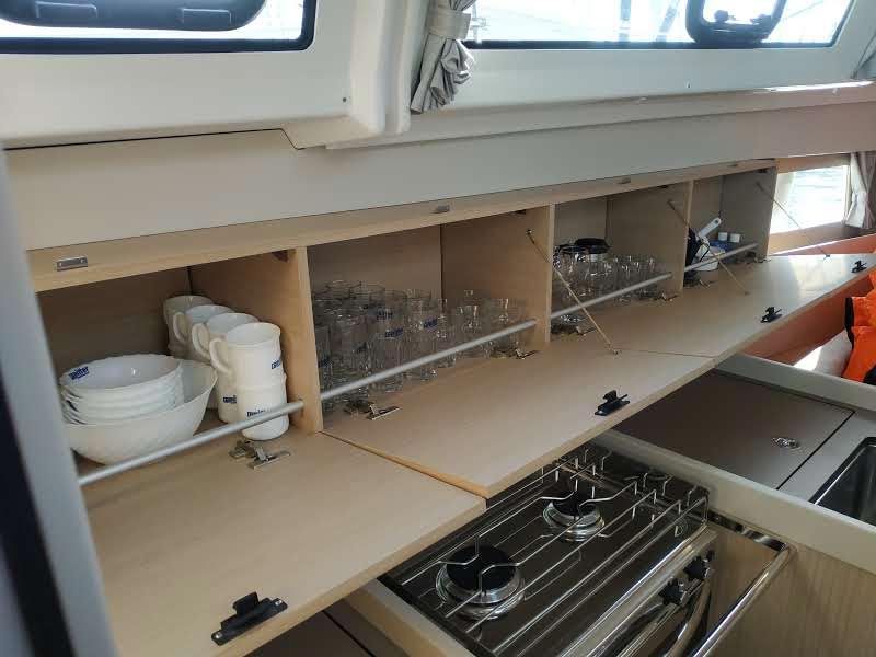 | Safety | Autopilot, Blitzboje, Bootsmannstuhl, Bordapotheke, Bordwerkzeug, Bugstrahlruder, Feststoffschwimmwesten, Feuerlöscher, Lifebelts, Nebelhorn, Notpinne, Notsignale, Radarreflektor, Reparaturset für Beiboot, Rettungsinsel, Suchscheinwerfer, Taschenlampe, UKW-Funk mit AIS, Zweitanker |