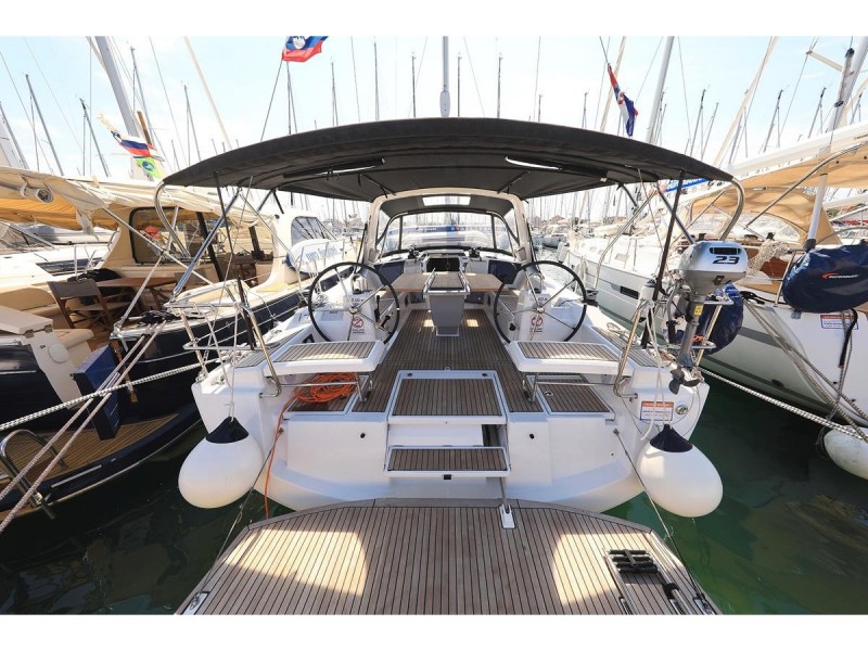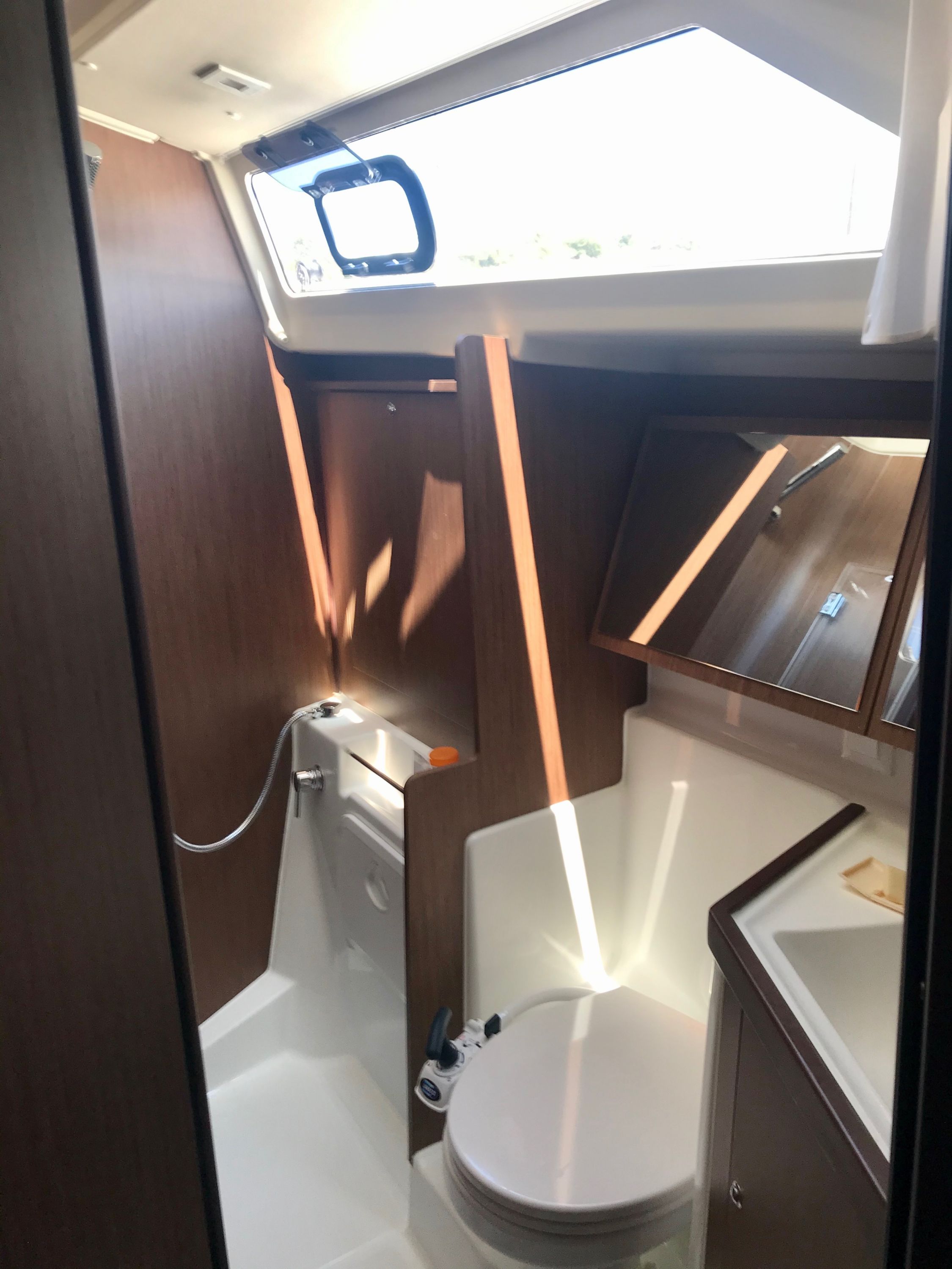 | Outside | 220 V-Landanschluss, Anker mit Kette, Badeplattform, Biminitop, Cockpitdusche, Cockpitlautsprecher, Cockpitpolster, Cockpittisch, Deckbeleuchtung, elektr. Ankerwinsch, Fender, Festmacherleinen, Sprayhood, Teak im Cockpit, Treibanker, Wantenschneider, Windex |