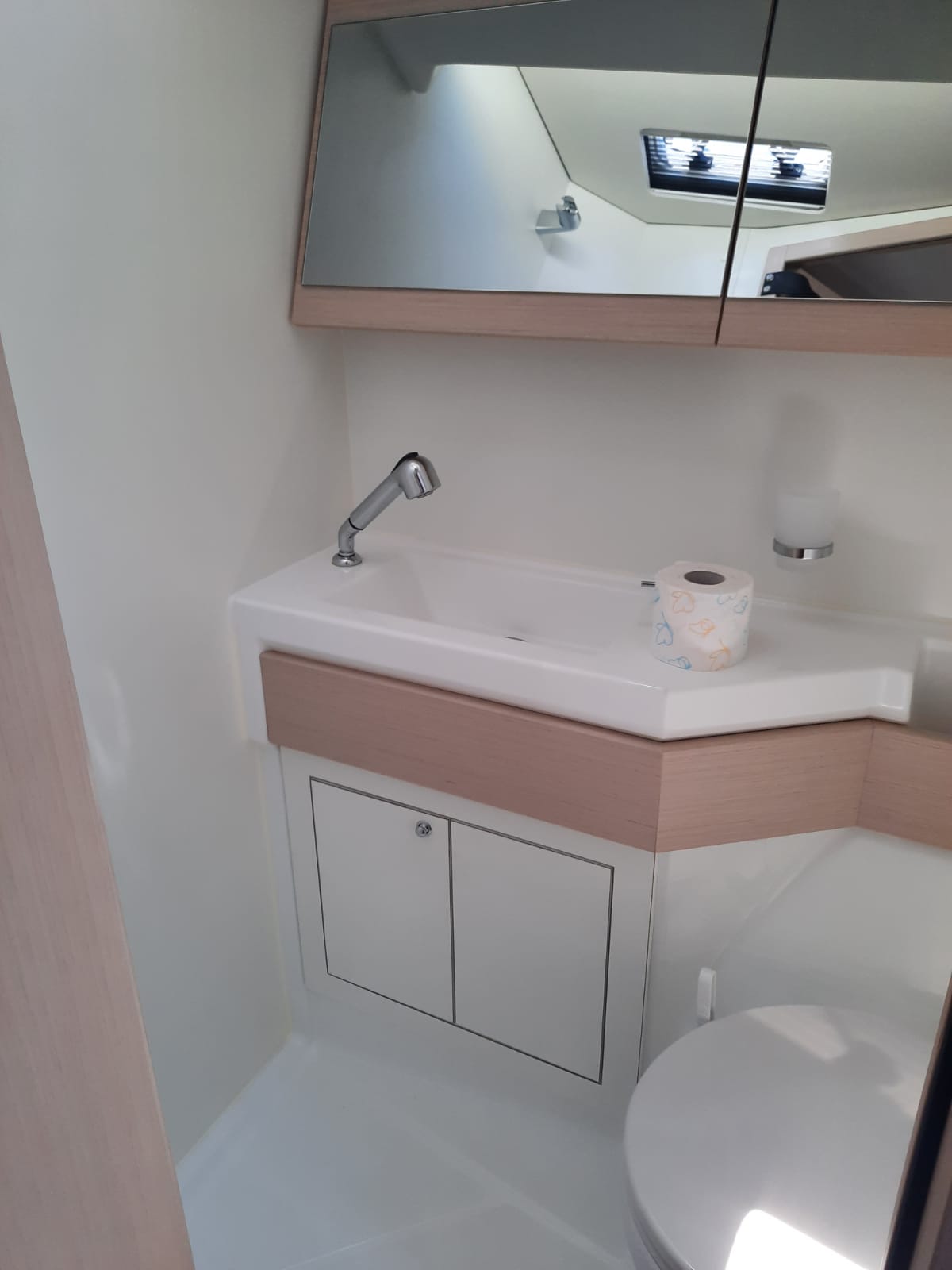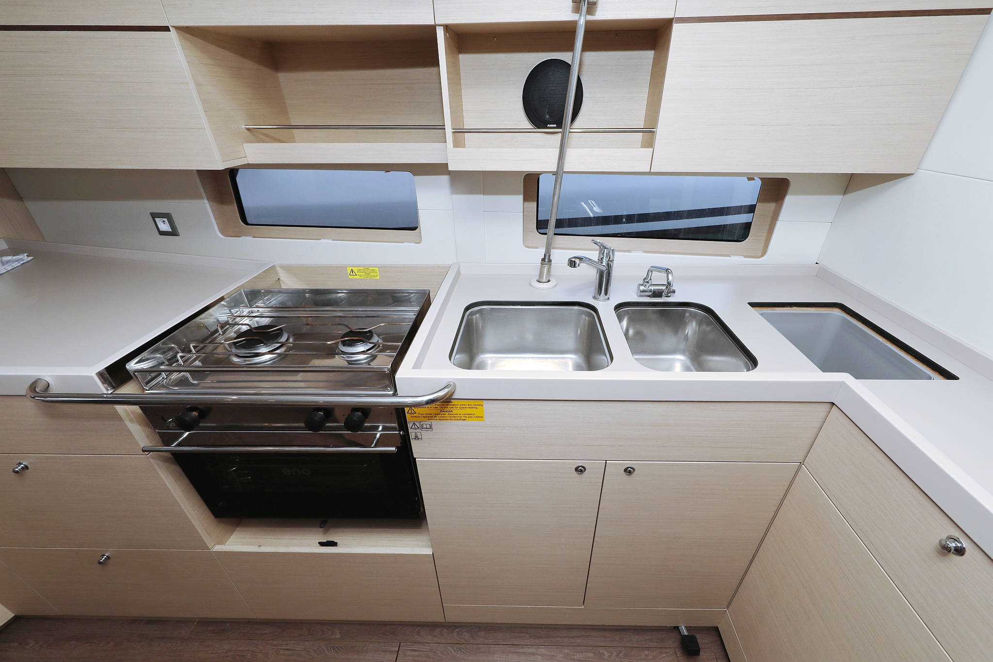 Inside 220V Steckdosen, Borduhr, Fäkalientank, Gasherd mit Backofen, Heizung, Klimaanlage (Landstrom), Kühlschrank mit Gefrierfach, Ladegerät, Landstromkabel, Mokkakanne, Moskitonetze, Pantryausstattung, Radio, Spülbecken, Ventilatoren in Kabinen, Wasserkocher, WC (elektr.)