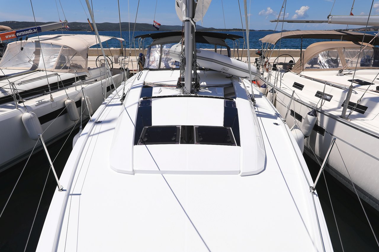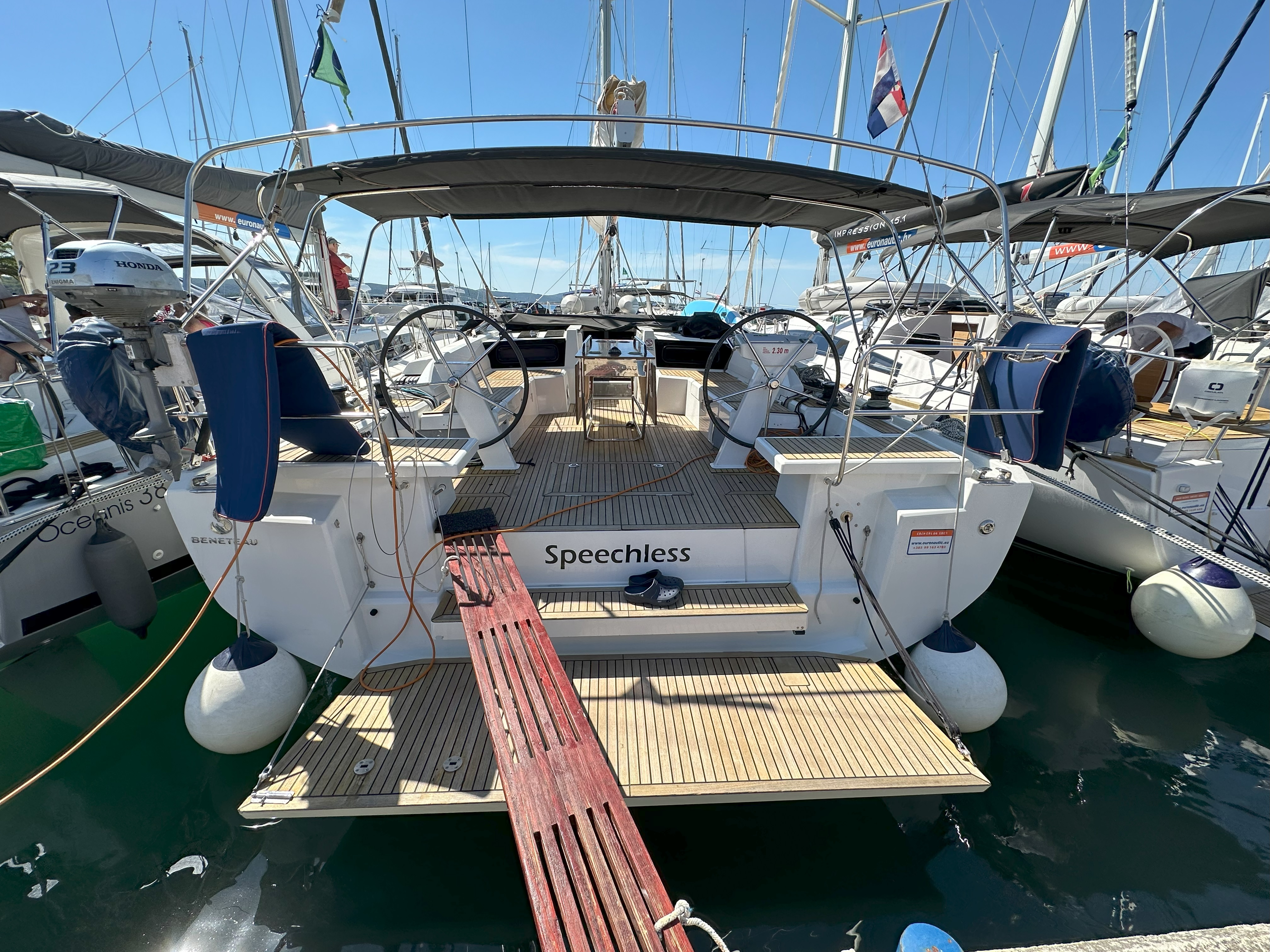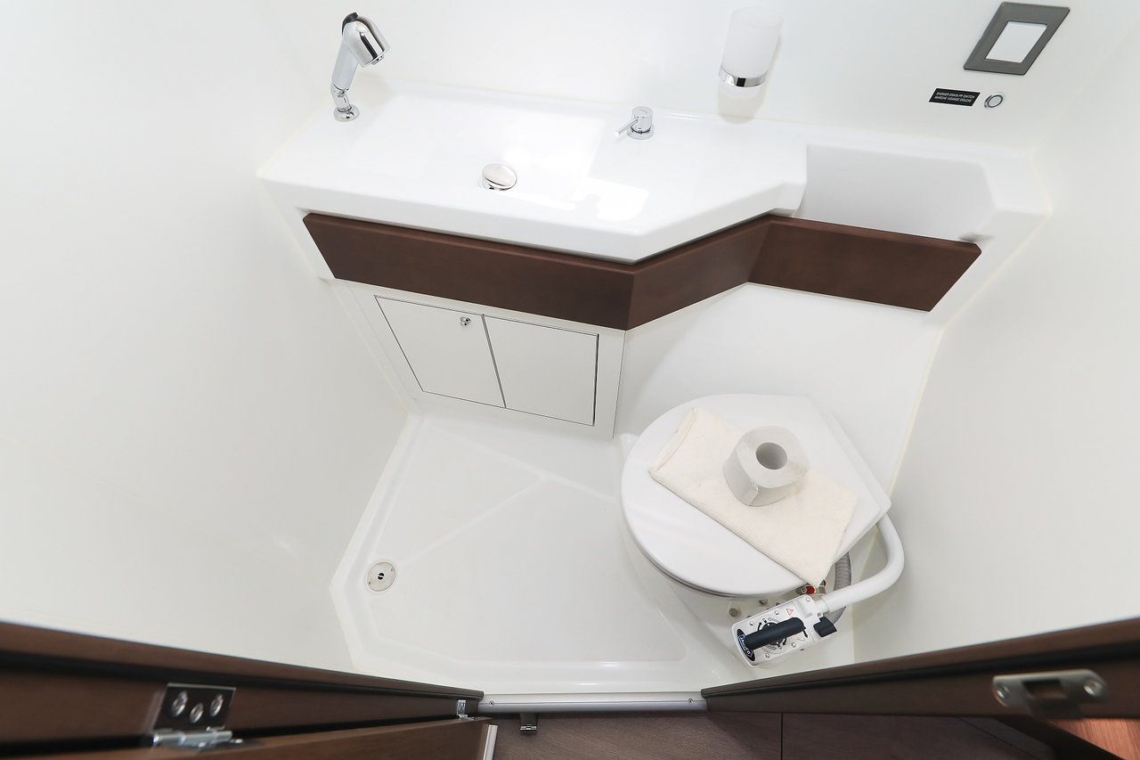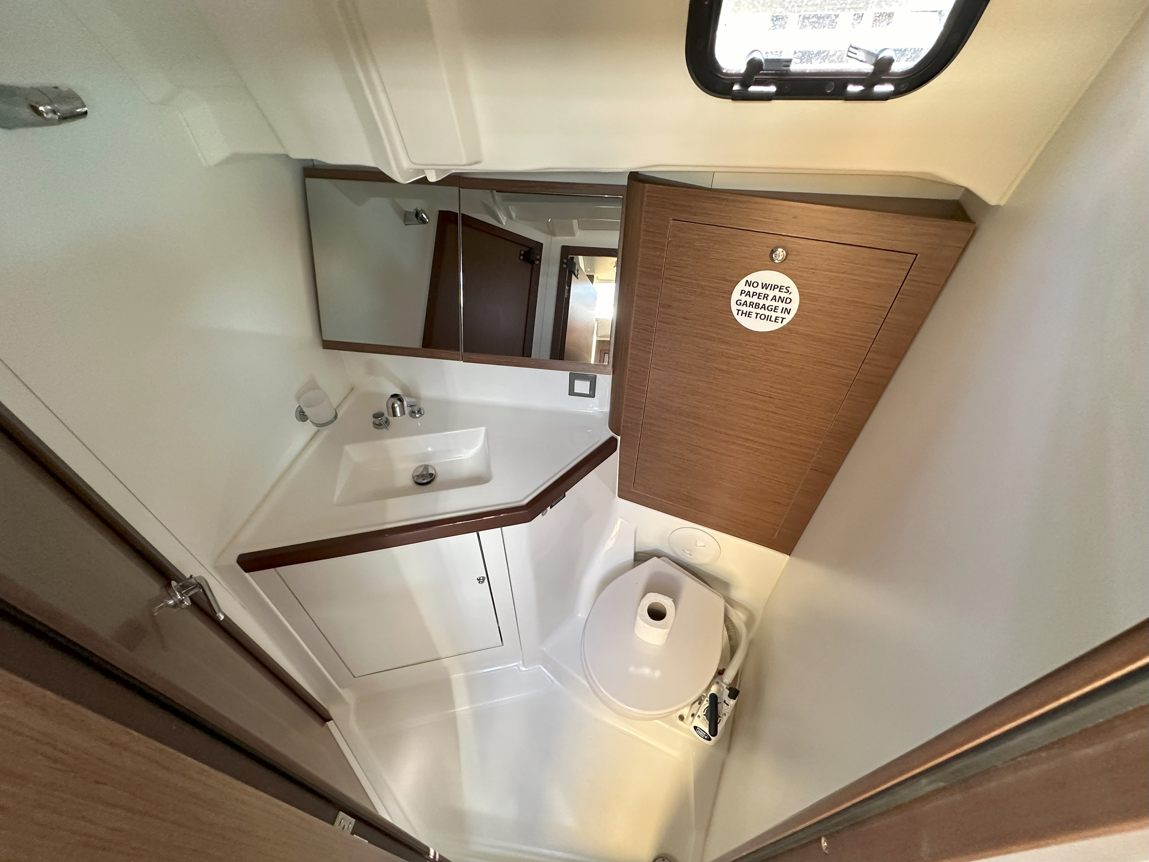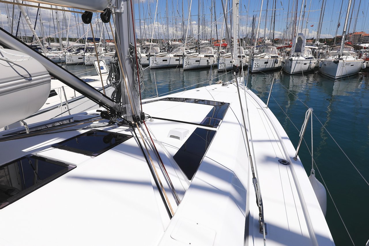 | Outside | 220 V-Landanschluss, Anker mit Kette, Badeplattform, Biminitop, Cockpitdusche, Cockpitlautsprecher, Cockpitpolster, Cockpittisch, elektr. Ankerwinsch, Faltpropeller, Fender, Festmacherleinen, Sprayhood, Teak im Cockpit, Treibanker, Wantenschneider, Windex, Winschen |