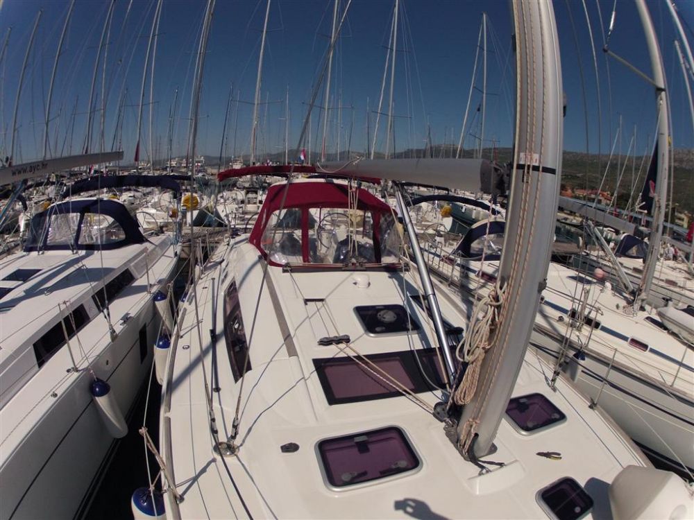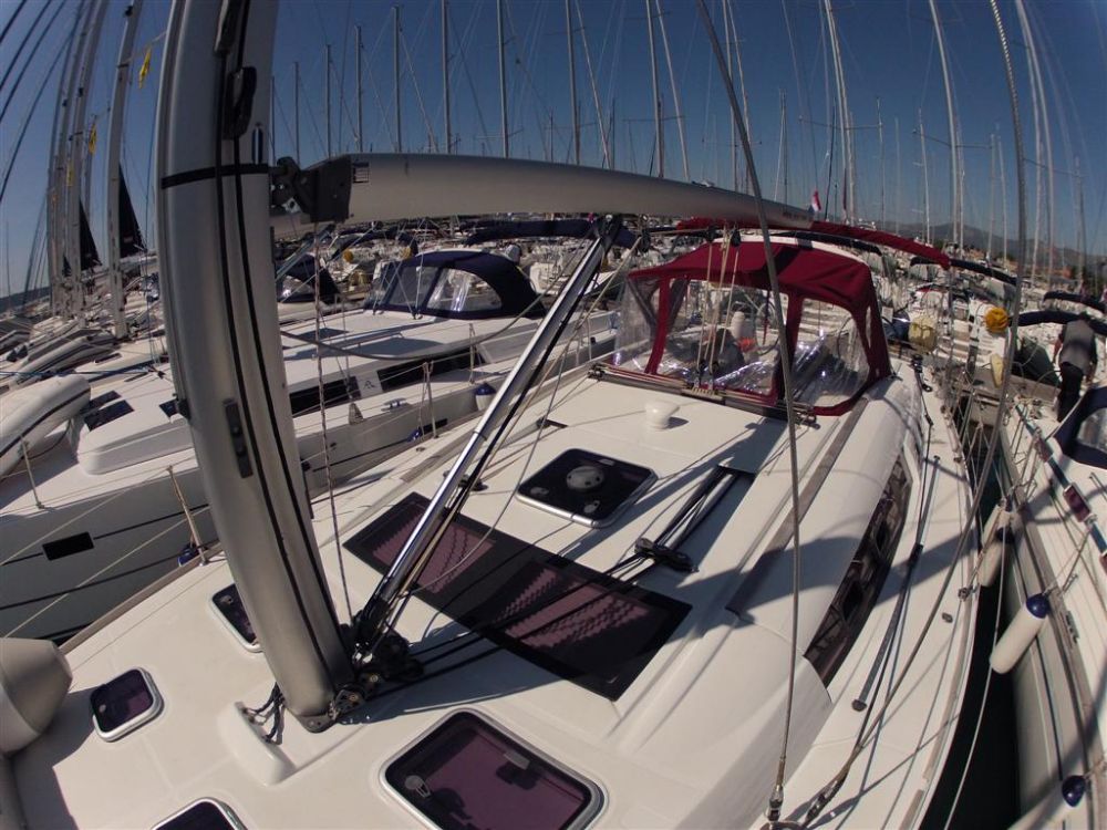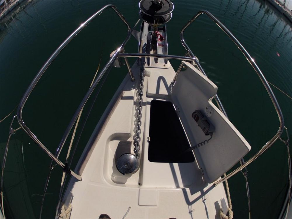 | Outside | Biminitop, Cockpitdusche, Cockpittisch, elektr. Ankerwinsch, Sprayhood, Teak im Cockpit |