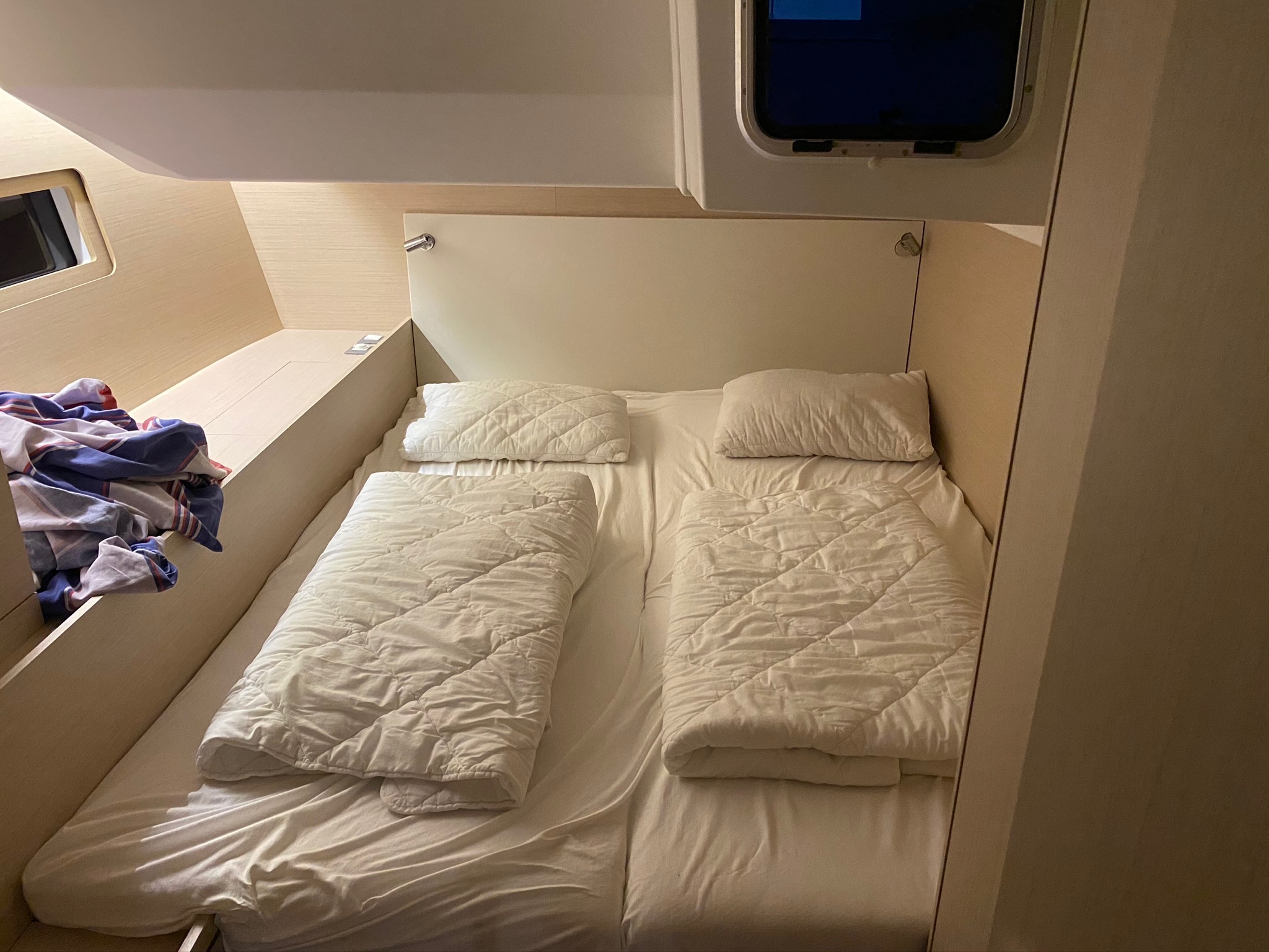 | Inside | 220V Steckdosen, Borduhr, Fäkalientank, Gasherd mit Backofen, Heizung, Klimaanlage (Landstrom), Kühlschrank, Ladegerät, Landstromkabel, Mokkakanne, Moskitonetze, Pantryausstattung, Radio, Spülbecken, Ventilatoren in Kabinen, Warmwasser, Wasserkocher, WC (elektr.) |