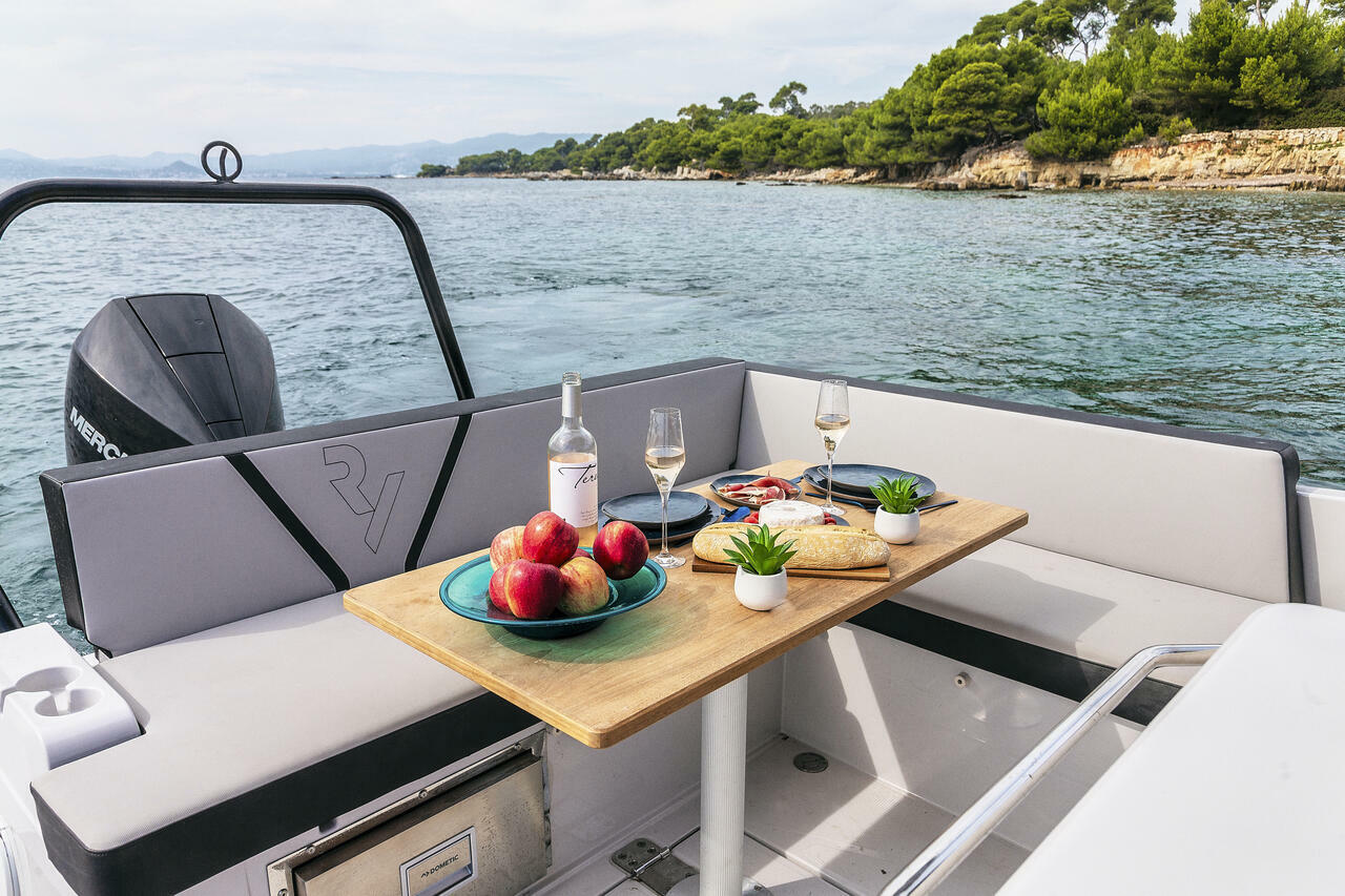 | Outside | Badeplattform, Biminitop, Cockpitdusche, elektr. Ankerwinsch, Grill, Sonnensegel |