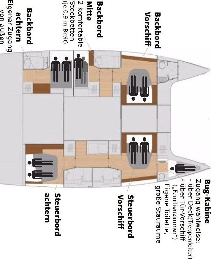 | Kabinen: | 5+2 | Kojen: | 10+2 |