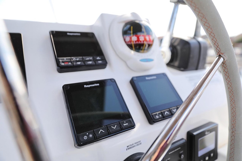 | Safety | AIS Empfänger, Automatikwesten, Autopilot, Blitzboje, Bootsmannstuhl, Bordapotheke, Bordwerkzeug, Feuerlöscher, Lifebelts, Motor-Ersatzteile, Nebelhorn, Notsignale, Radarreflektor, Reparaturset für Beiboot, Rettungsinsel, Suchscheinwerfer, Taschenlampe, UKW-Funk, Zweitanker |