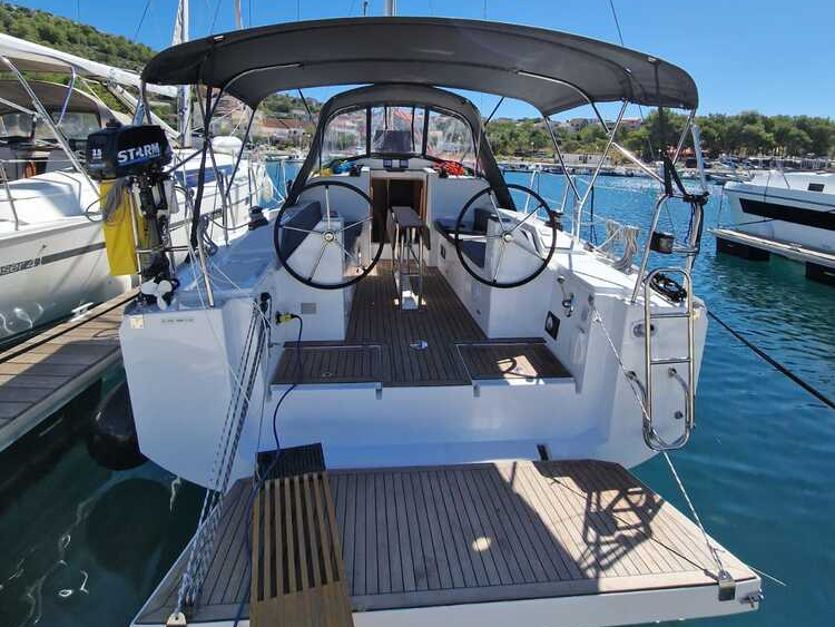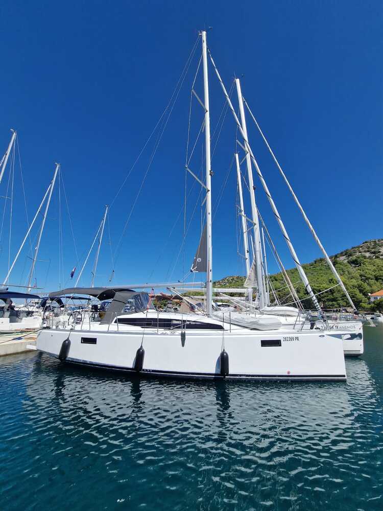 | Outside | 220 V-Landanschluss, Biminitop, Cockpitdusche, Cockpitpolster, Cockpittisch, elektr. Ankerwinsch, Fender, Festmacherleinen, Sprayhood, Teak im Cockpit, Unterwasserbeleuchtung |